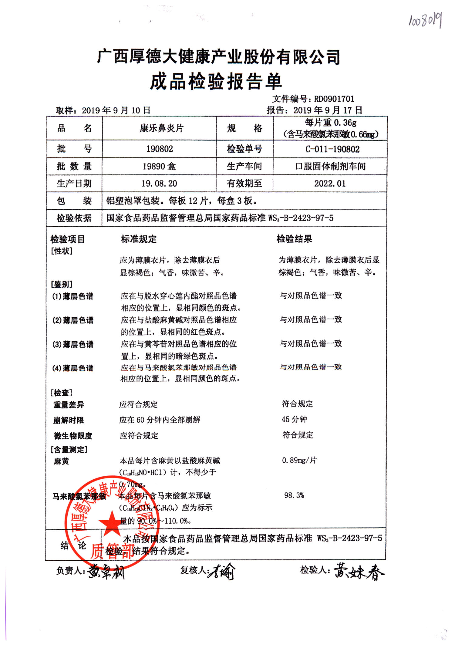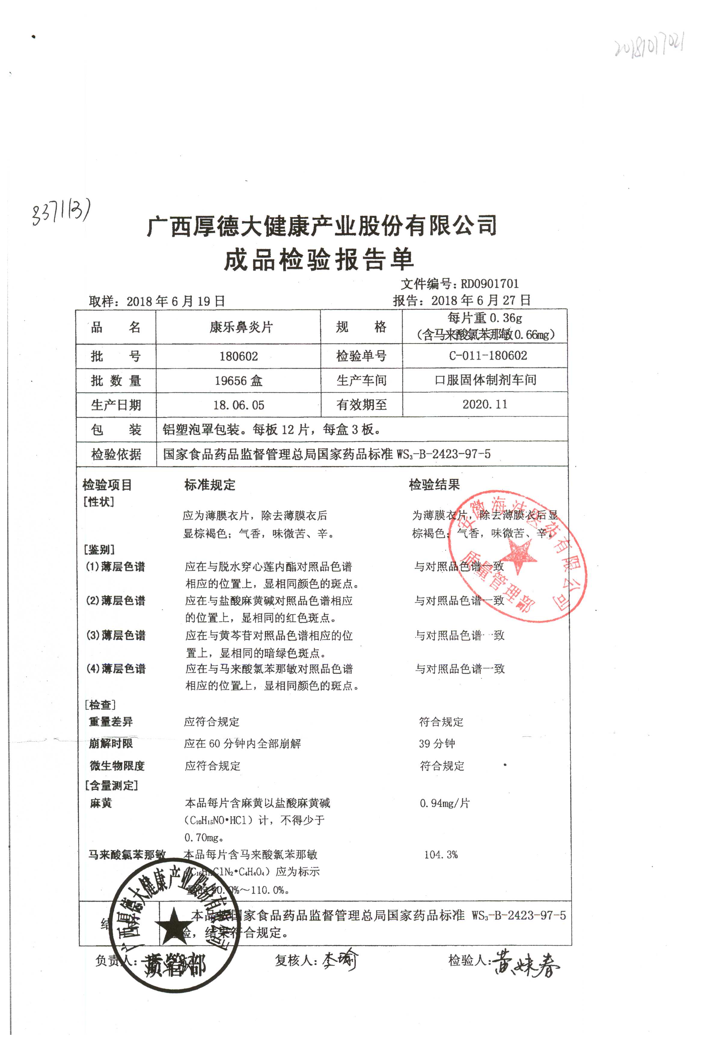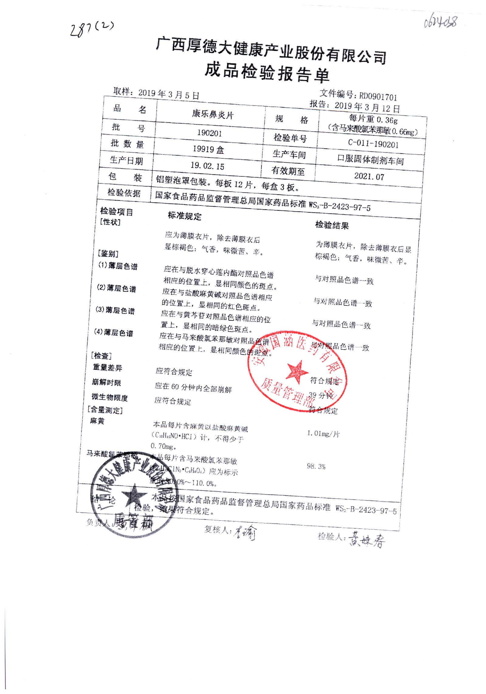 康樂鼻炎片 | 0.36g*36粒 | 190201 | 查看詳情 |