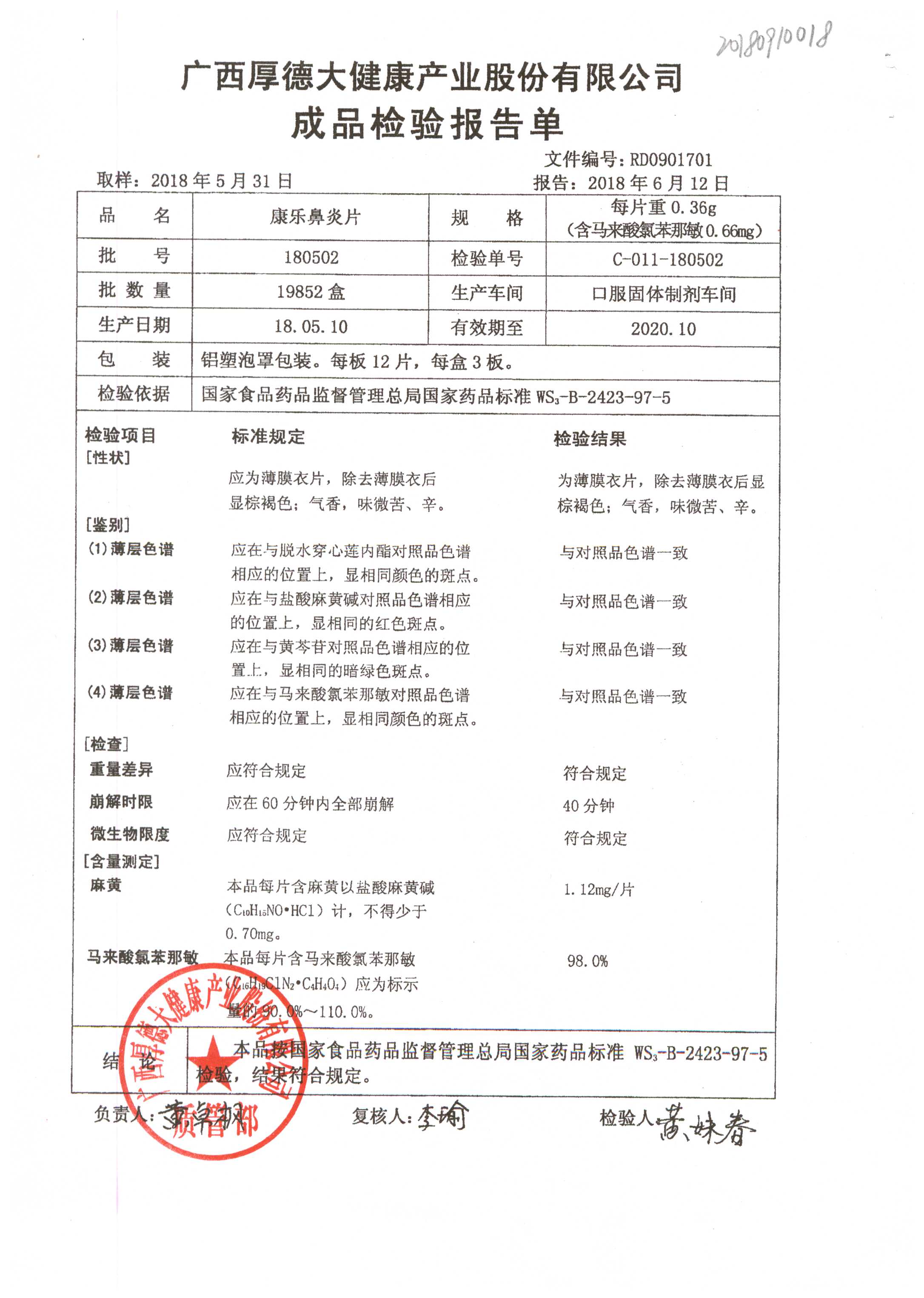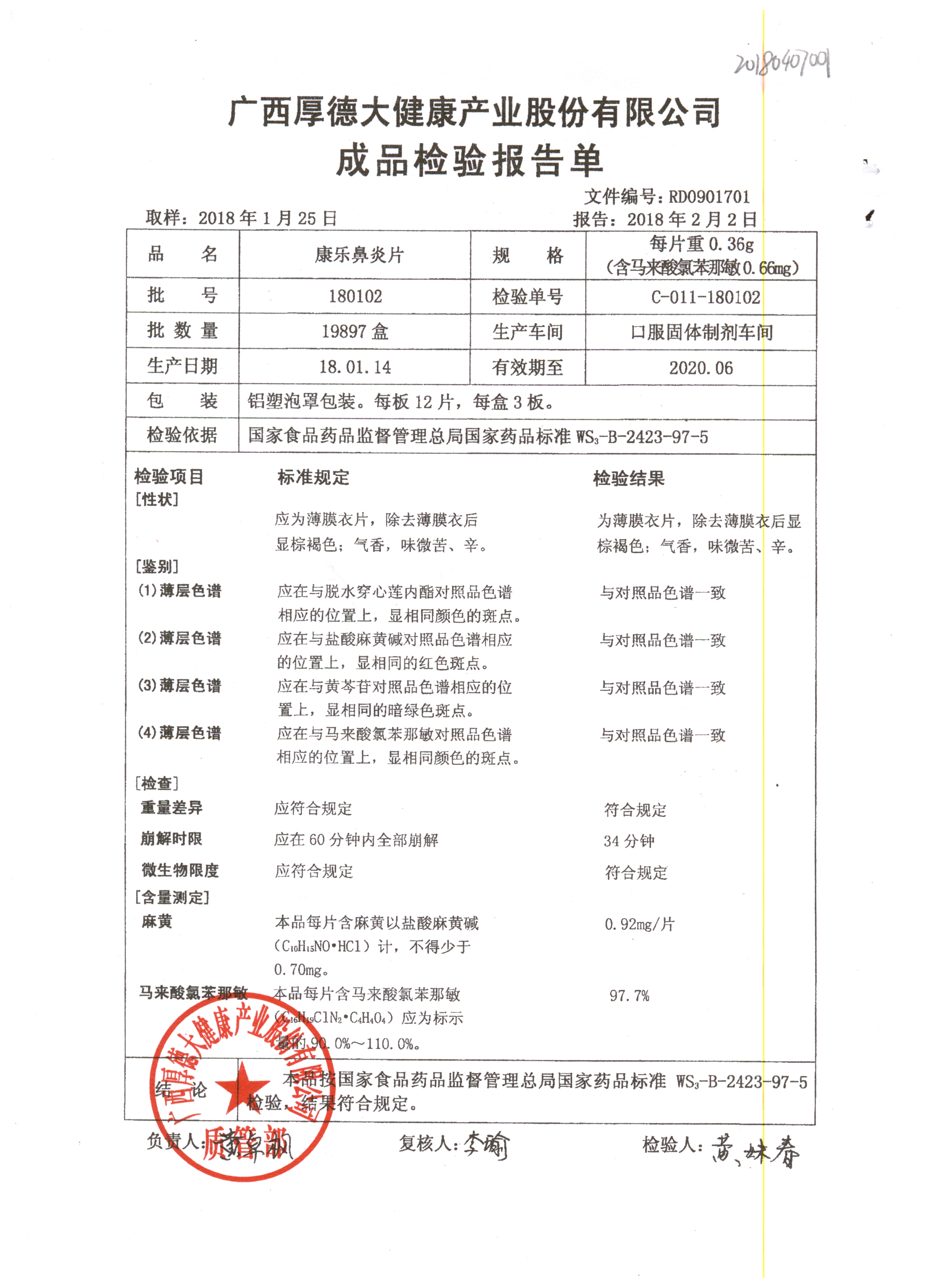 名稱 | 規(guī)格 | 批號(hào) | 藥檢報(bào)告 |