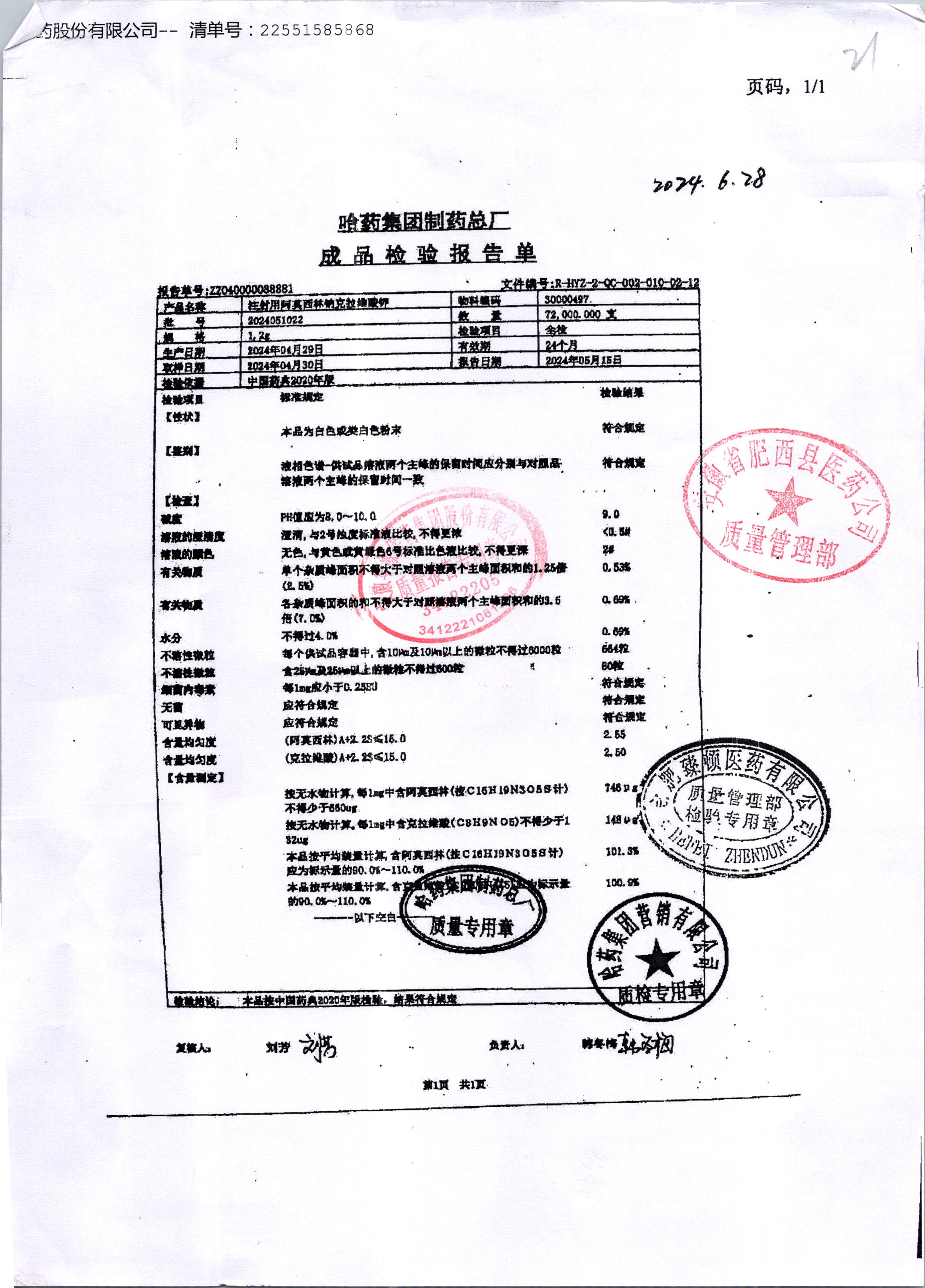 | 注射用阿莫西林鈉克拉維酸鉀 | 1.2g | 2024051022 | 查看詳情 |