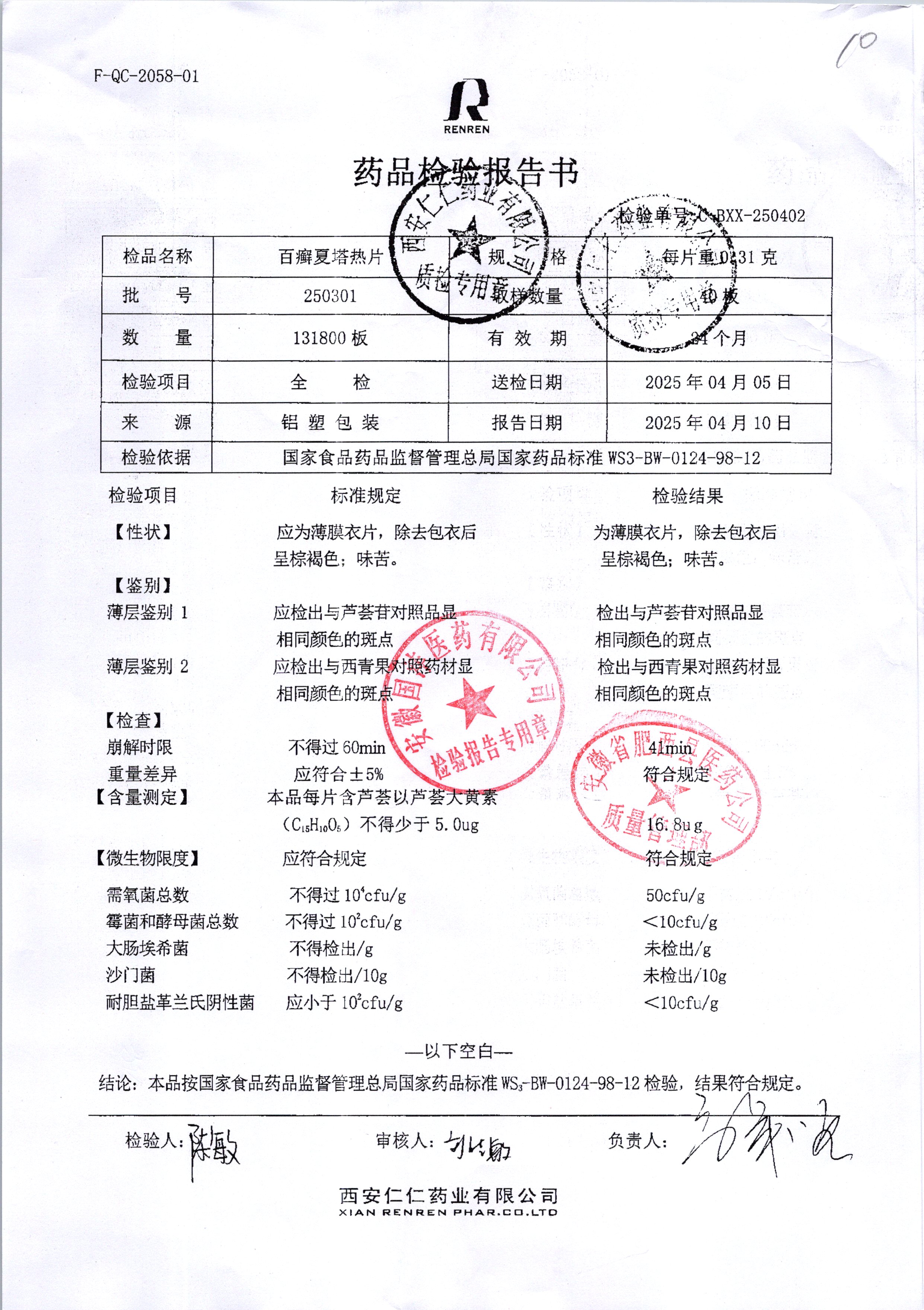 | 百癬夏塔熱片 | 0.31G | 250301 | 查看詳情 |