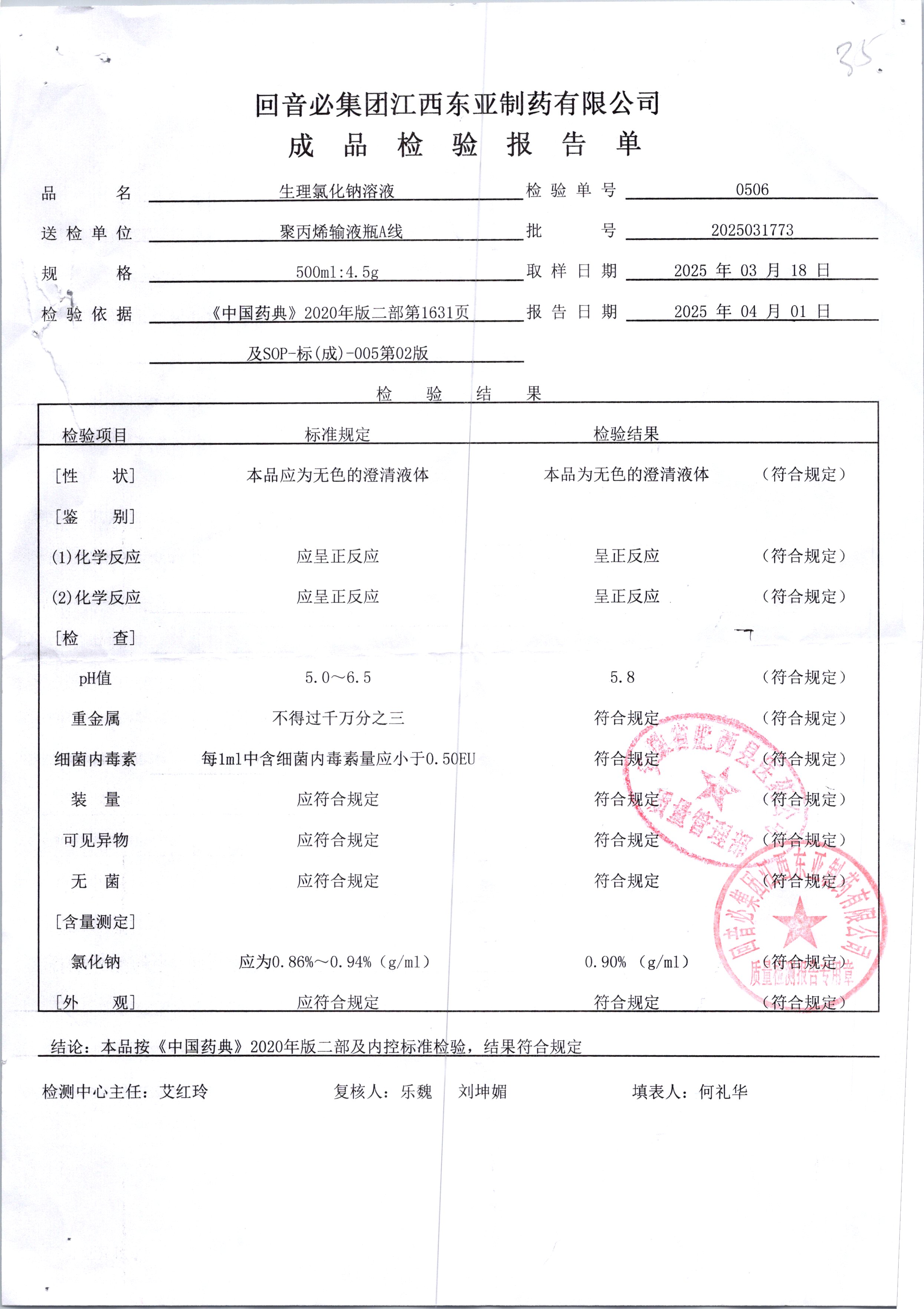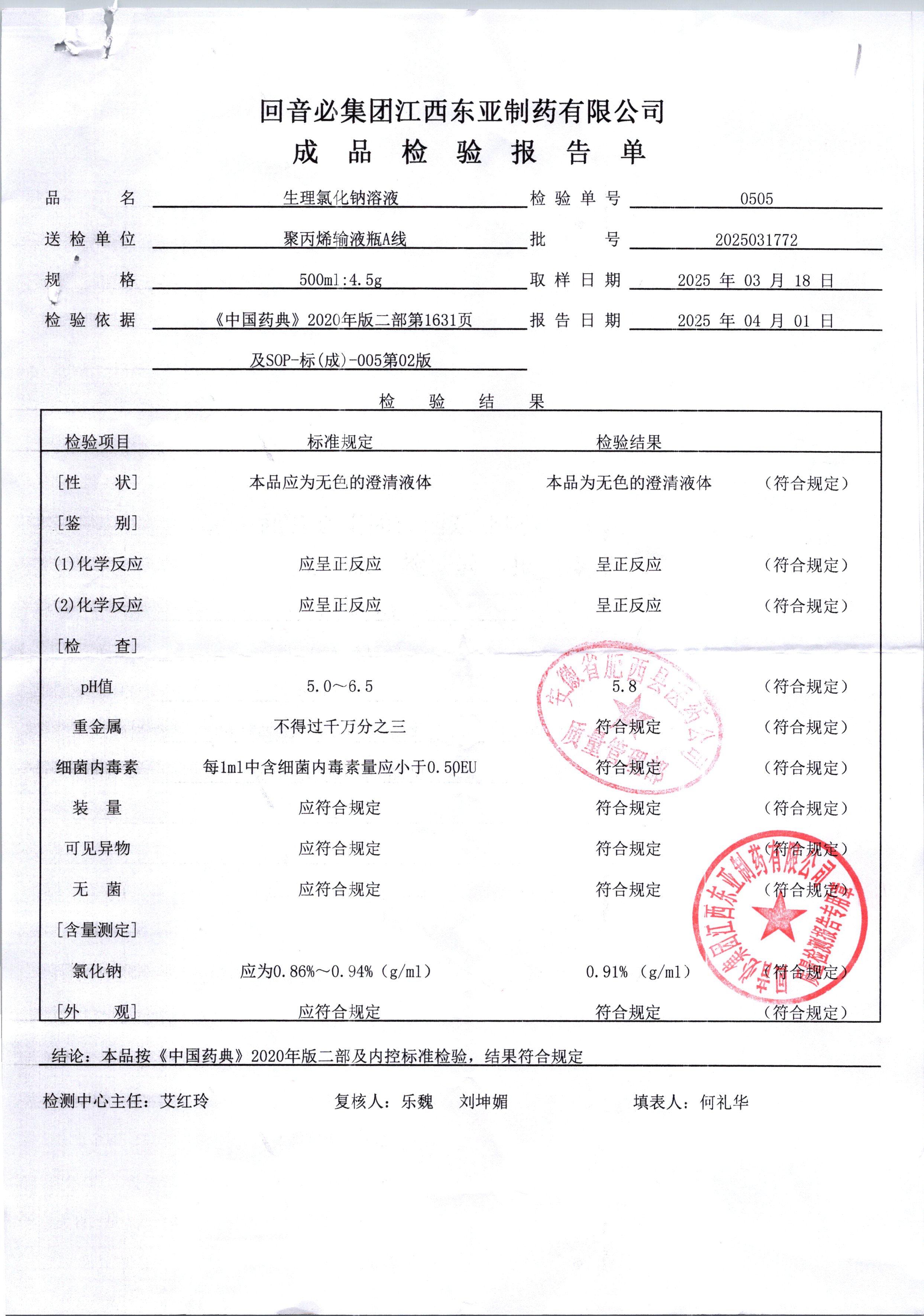 | 生理氯化鈉溶液 | 500ml:4.5g | 2025031772 | 查看詳情 |