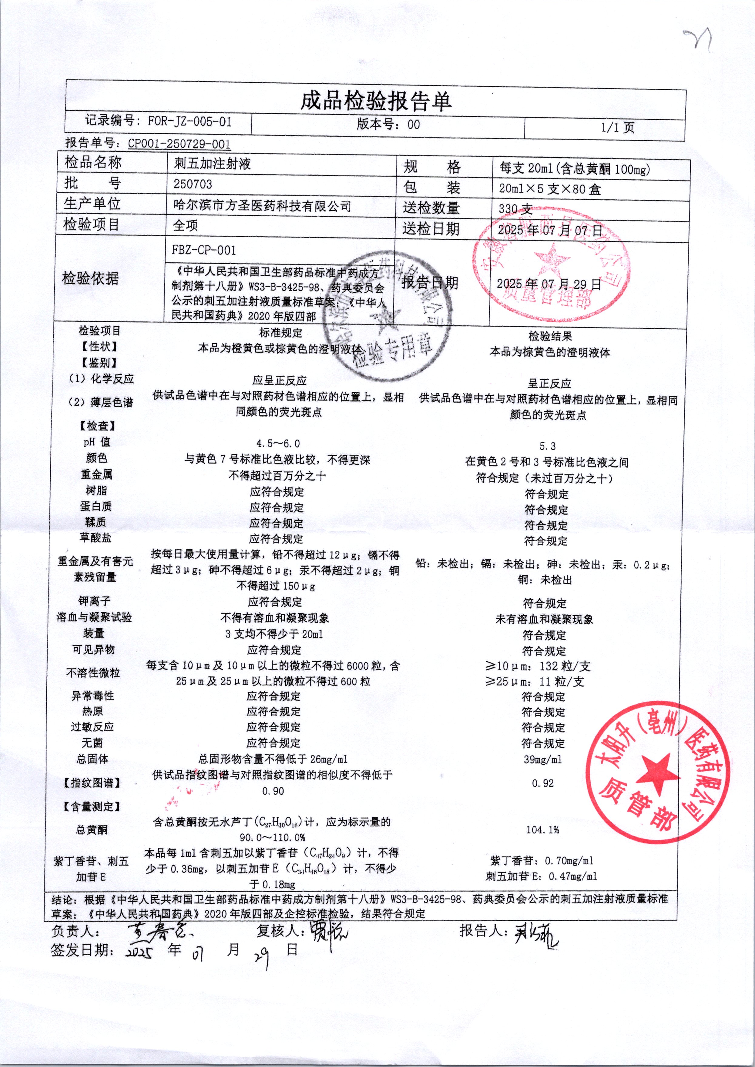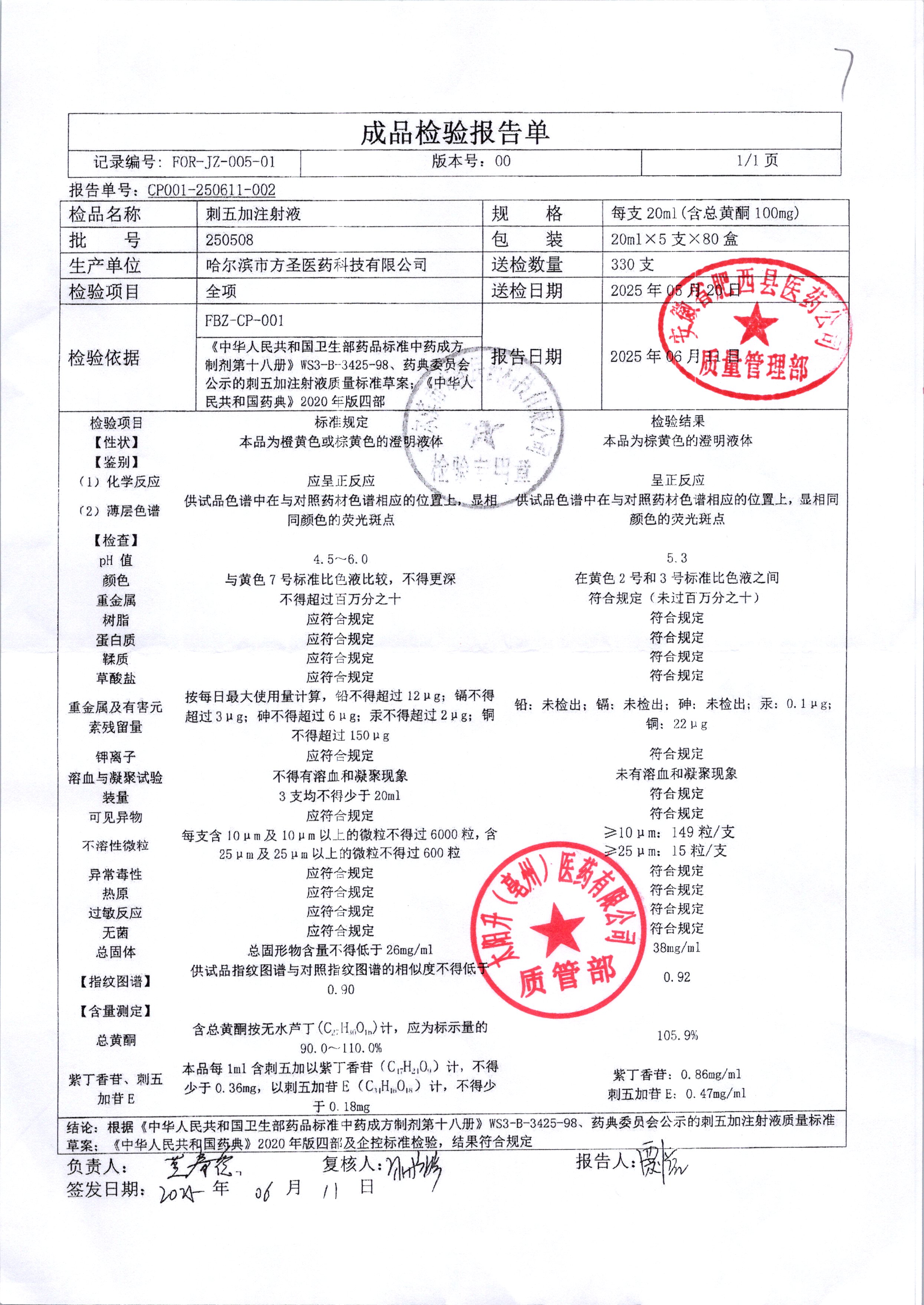 | 刺五加注射液 | 20ml*5支 | 250508 | 查看詳情 |