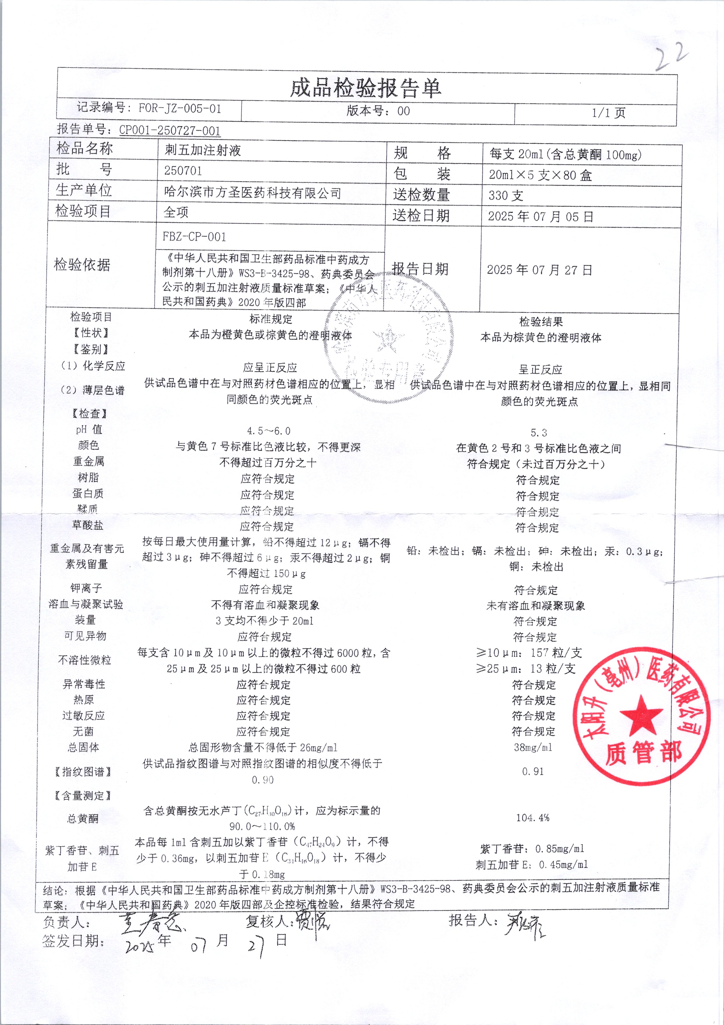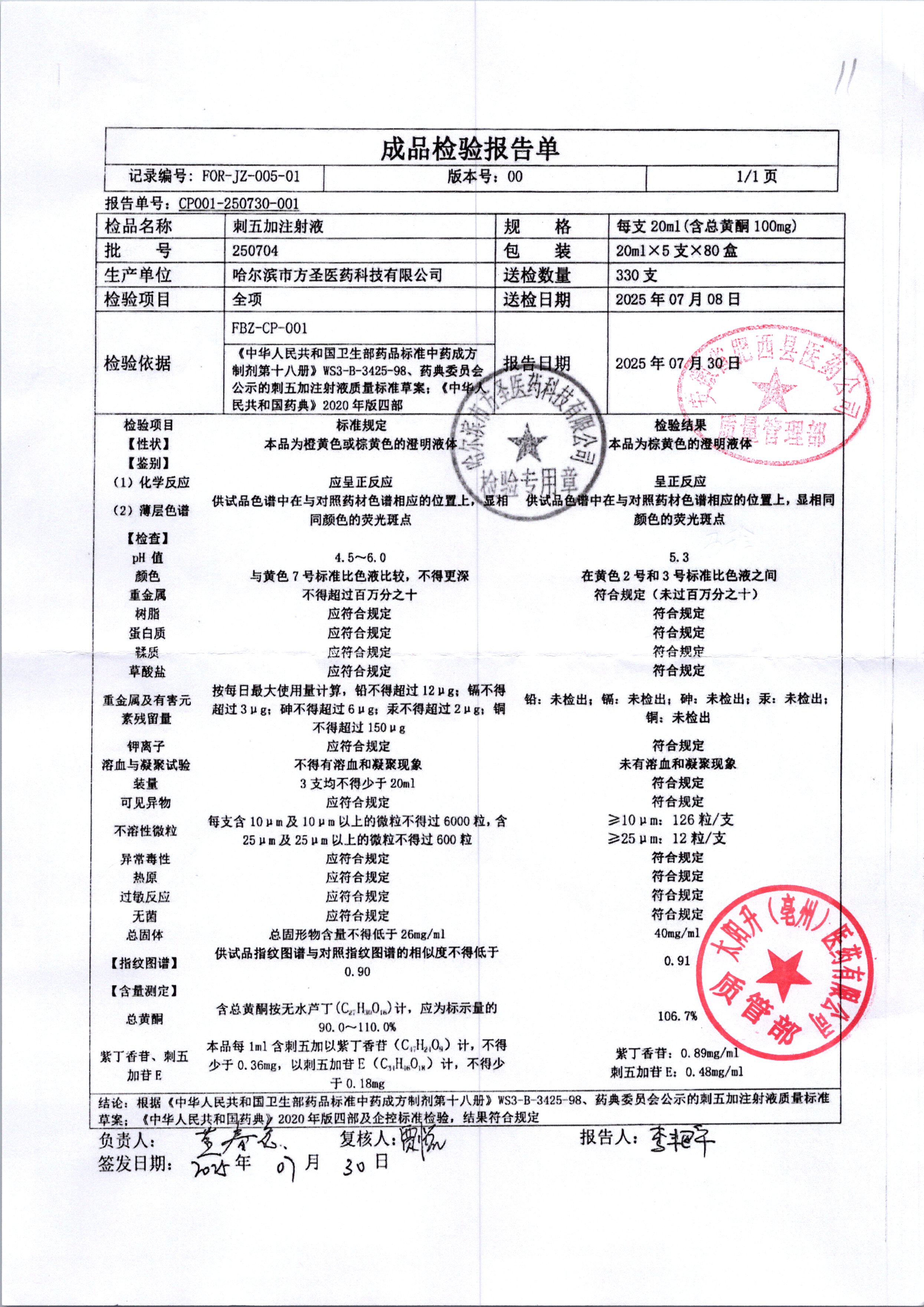 | 刺五加注射液 | 20ml*5支 | 250701 | 查看詳情 |