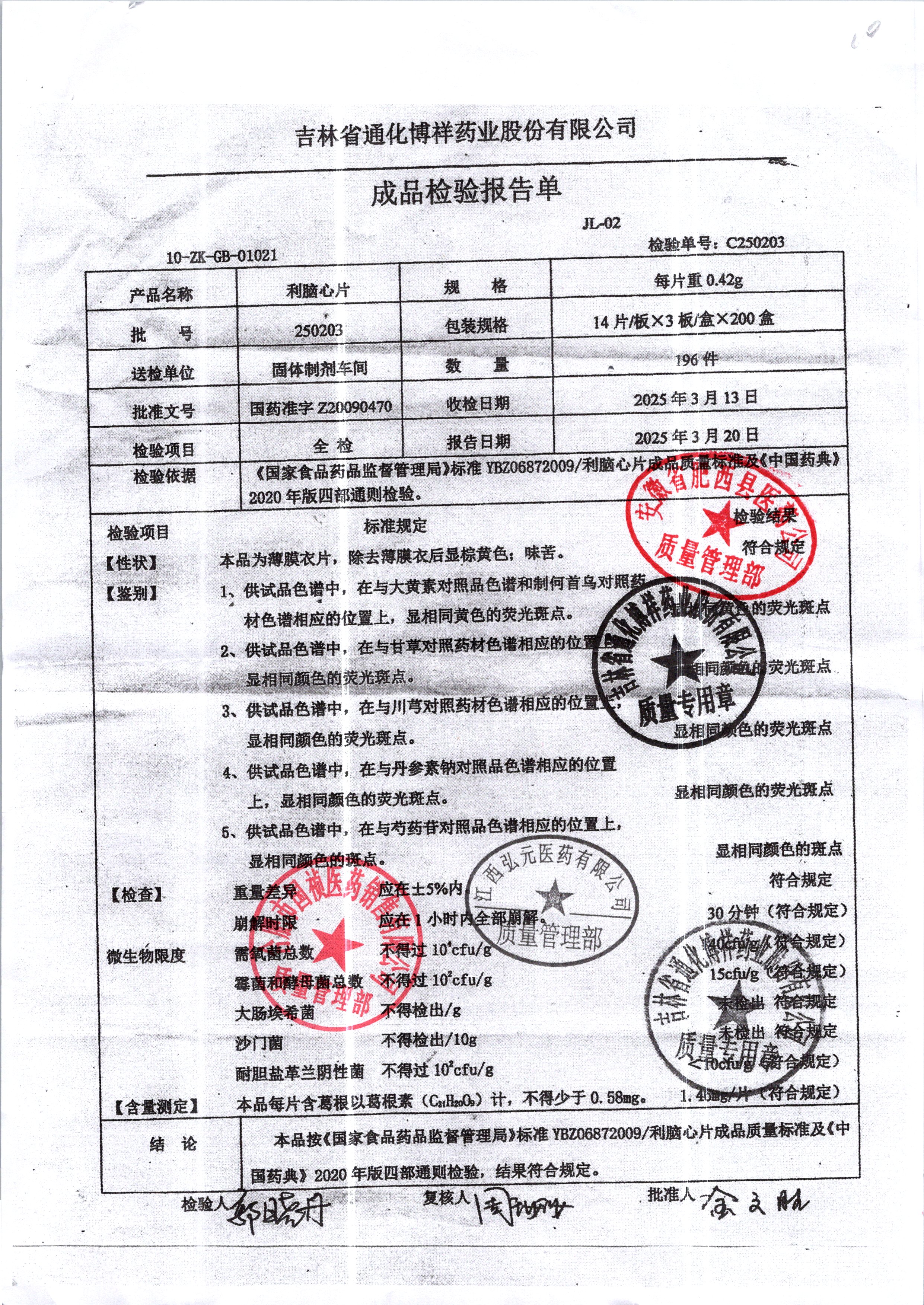 | 利腦心片 | 0.4g*42s | 250203 | 查看詳情 |