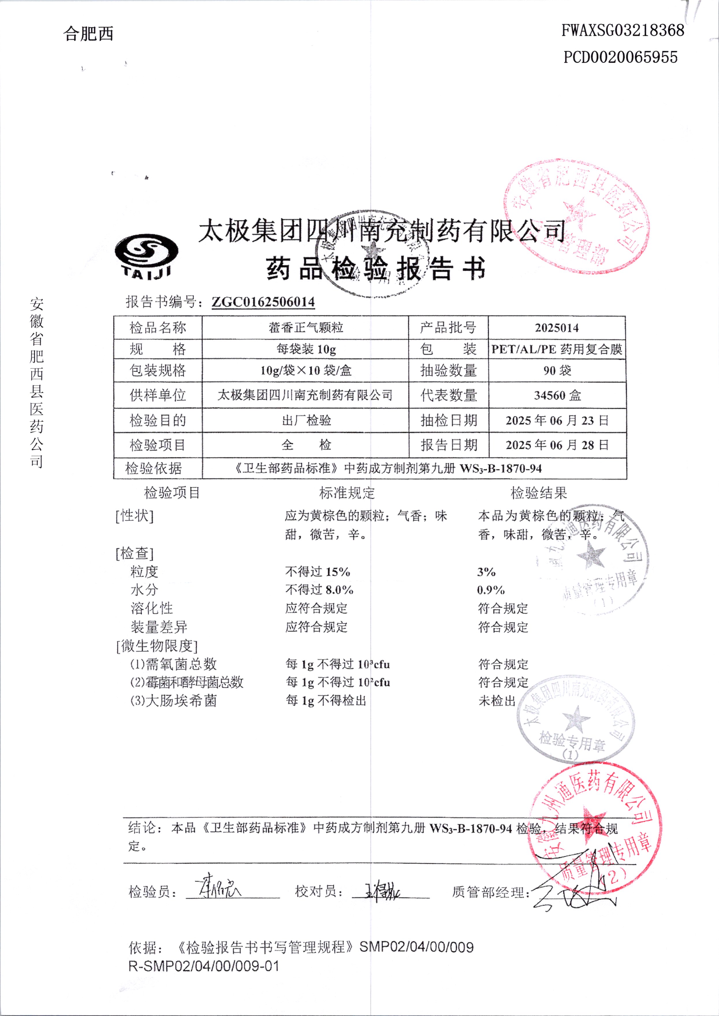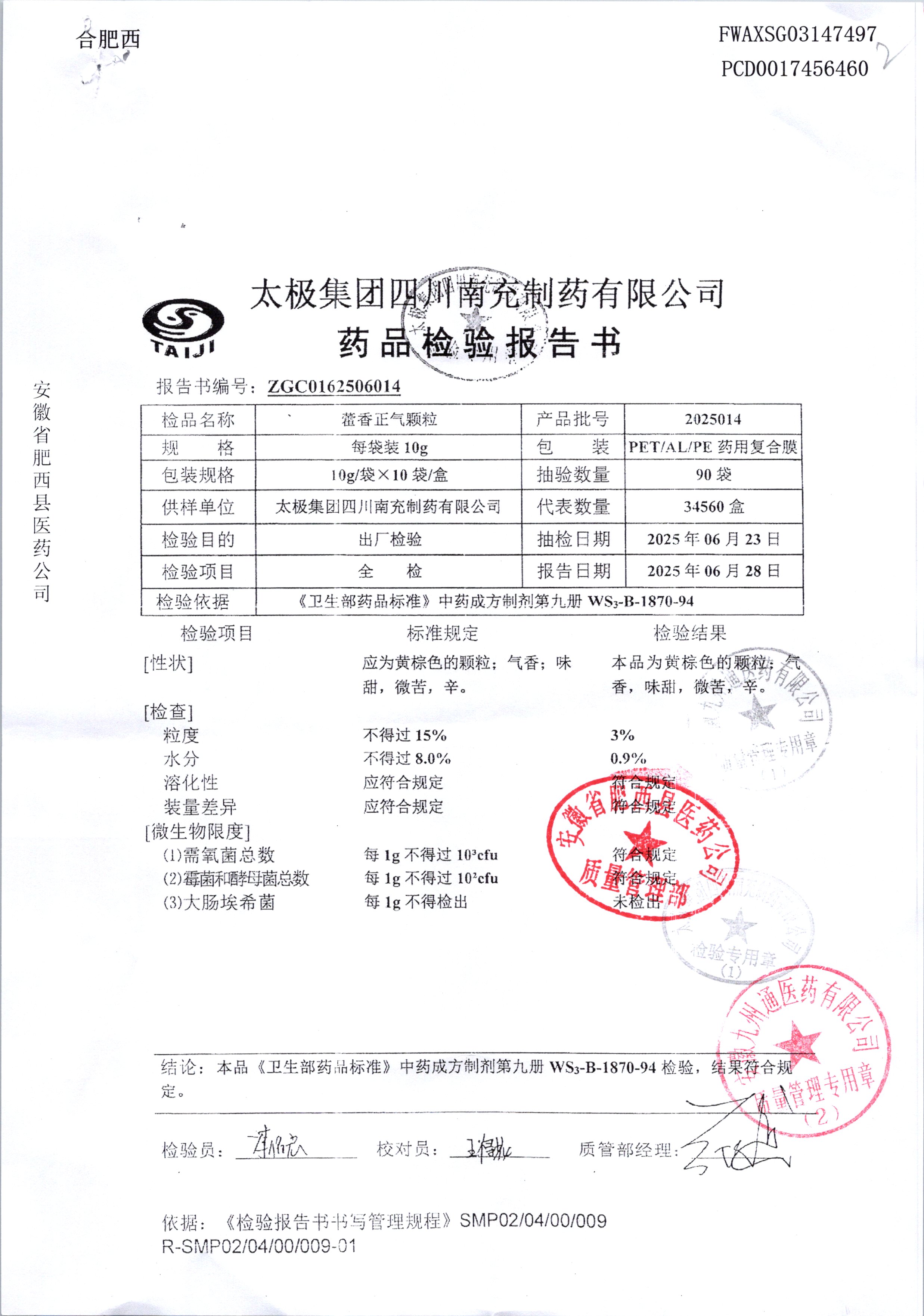 | 藿香正氣顆粒 | 10ml*10袋 | 2025014 | 查看詳情 |