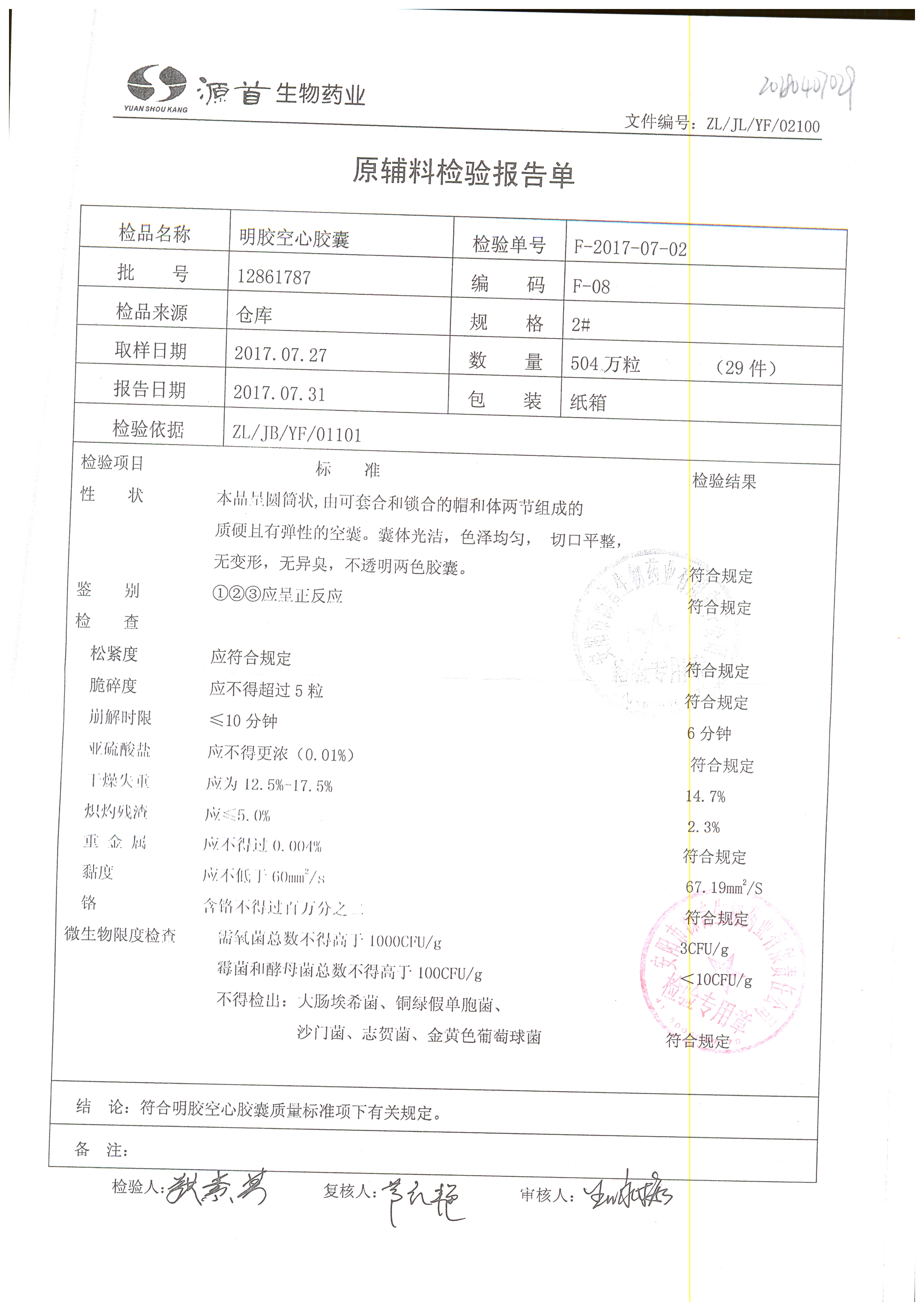 蠟樣芽孢桿菌活菌膠囊(源首) | 0.25g | 20180504(2/3) | 查看詳情 |