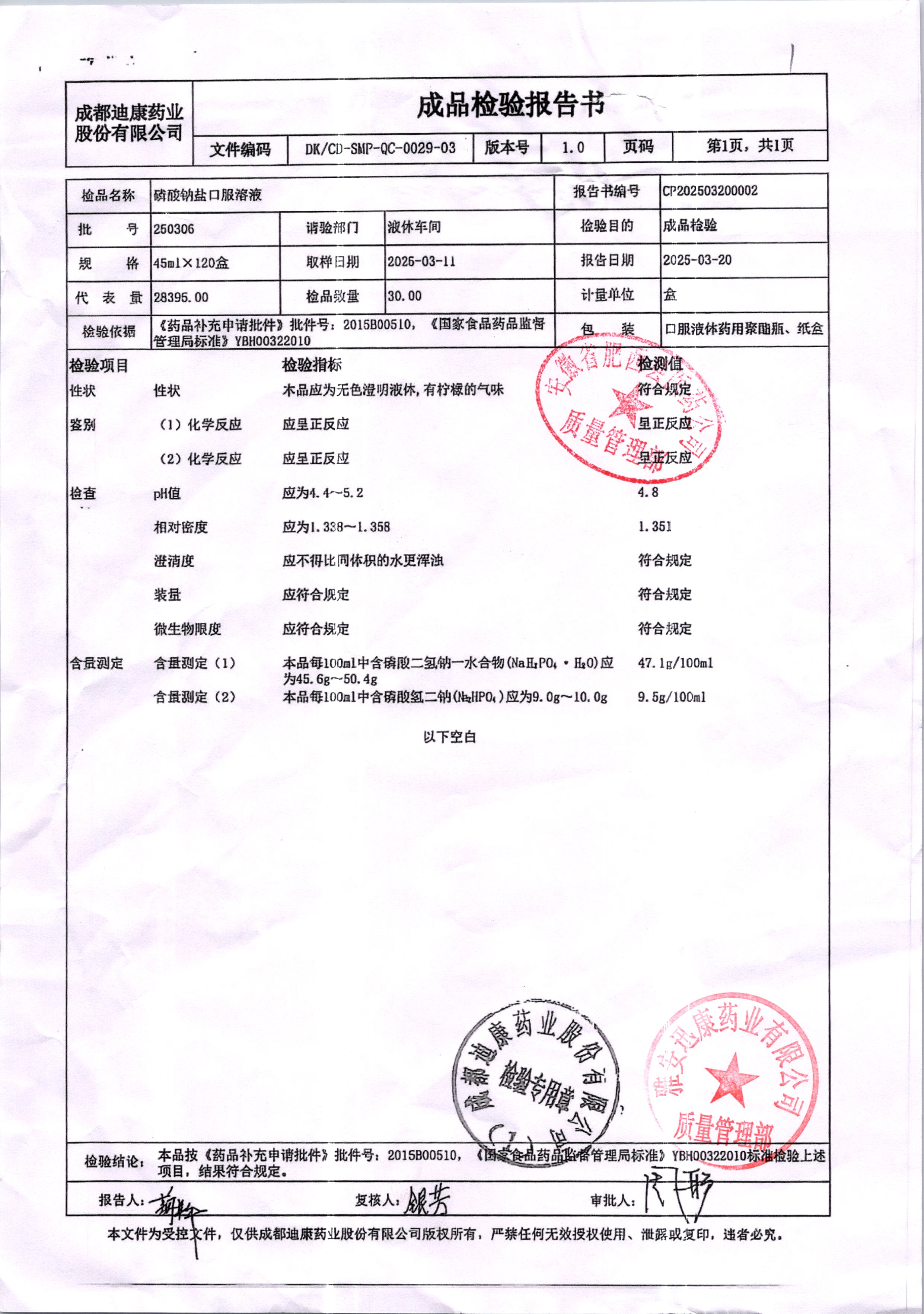 硝酸鈉鹽口服溶液 | 45ml | 250306 | 查看詳情 |