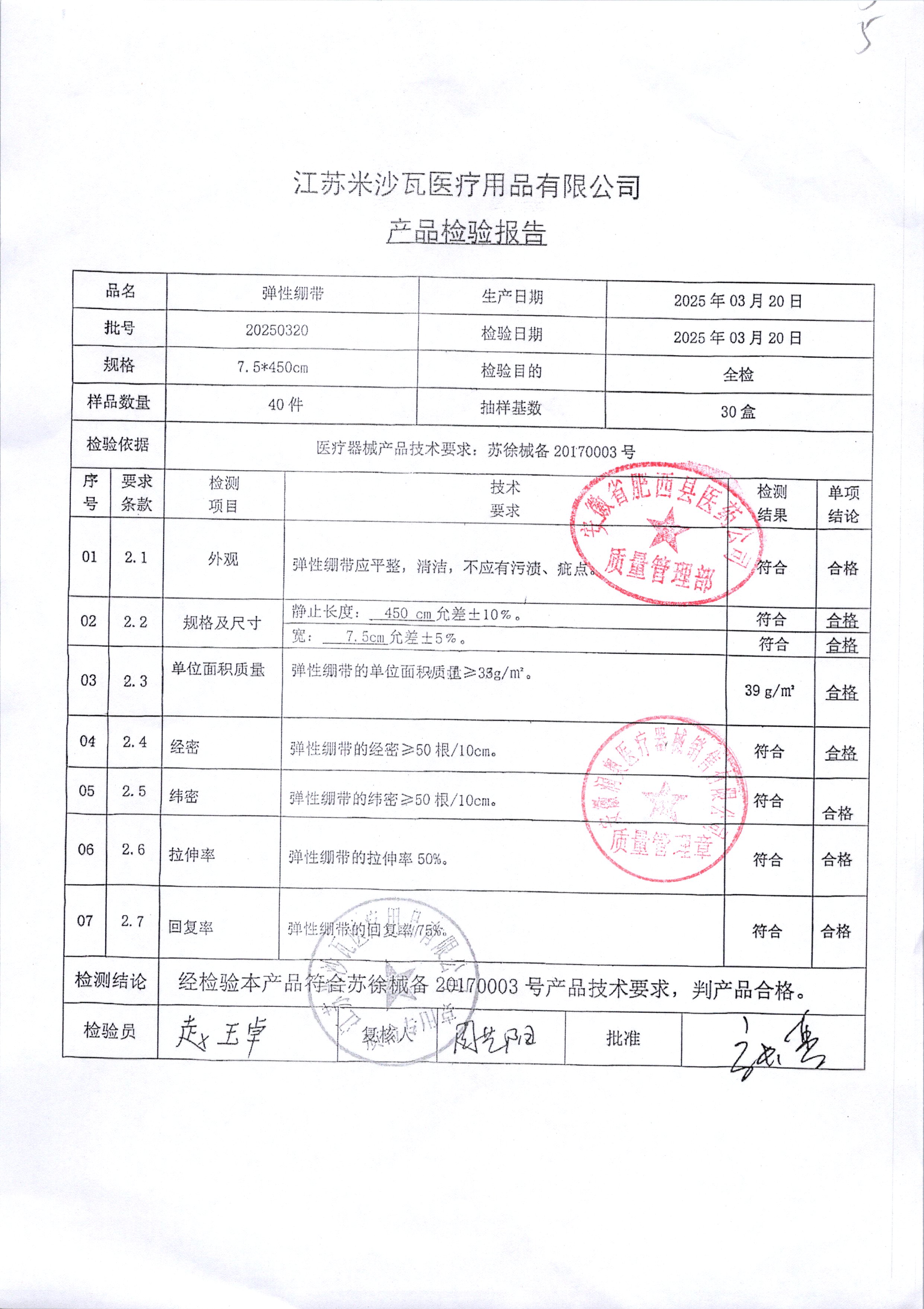 彈性繃帶 | 7.5*450cm | 20250320 | 查看詳情 |