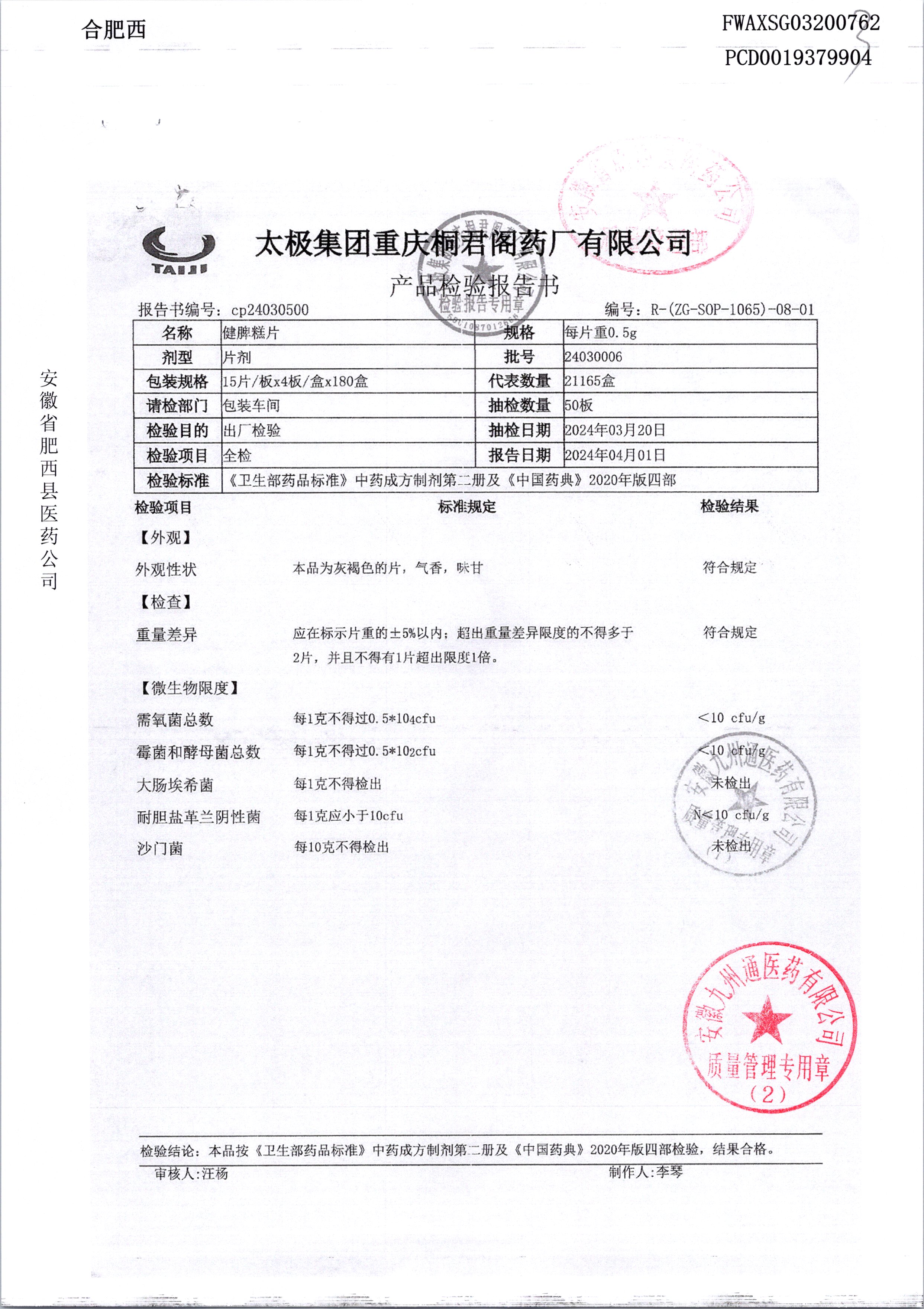 健脾糕片 | 0.5g | 24030006 | 查看詳情 |