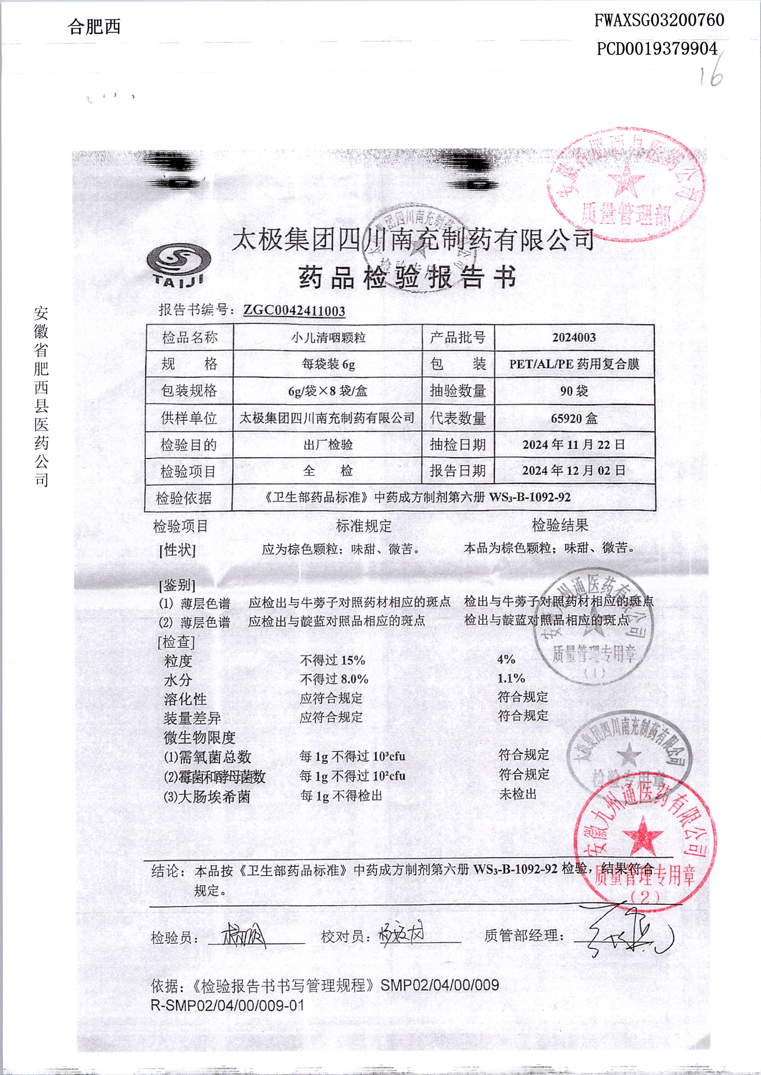 小兒清咽顆粒 | 6*8 | 2024003 | 查看詳情 |