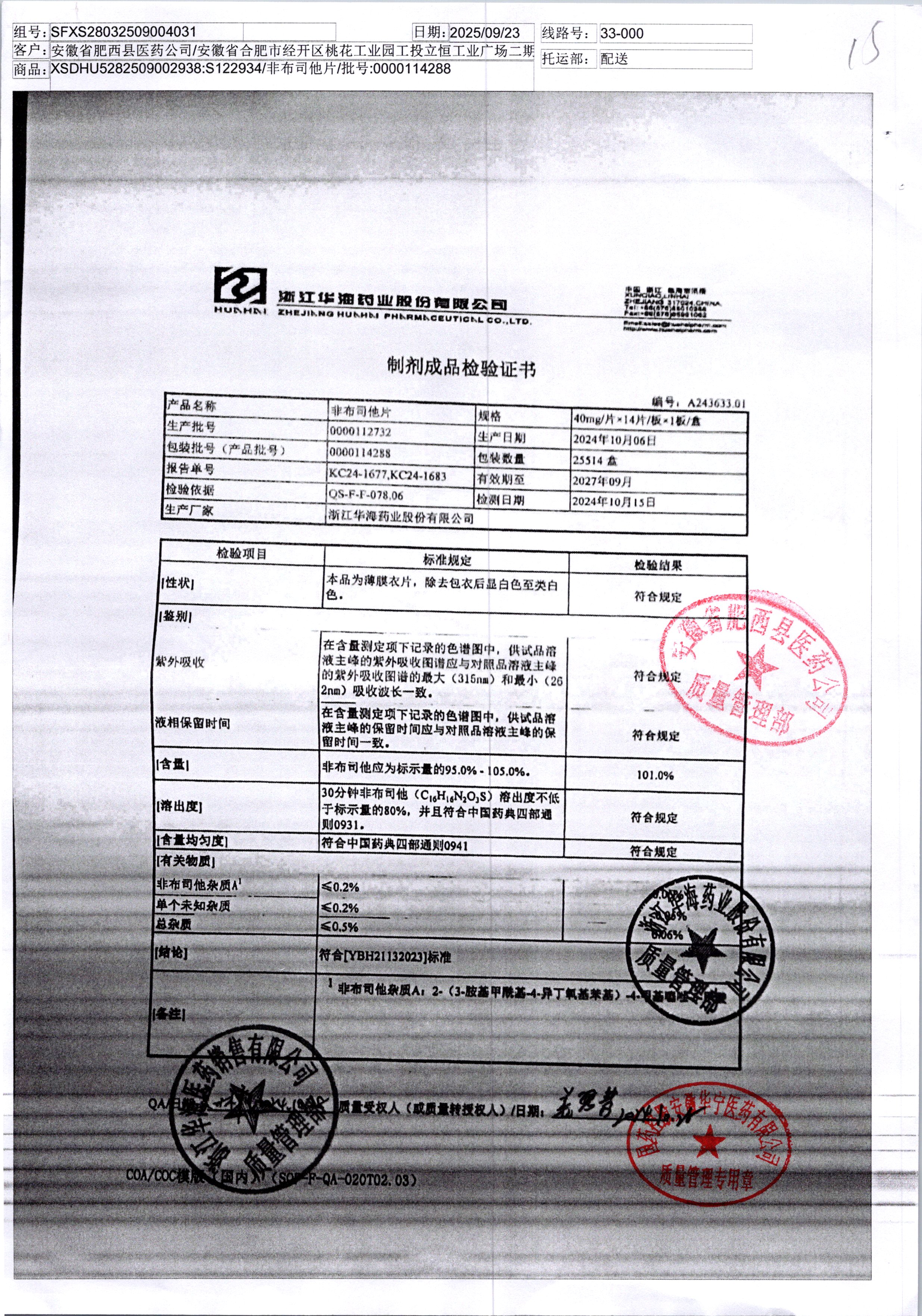 非布司他片 | 40mg*14s | 0000112732 | 查看詳情 |