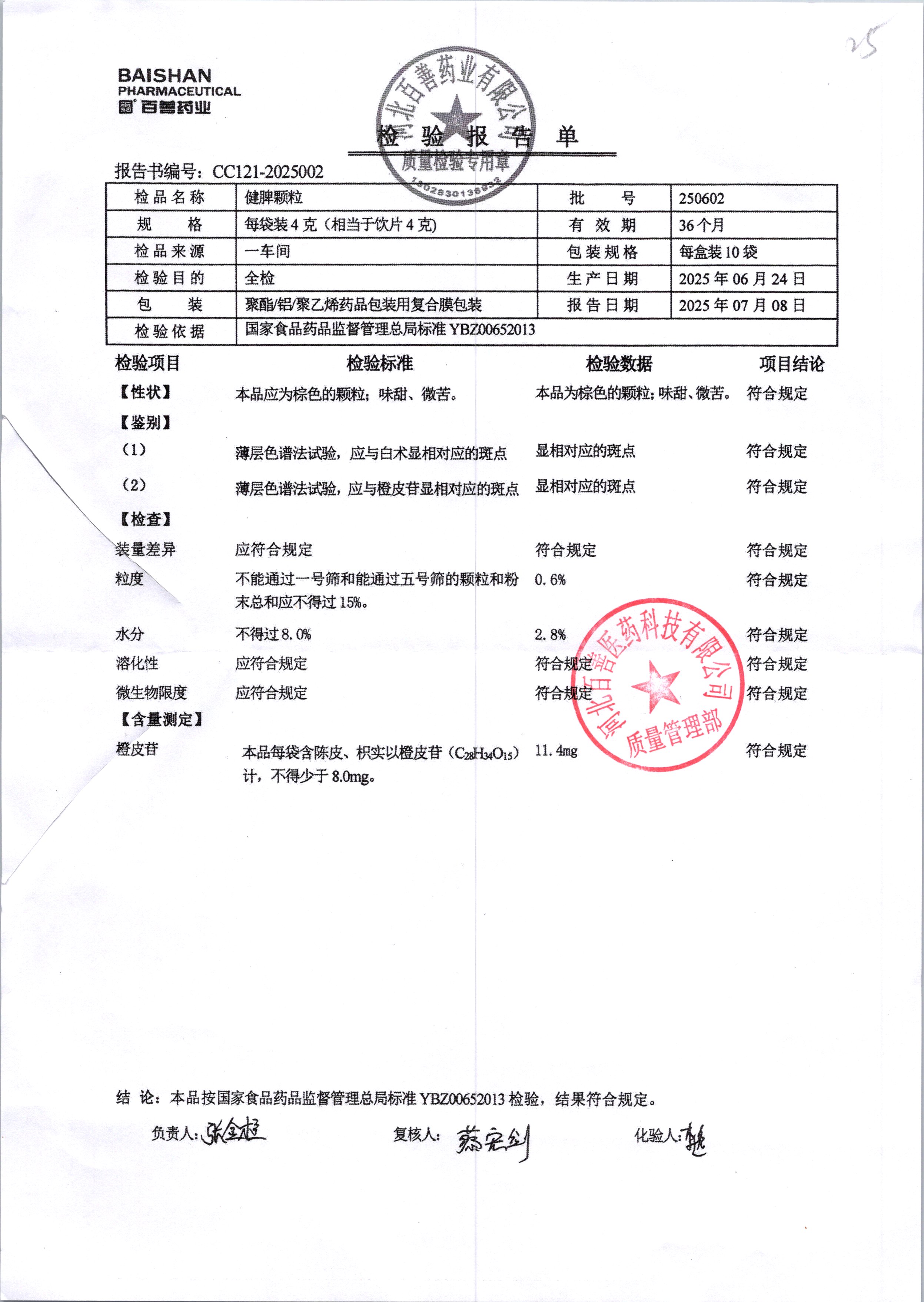健脾顆粒 | 4g*10袋 | 250602 | 查看詳情 |