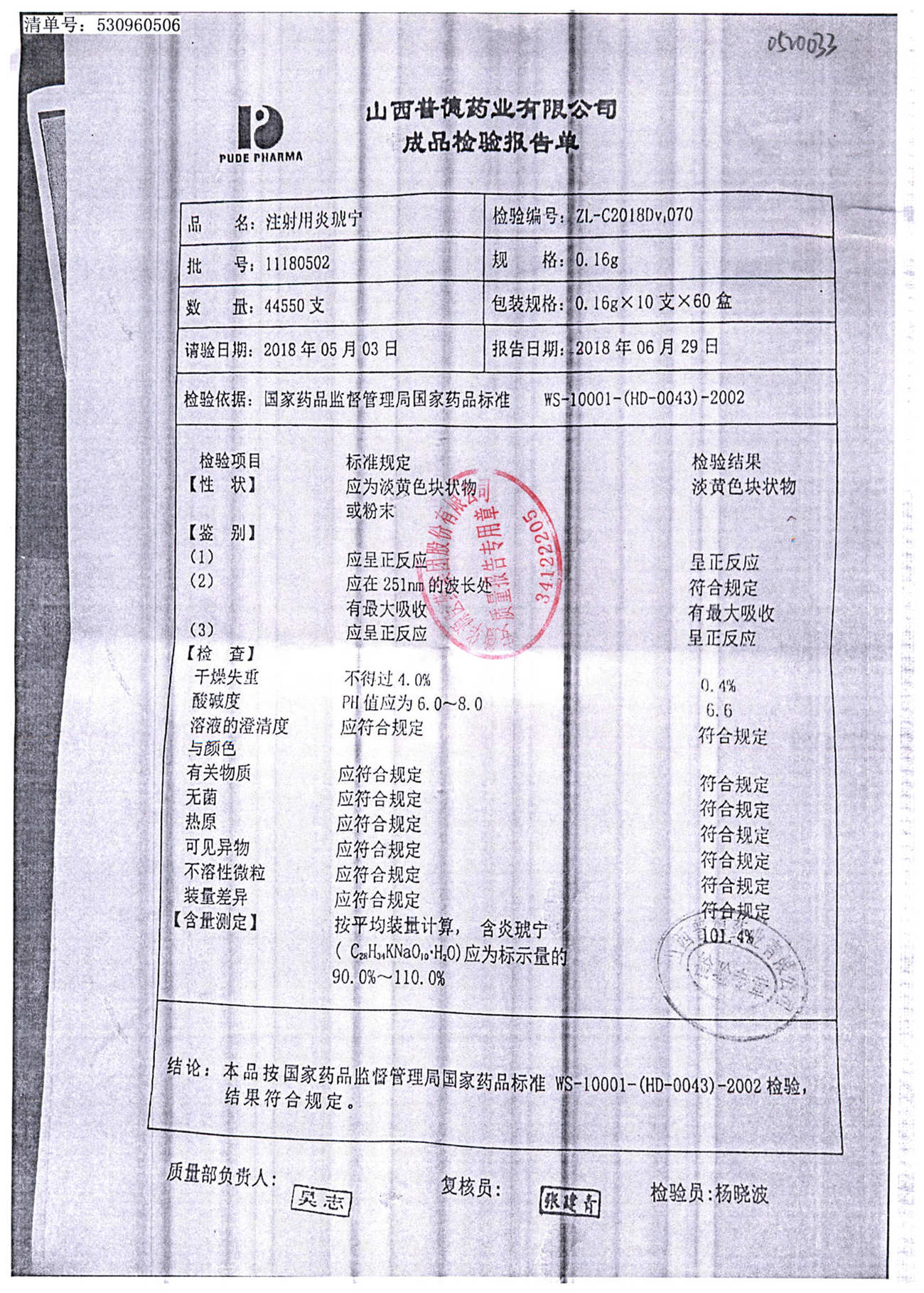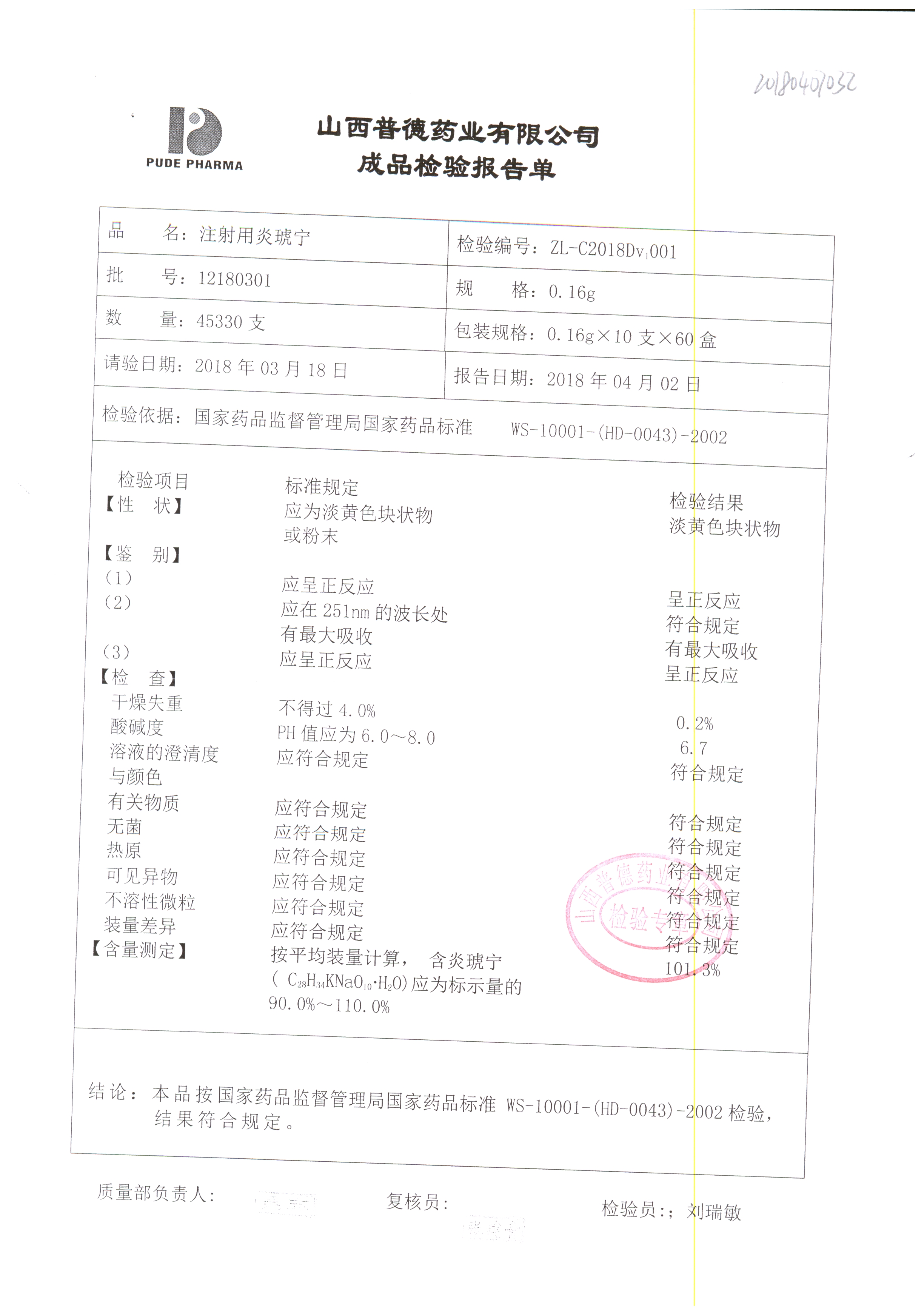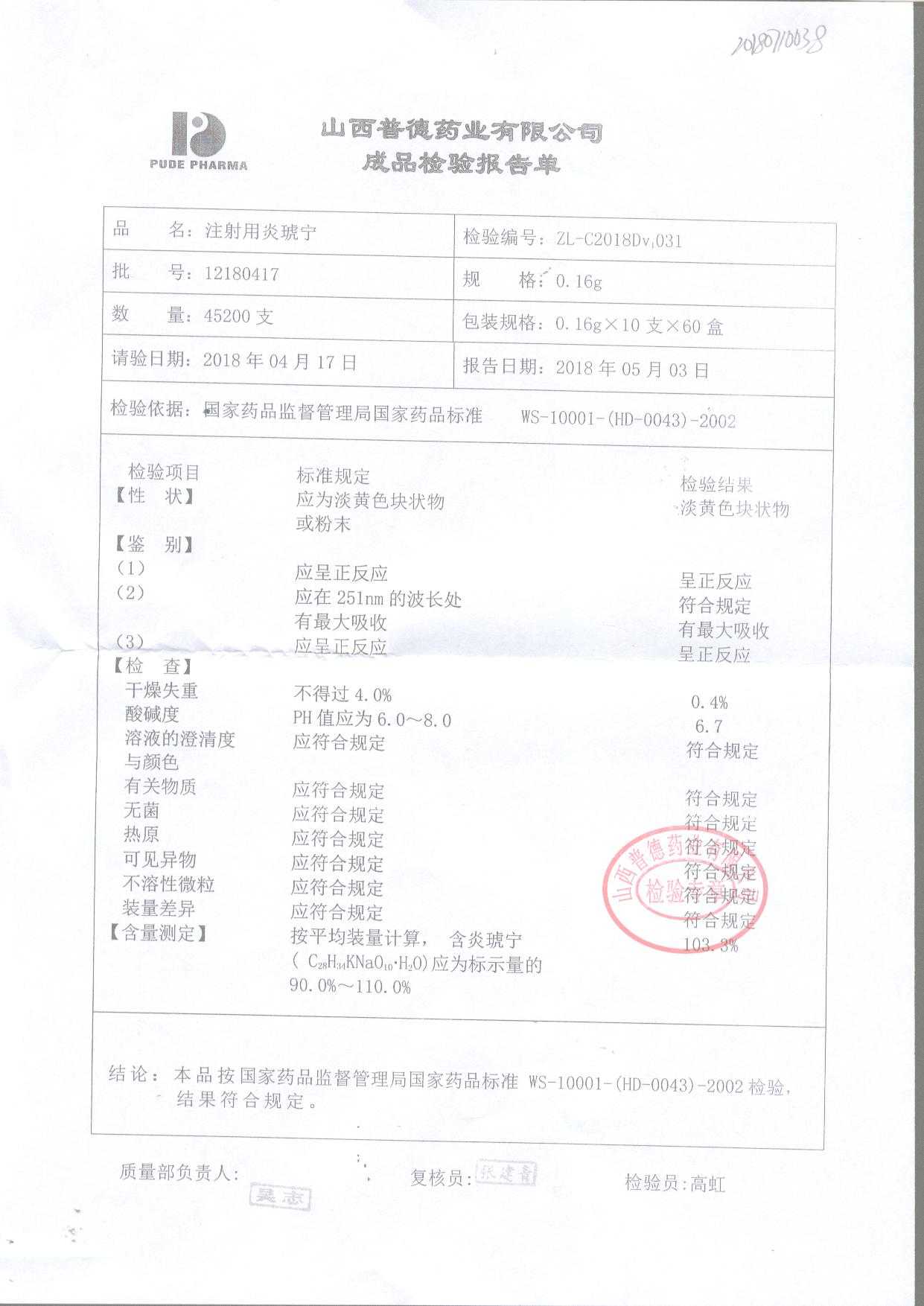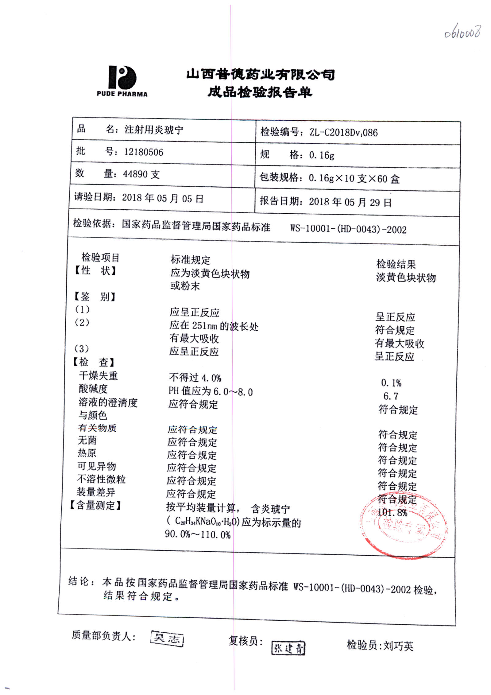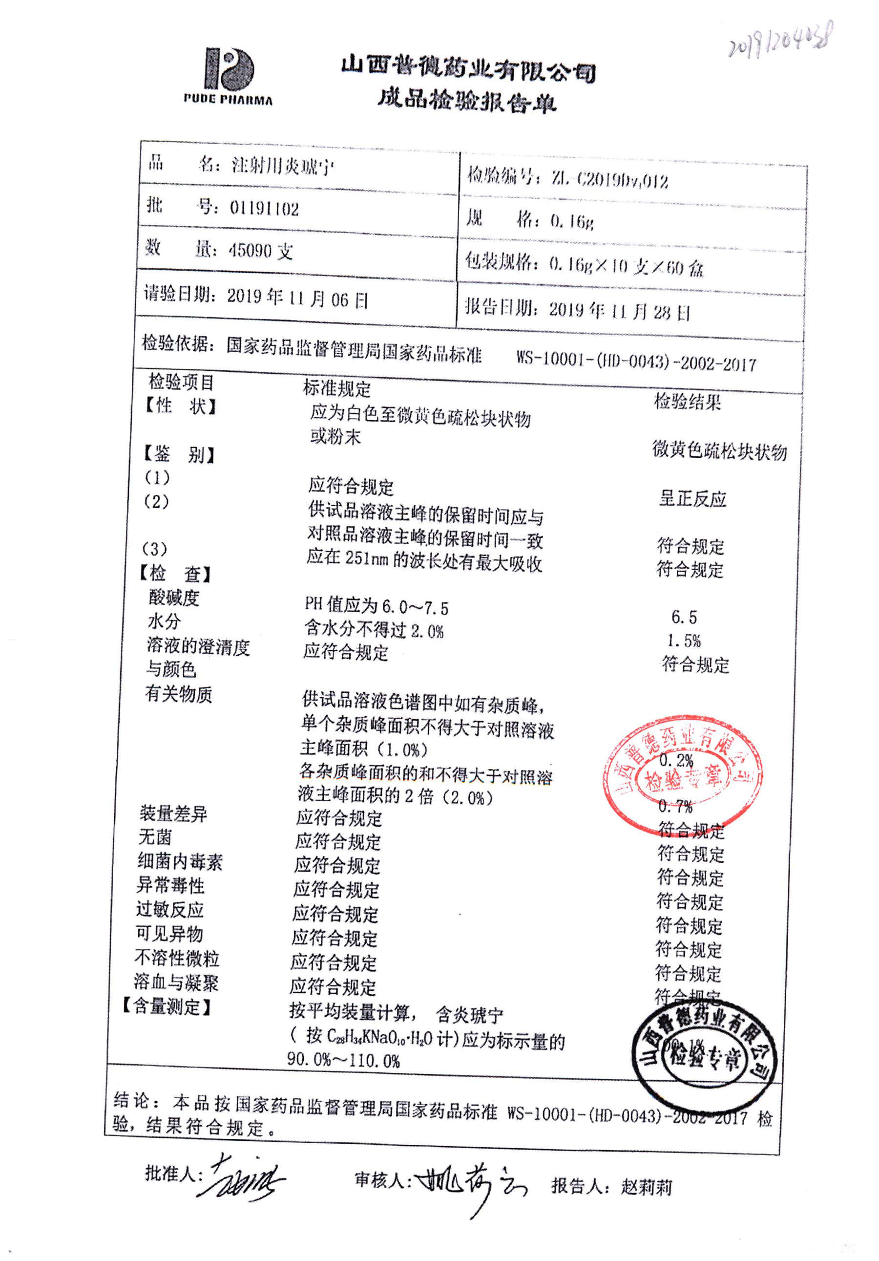 名稱(chēng) | 規(guī)格 | 批號(hào) | 藥檢報(bào)告 |