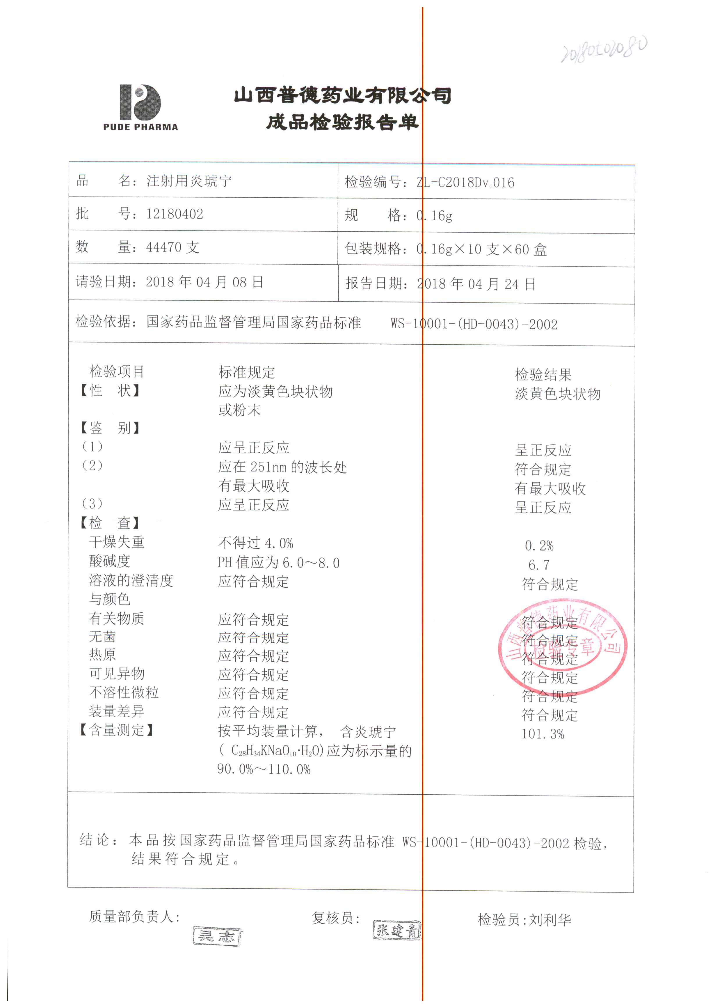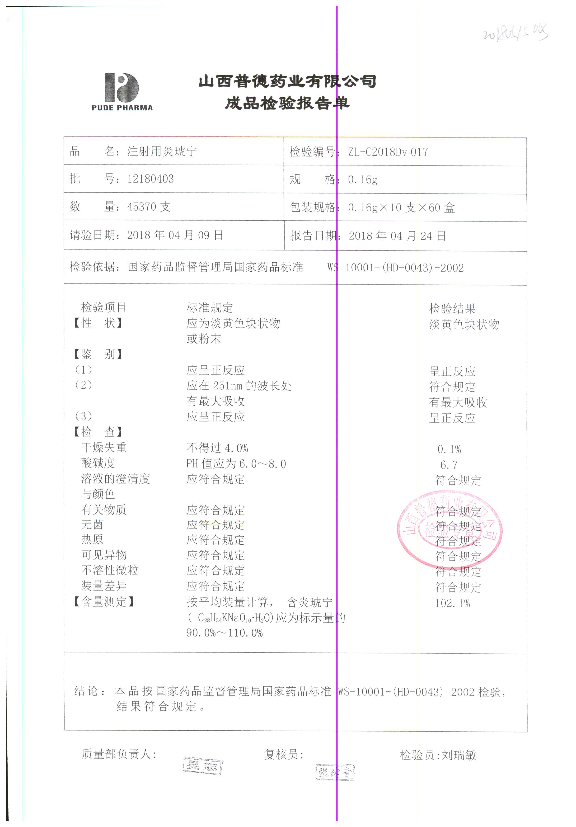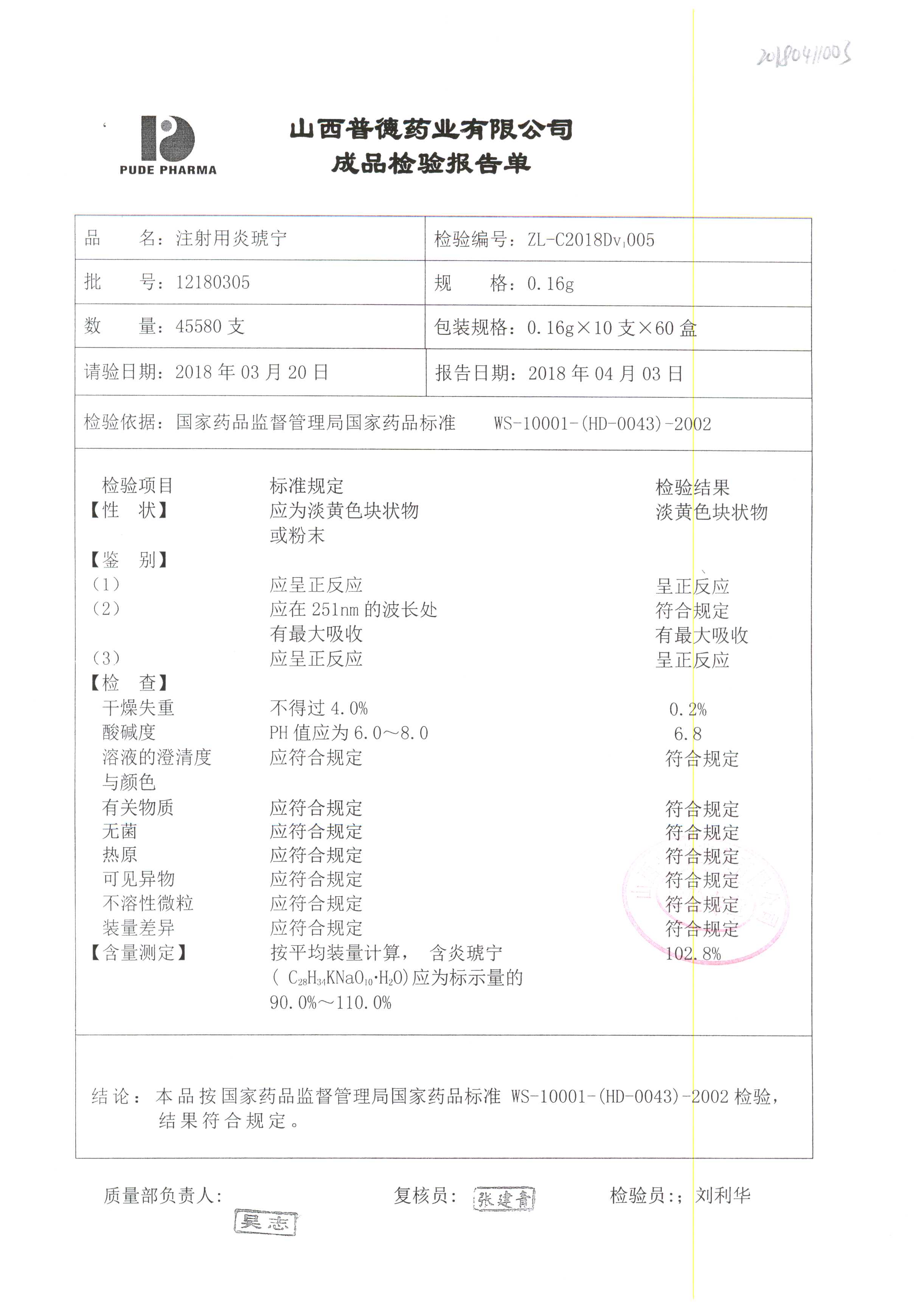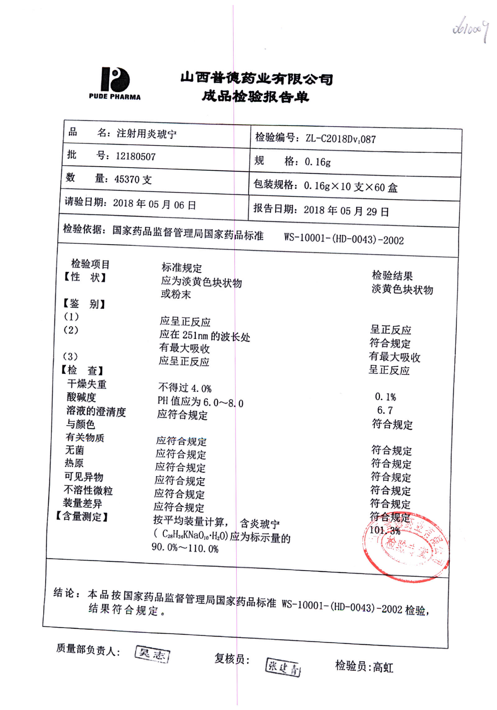 名稱(chēng) | 規(guī)格 | 批號(hào) | 藥檢報(bào)告 |