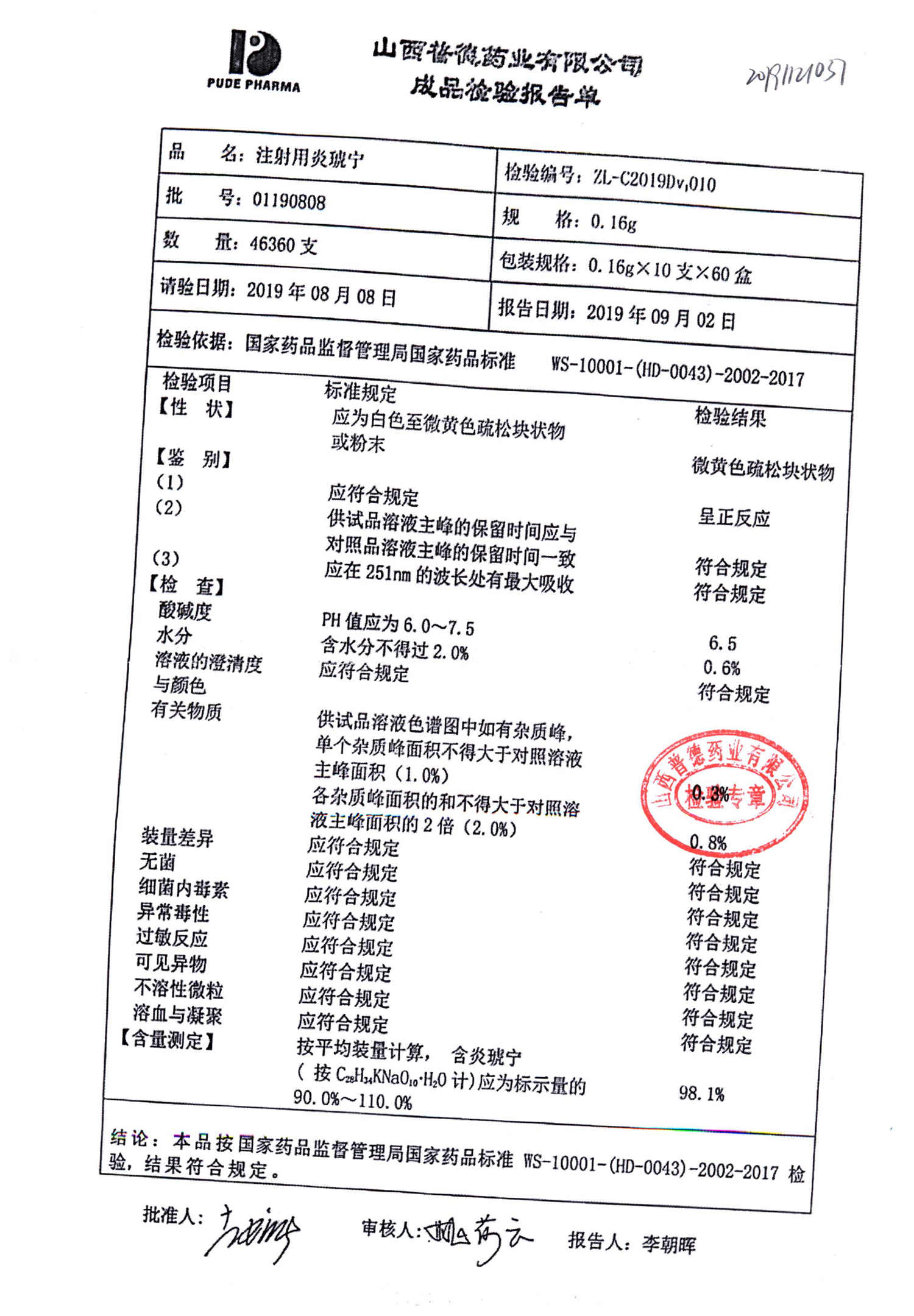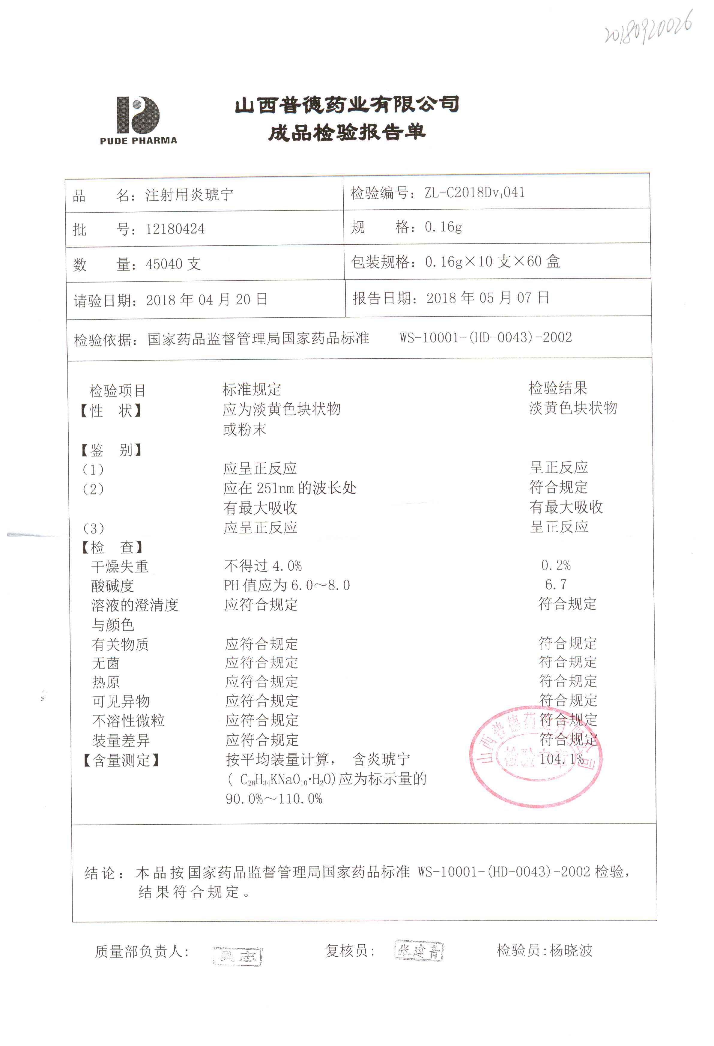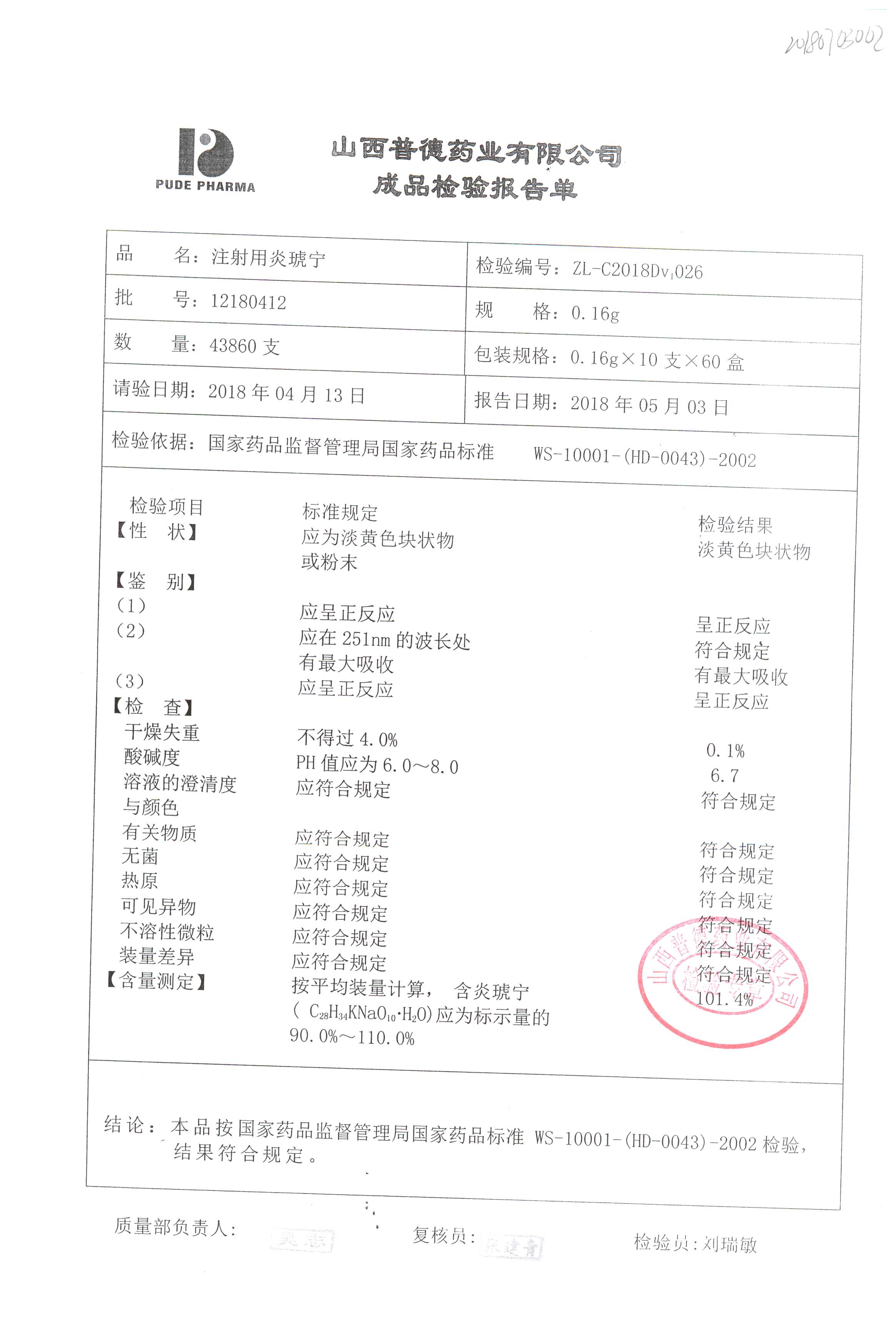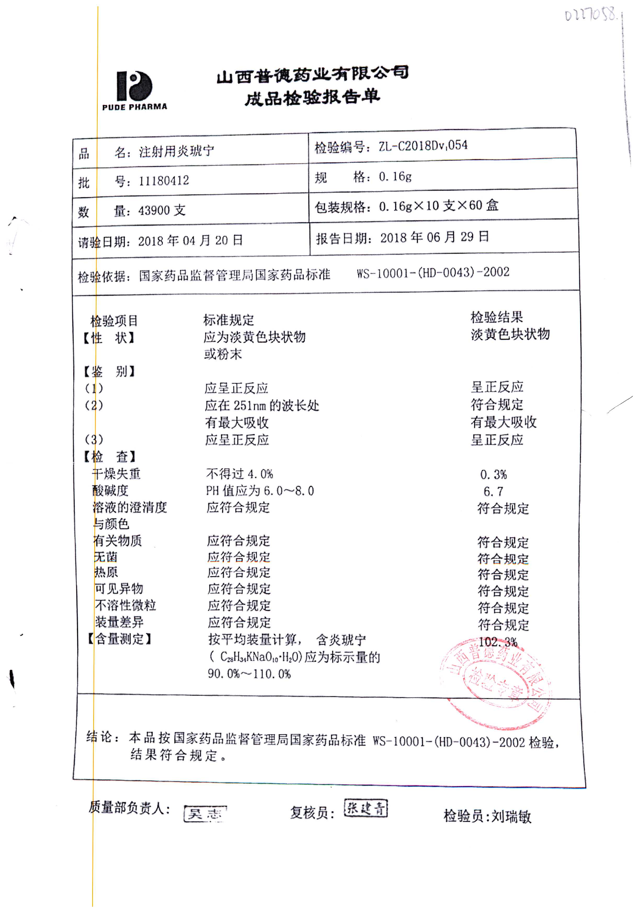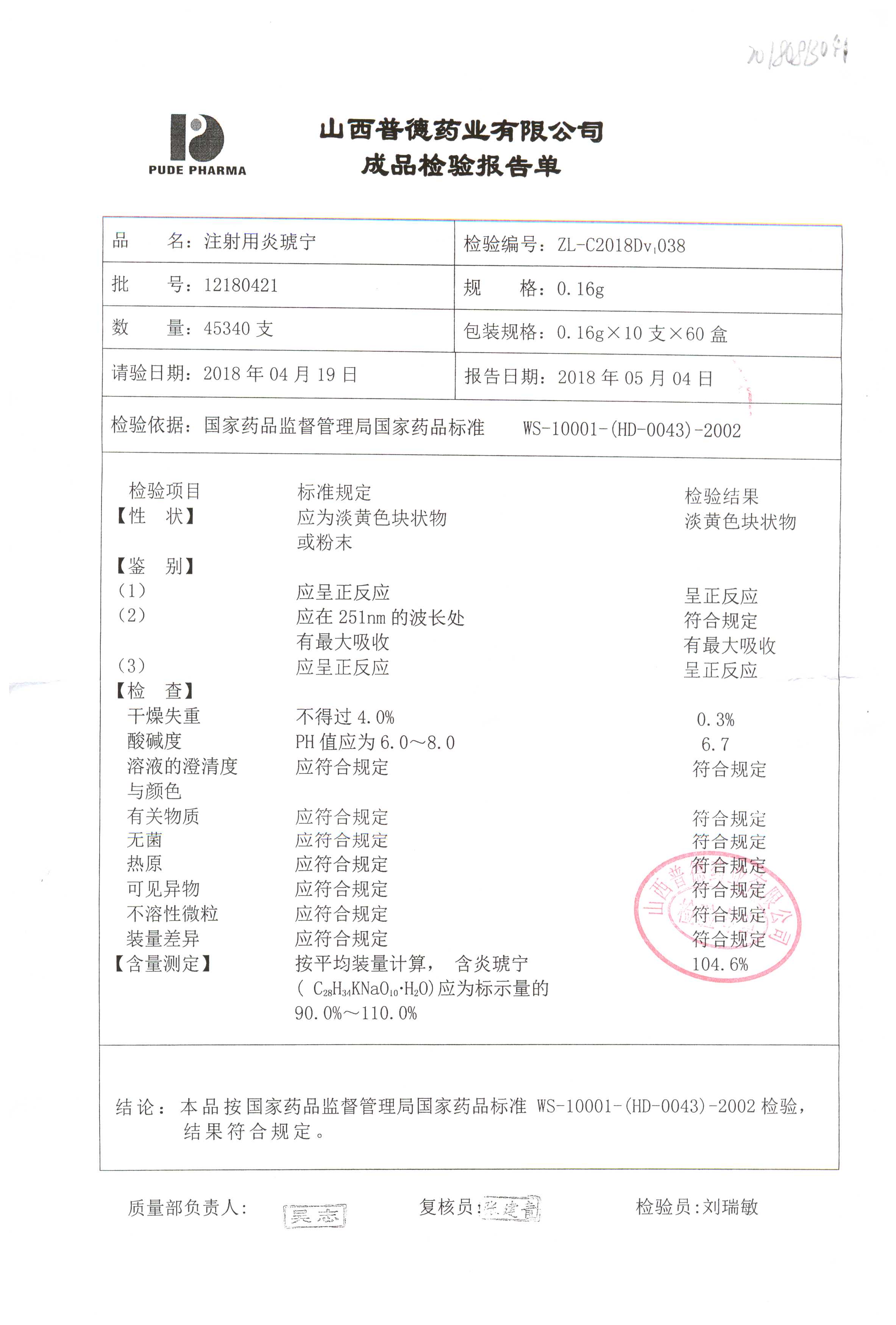 名稱(chēng) | 規(guī)格 | 批號(hào) | 藥檢報(bào)告 |