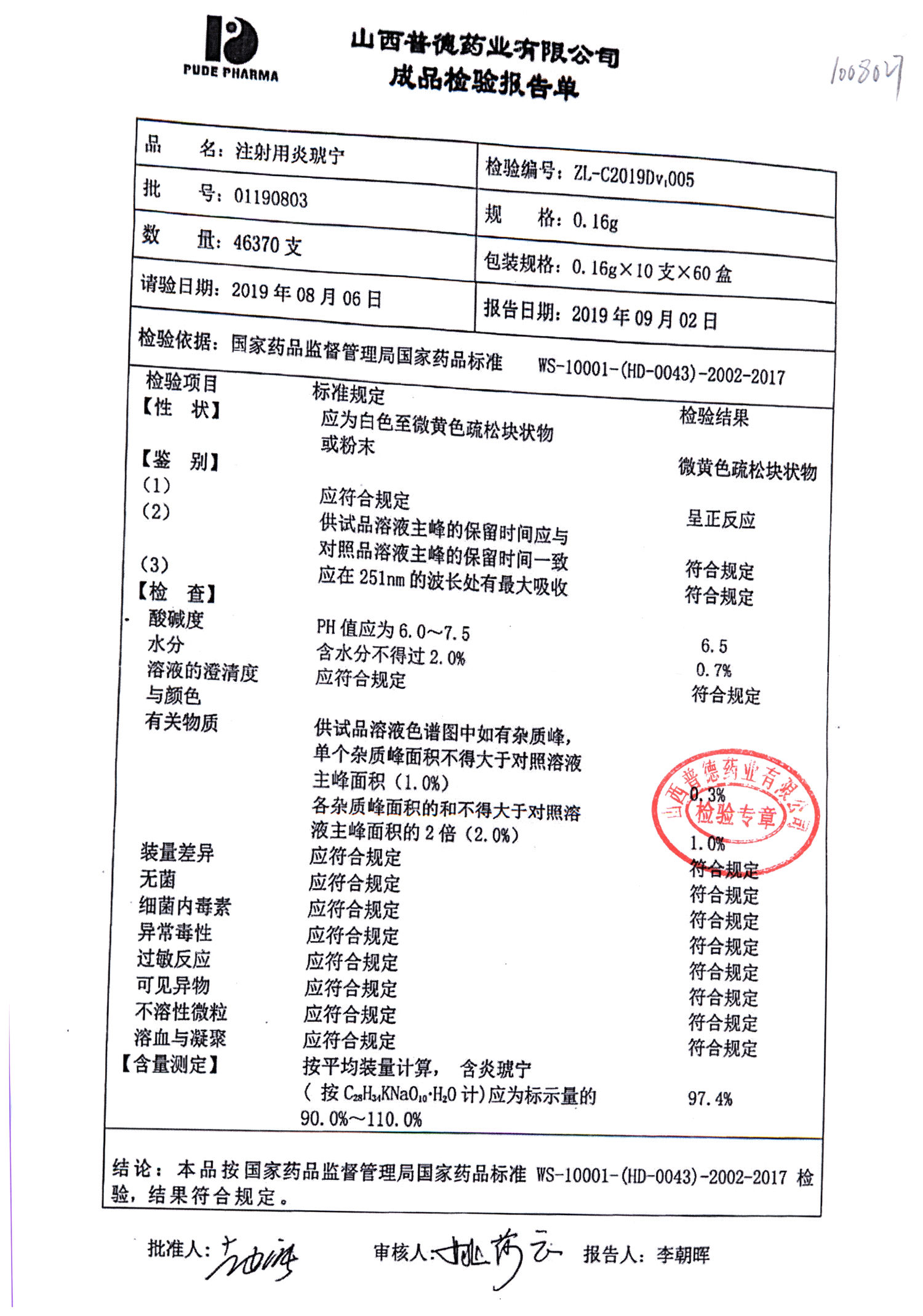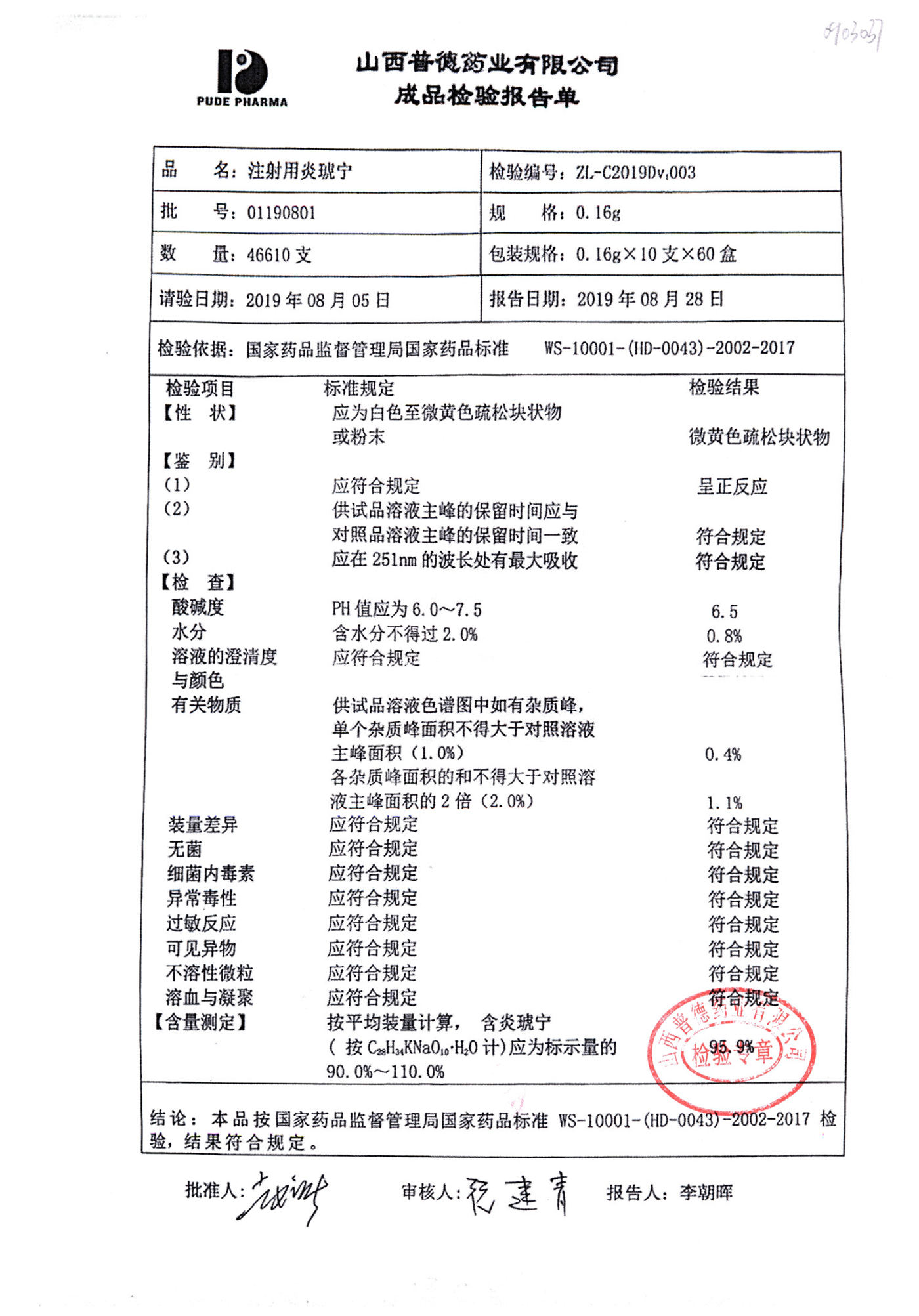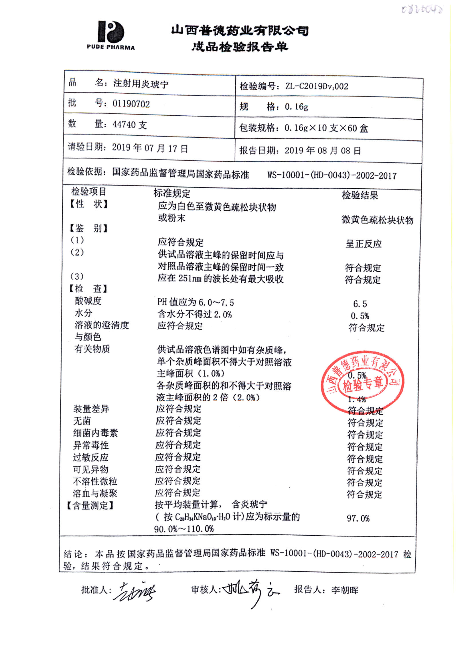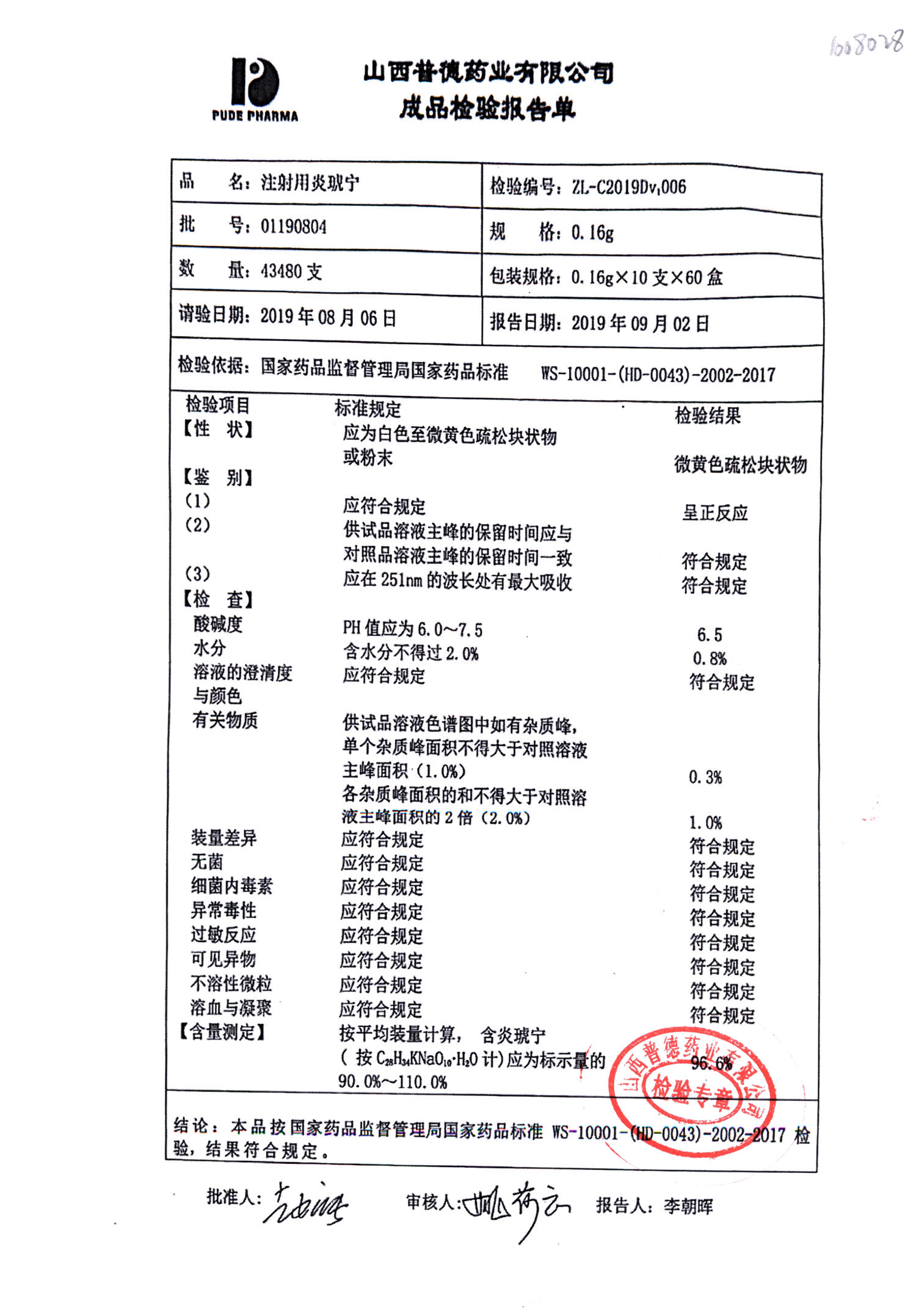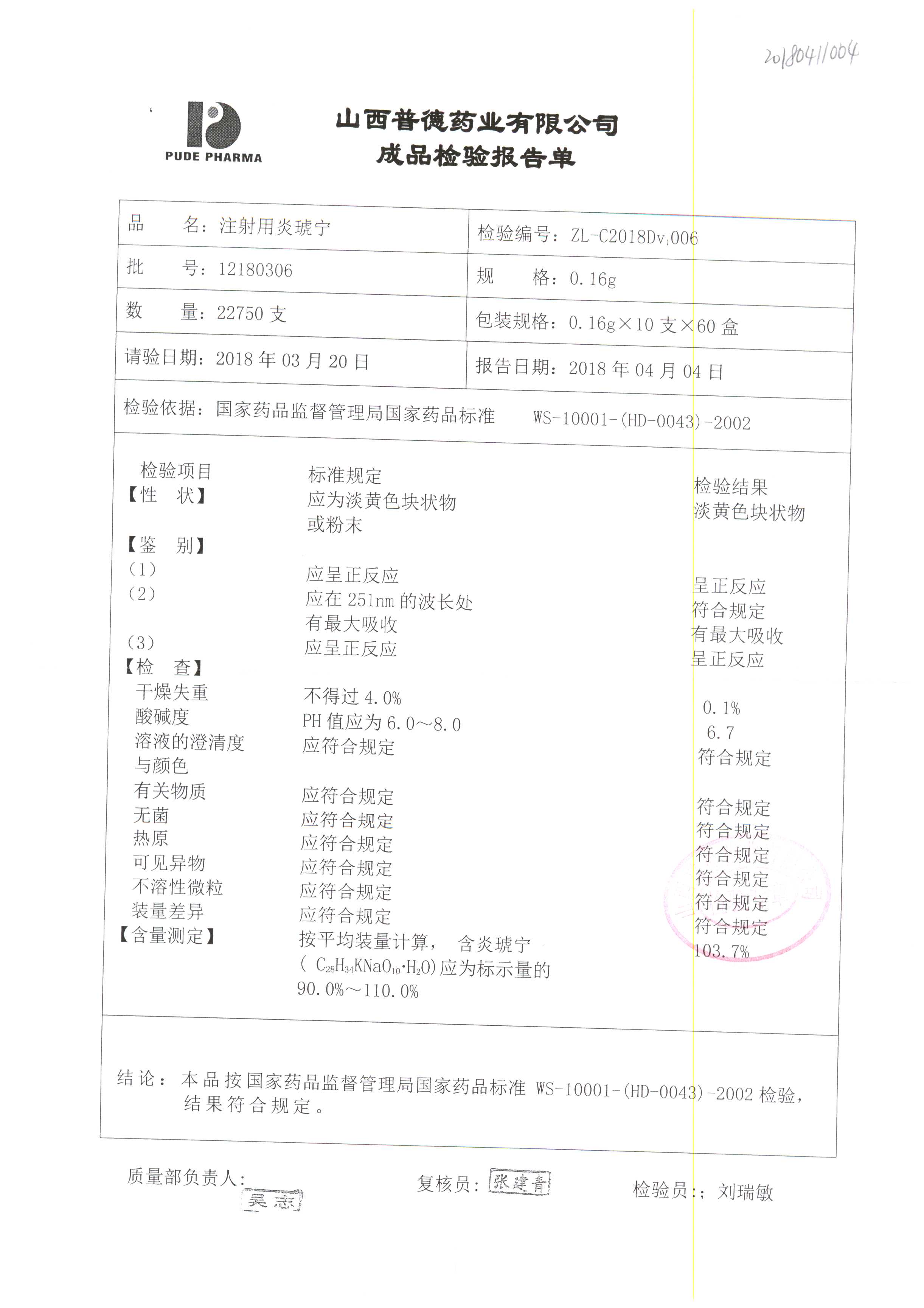 名稱(chēng) | 規(guī)格 | 批號(hào) | 藥檢報(bào)告 |