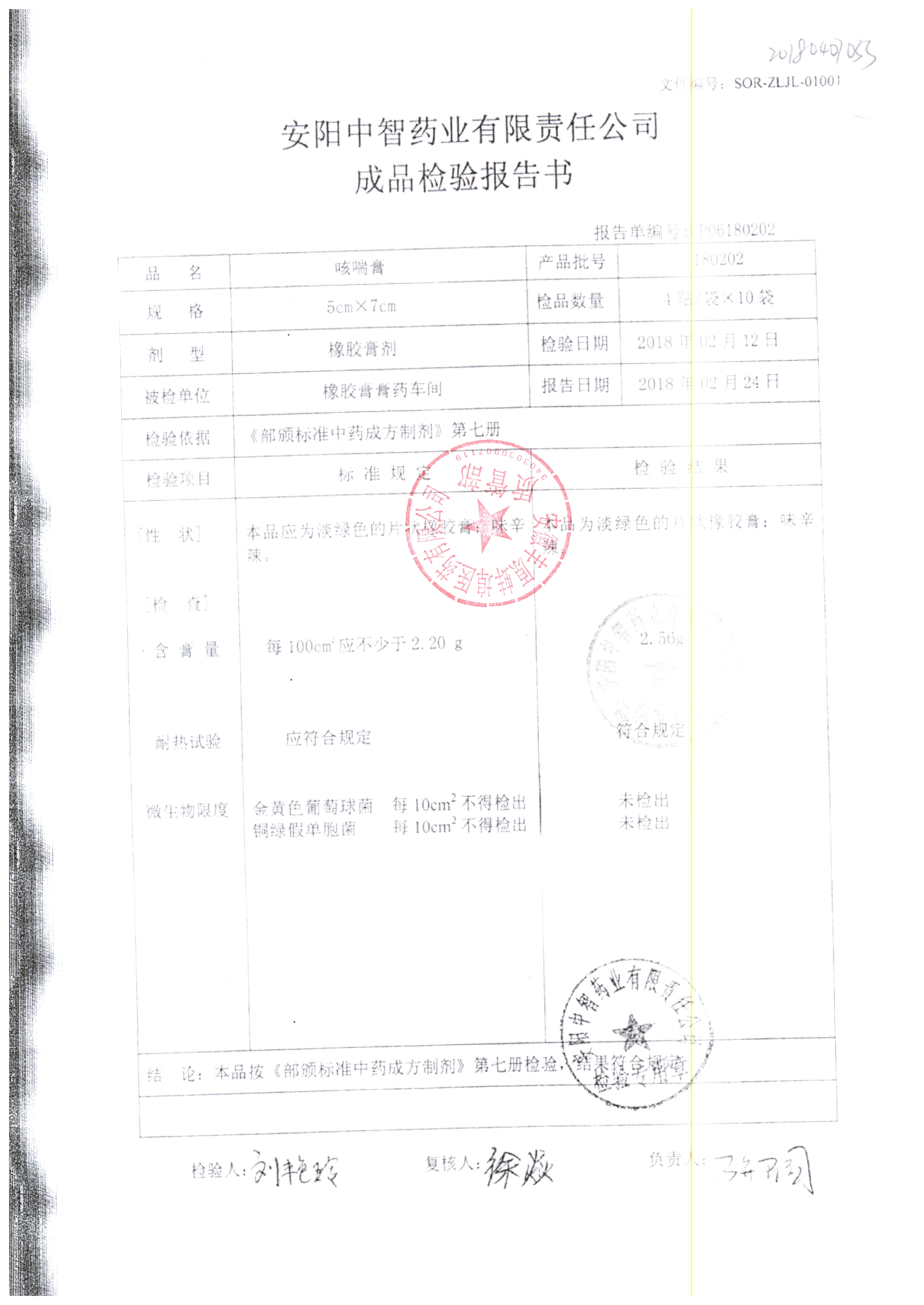 名稱 | 規(guī)格 | 批號(hào) | 藥檢報(bào)告 |