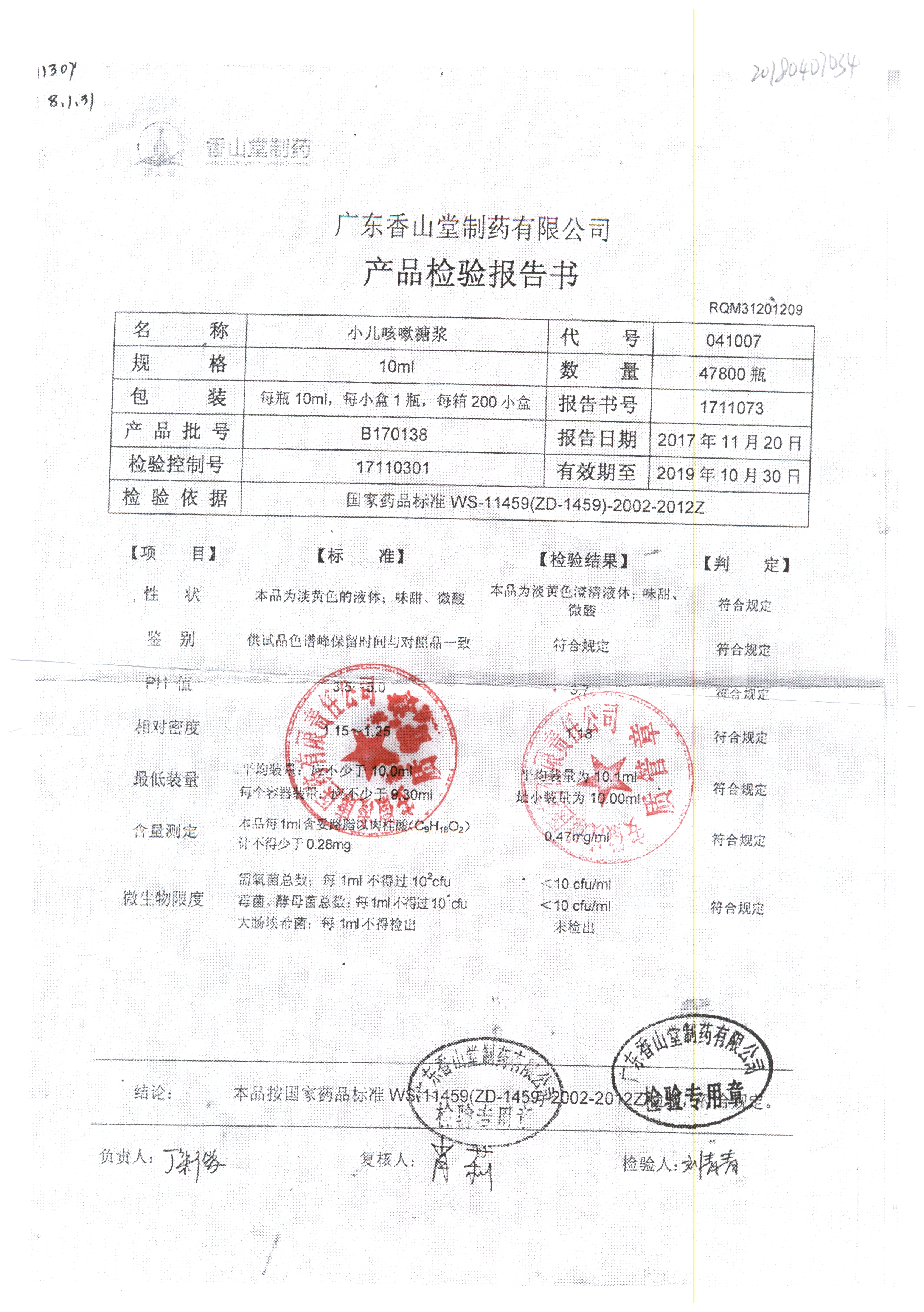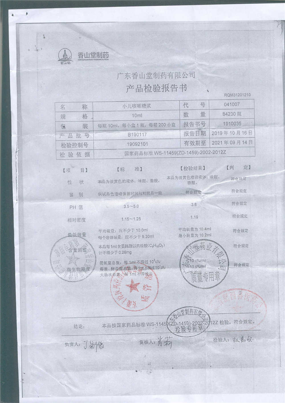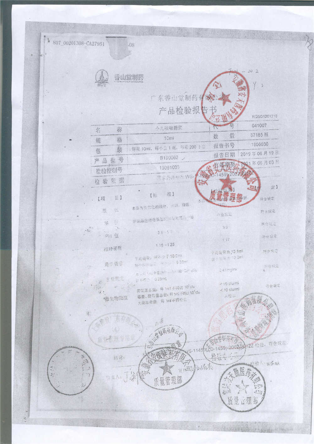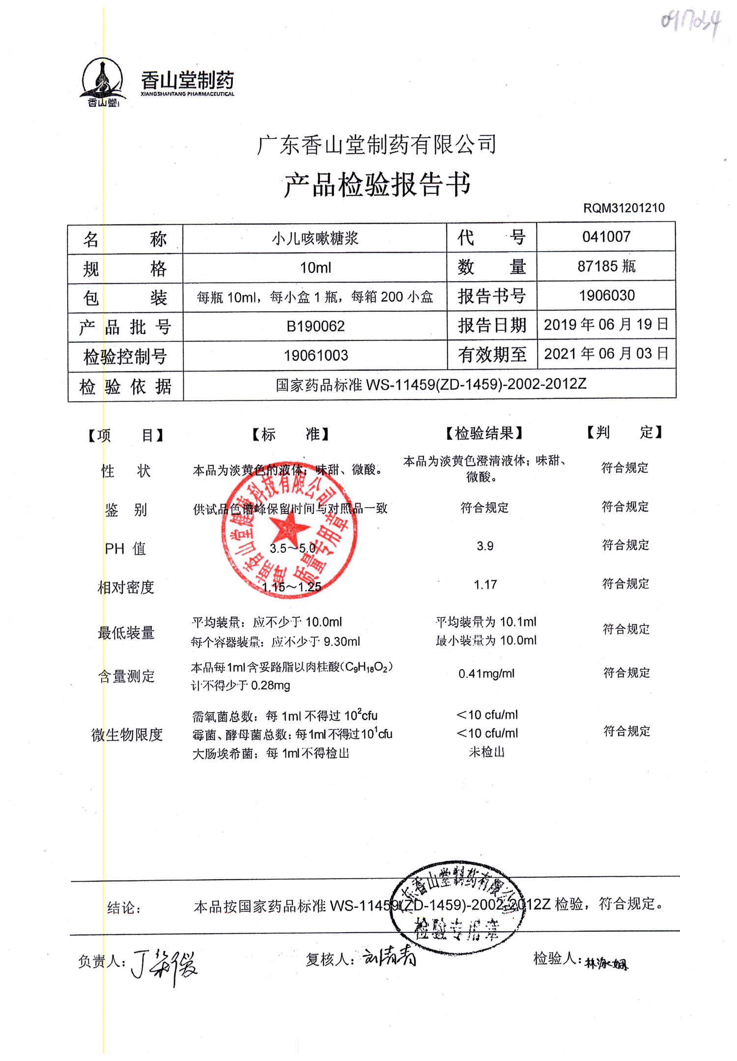 小兒咳嗽糖漿 | 10ml | B190119 | 查看詳情 |