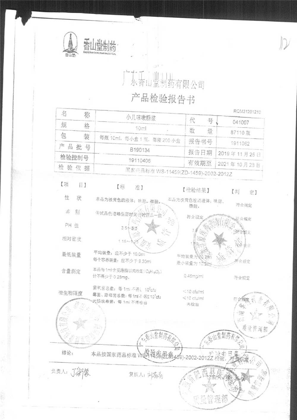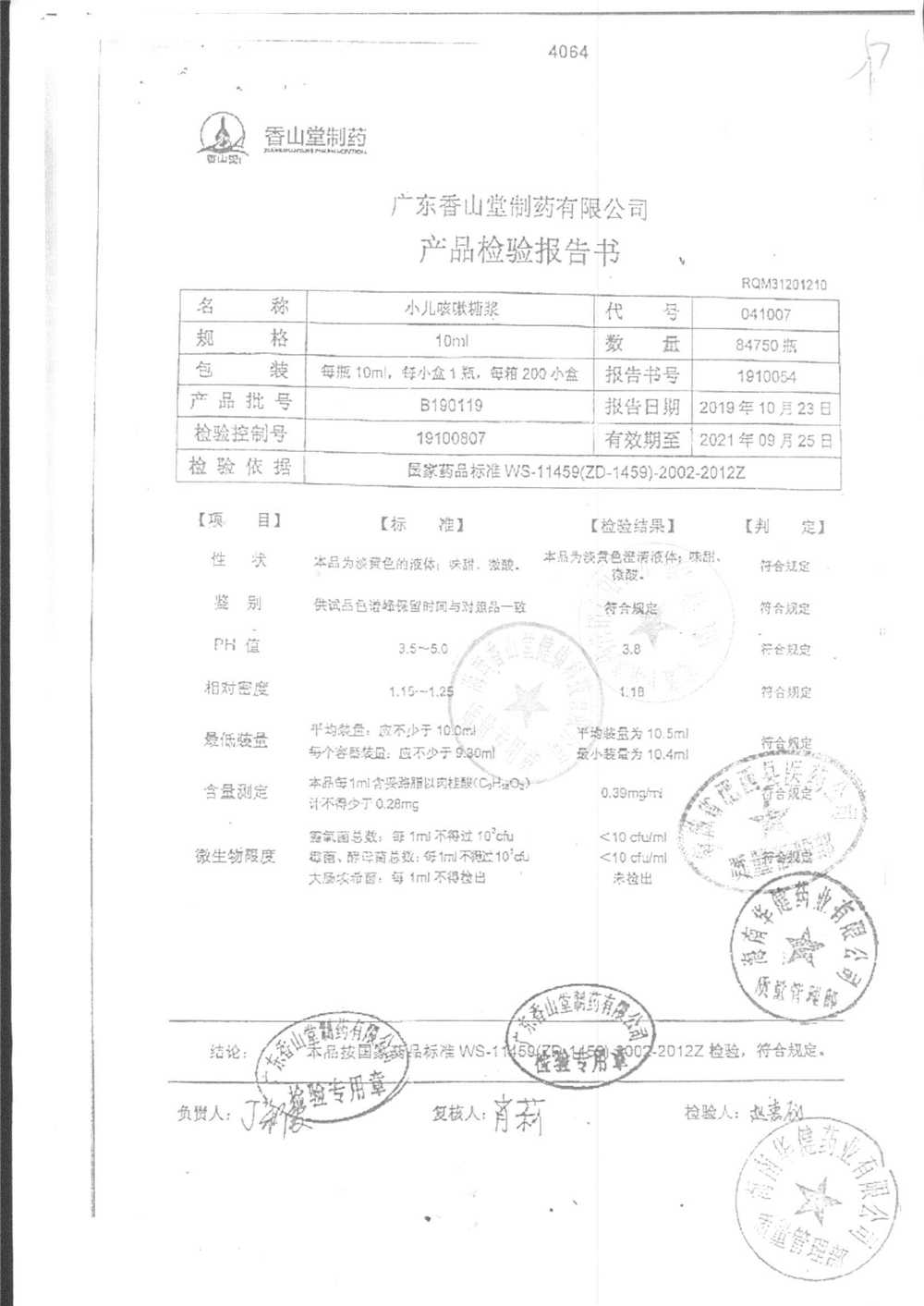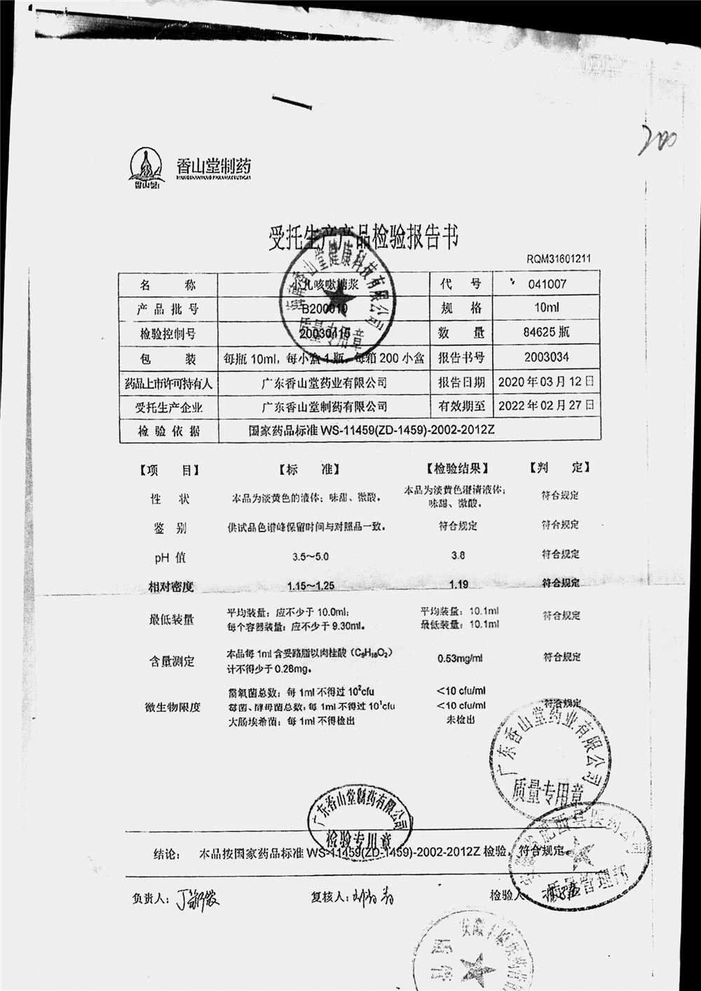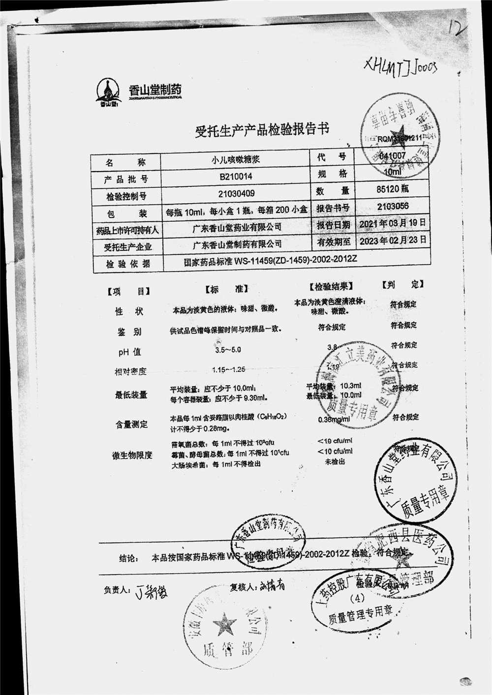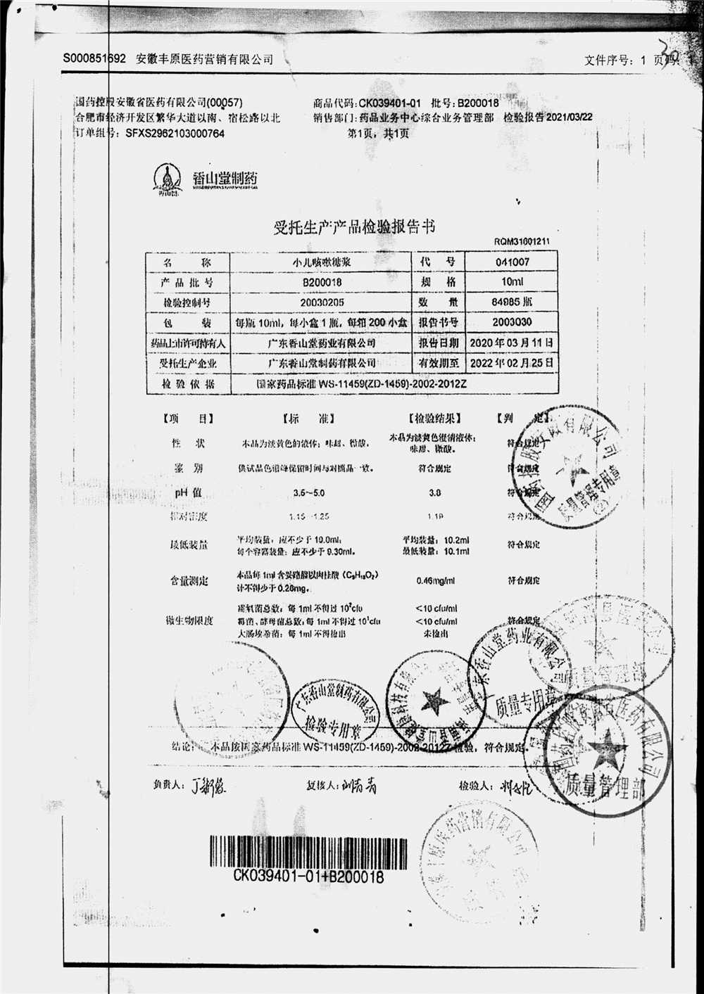 小兒咳嗽糖漿 | 10ml | B190119 | 查看詳情 |