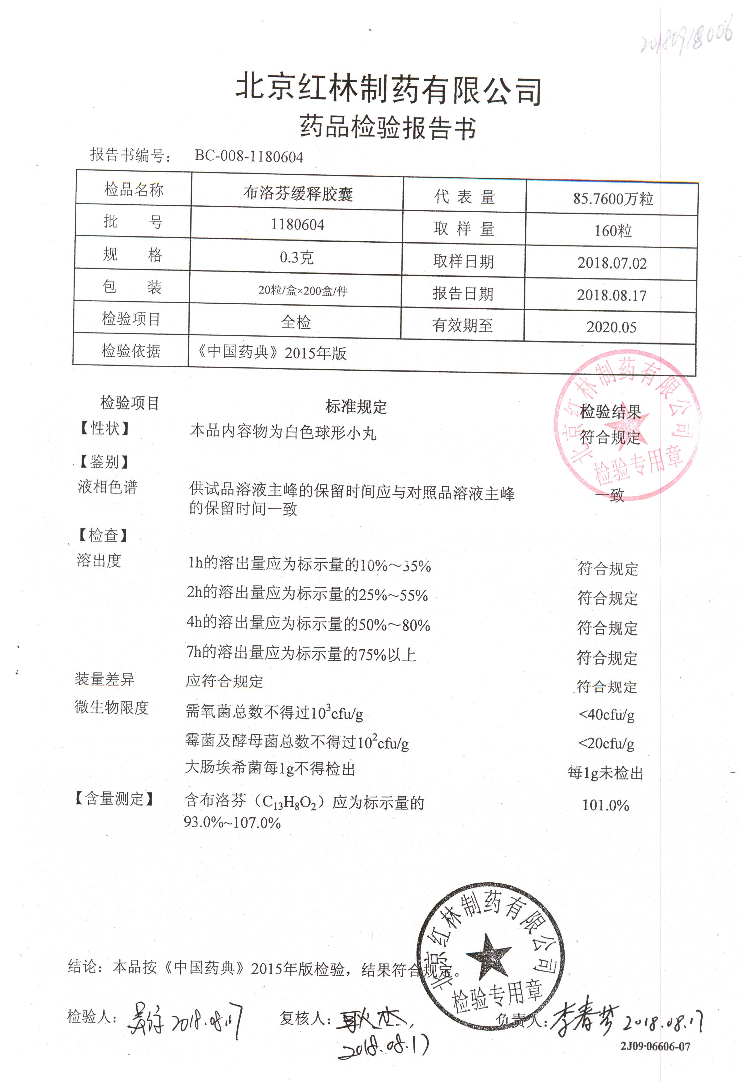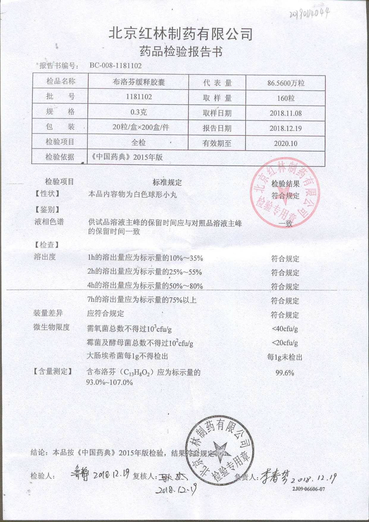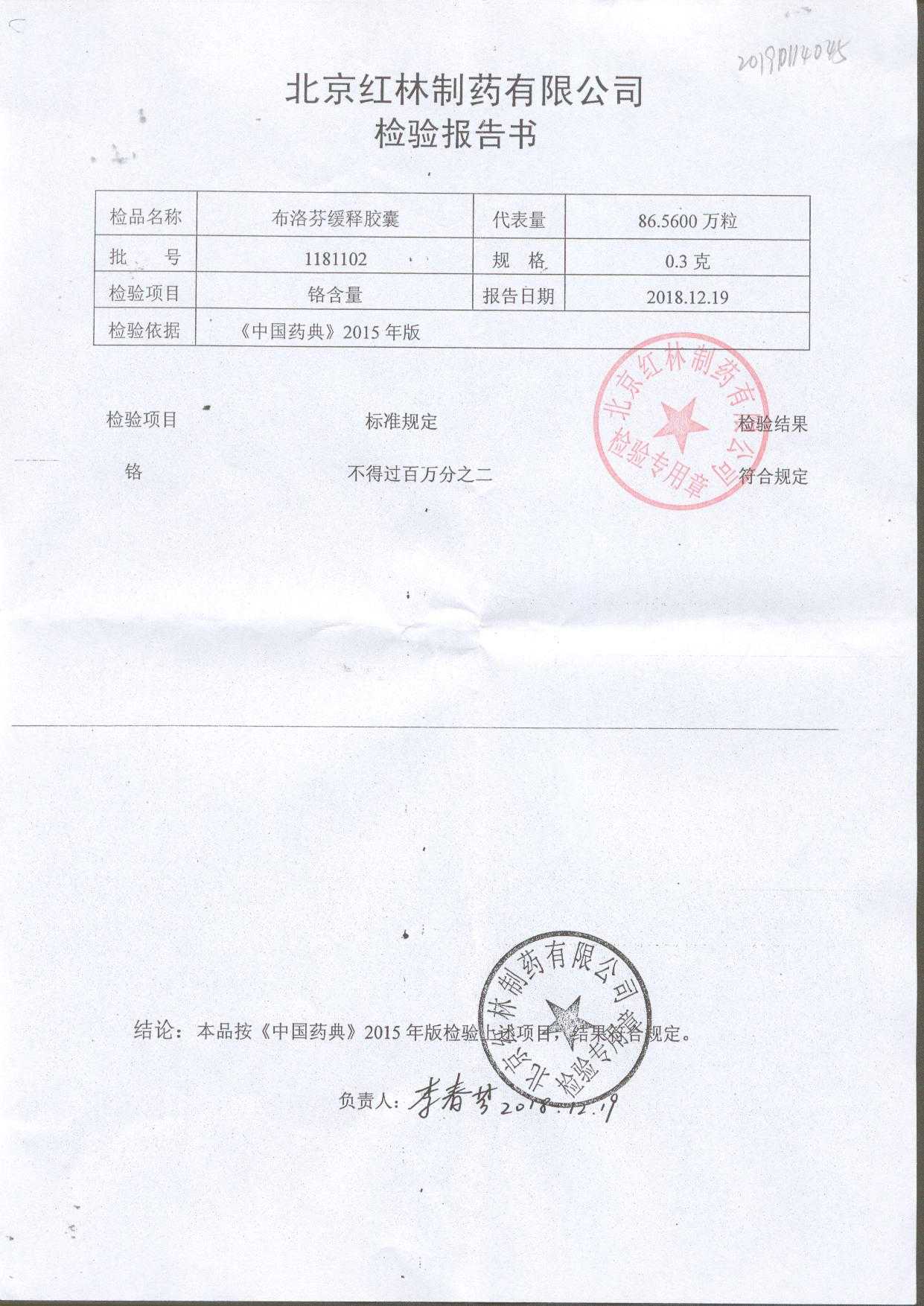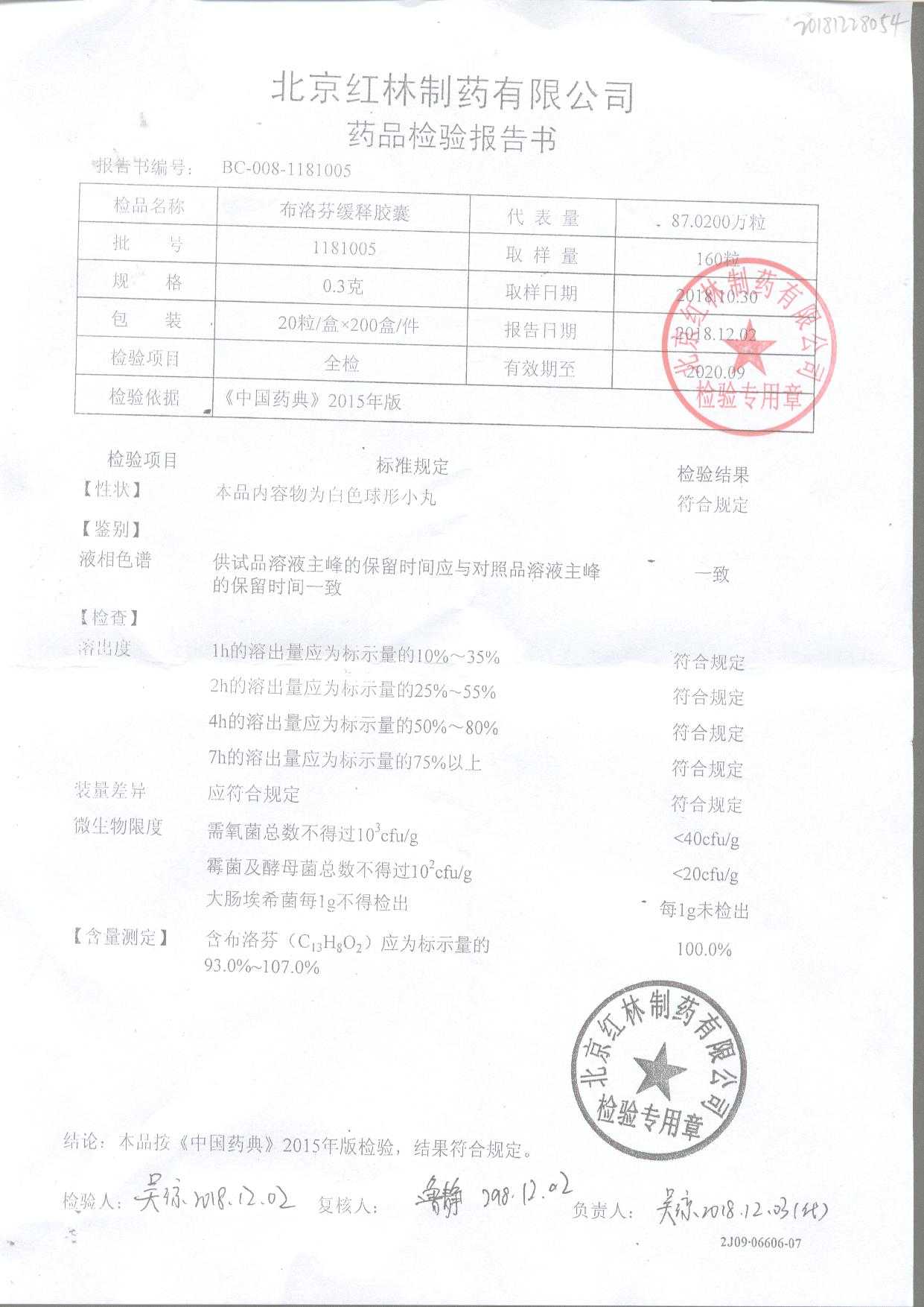 | 布洛芬緩釋膠囊 | 0.3g*20粒 | 1180603(2/2) | 查看詳情 |