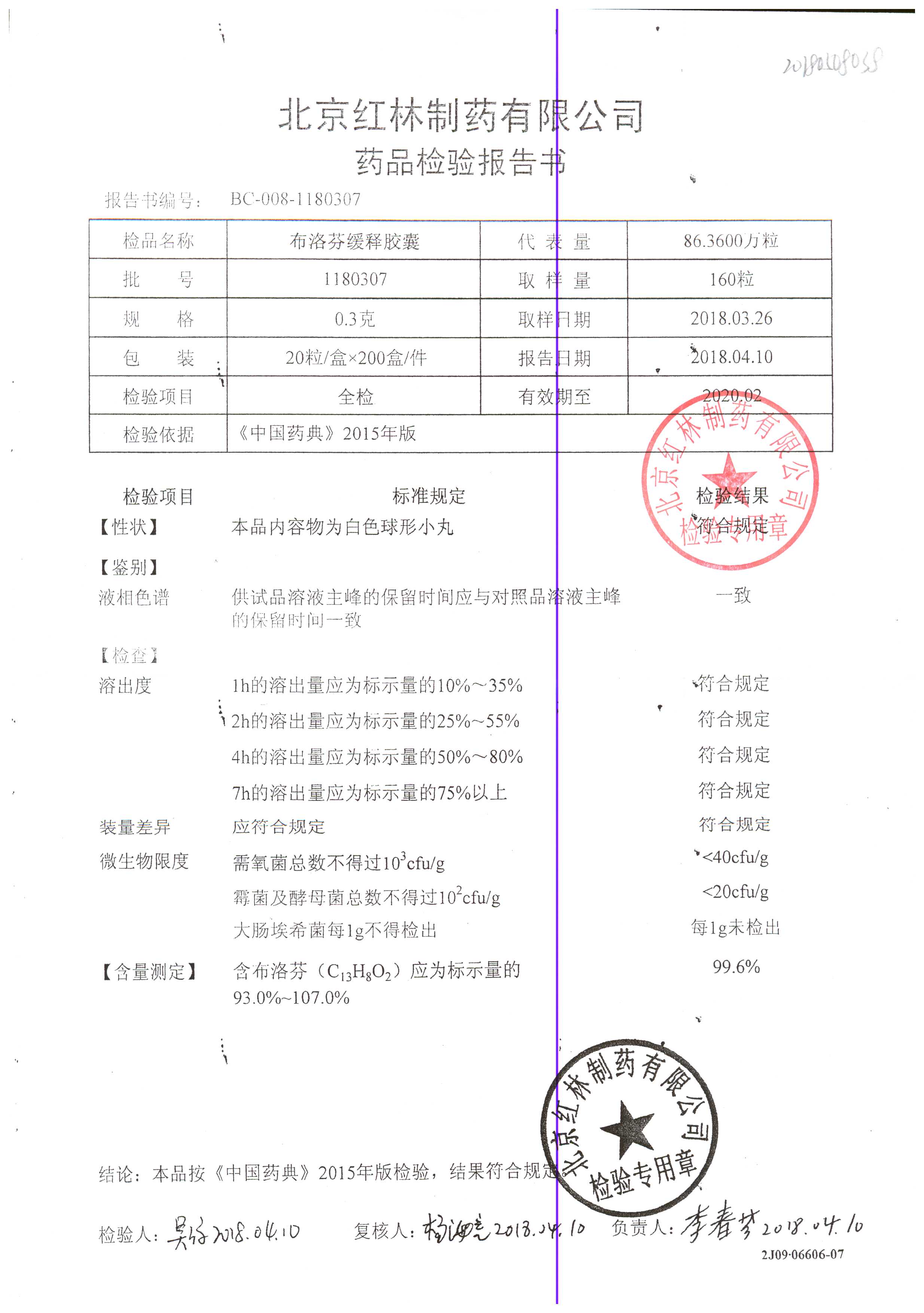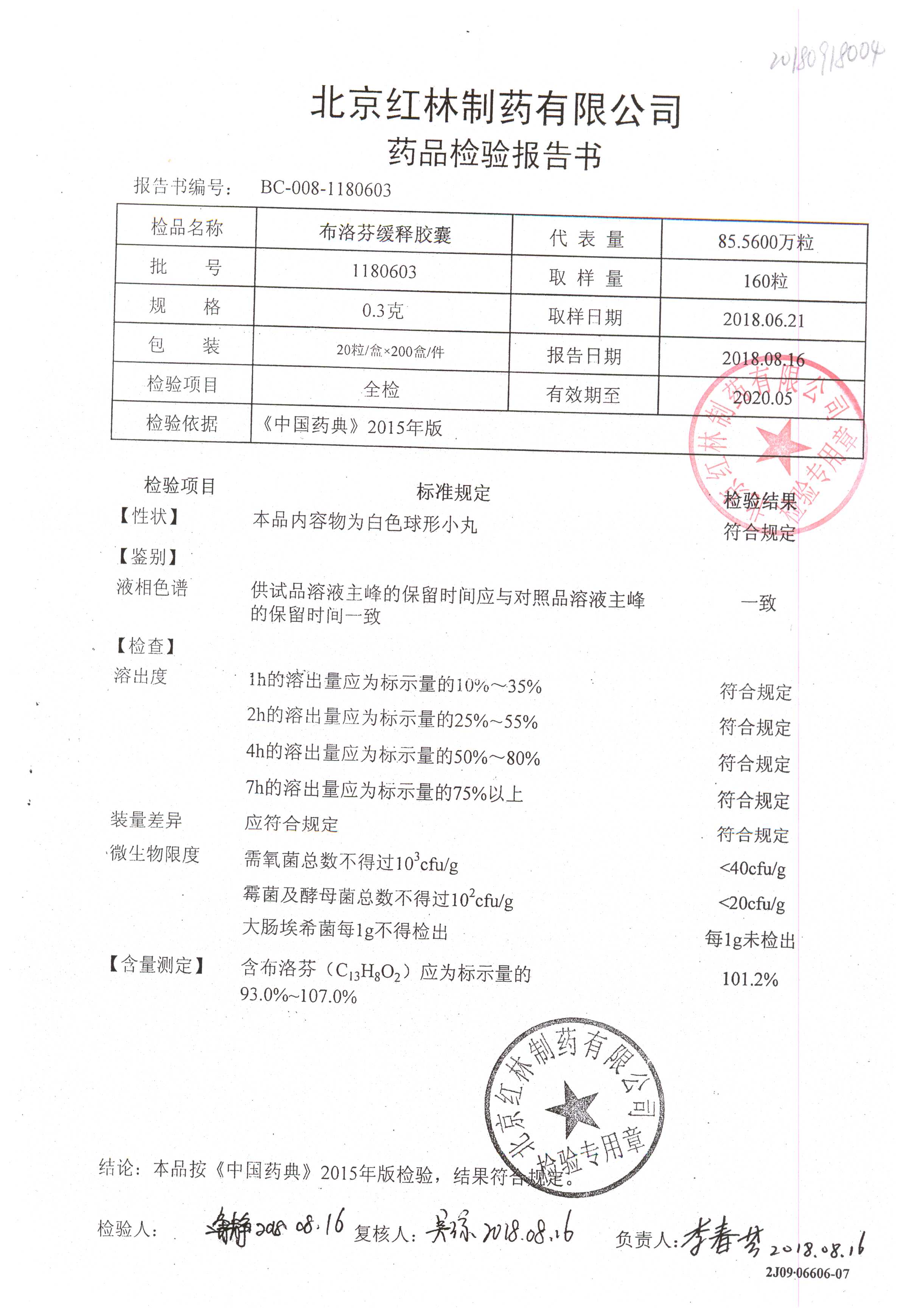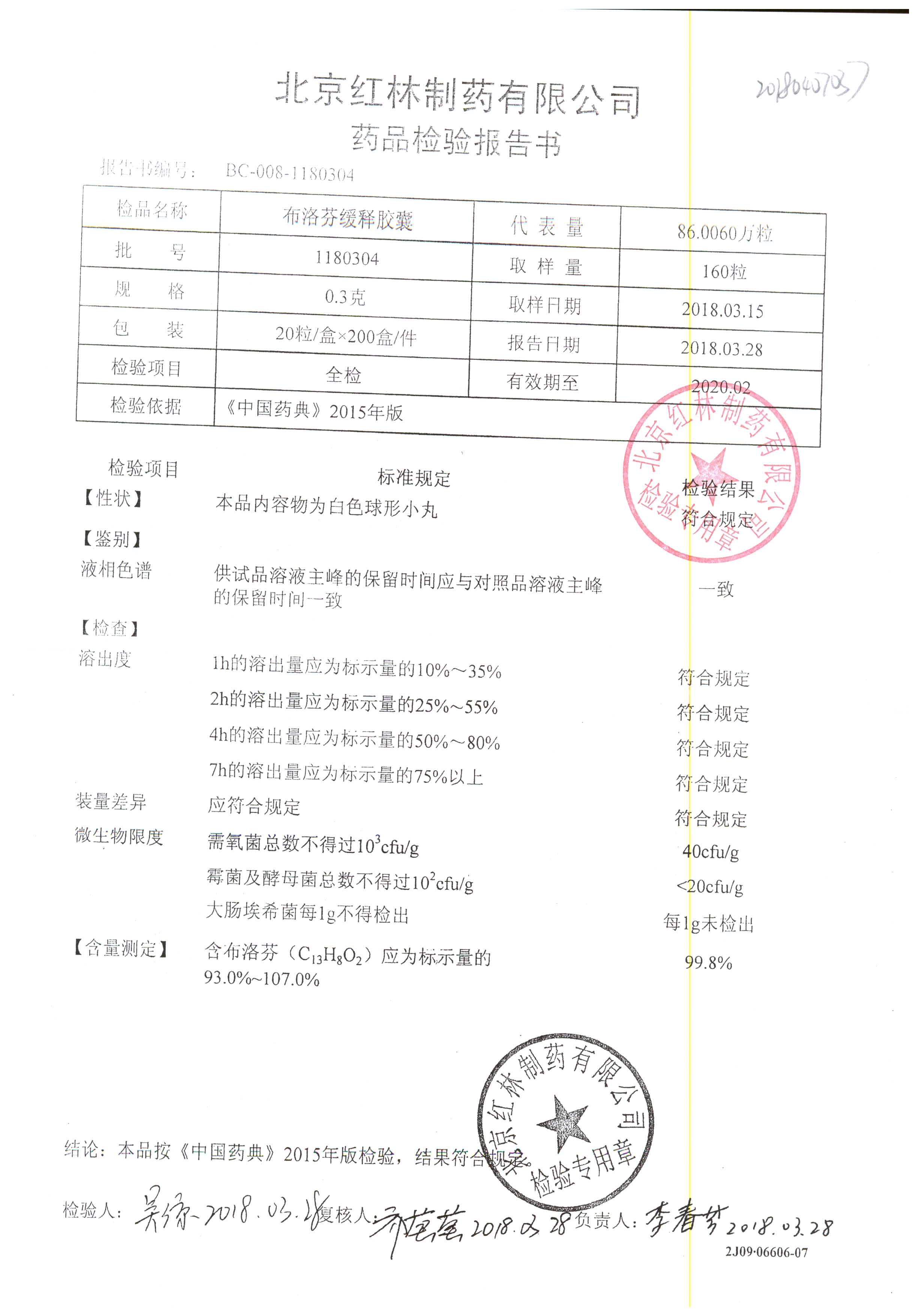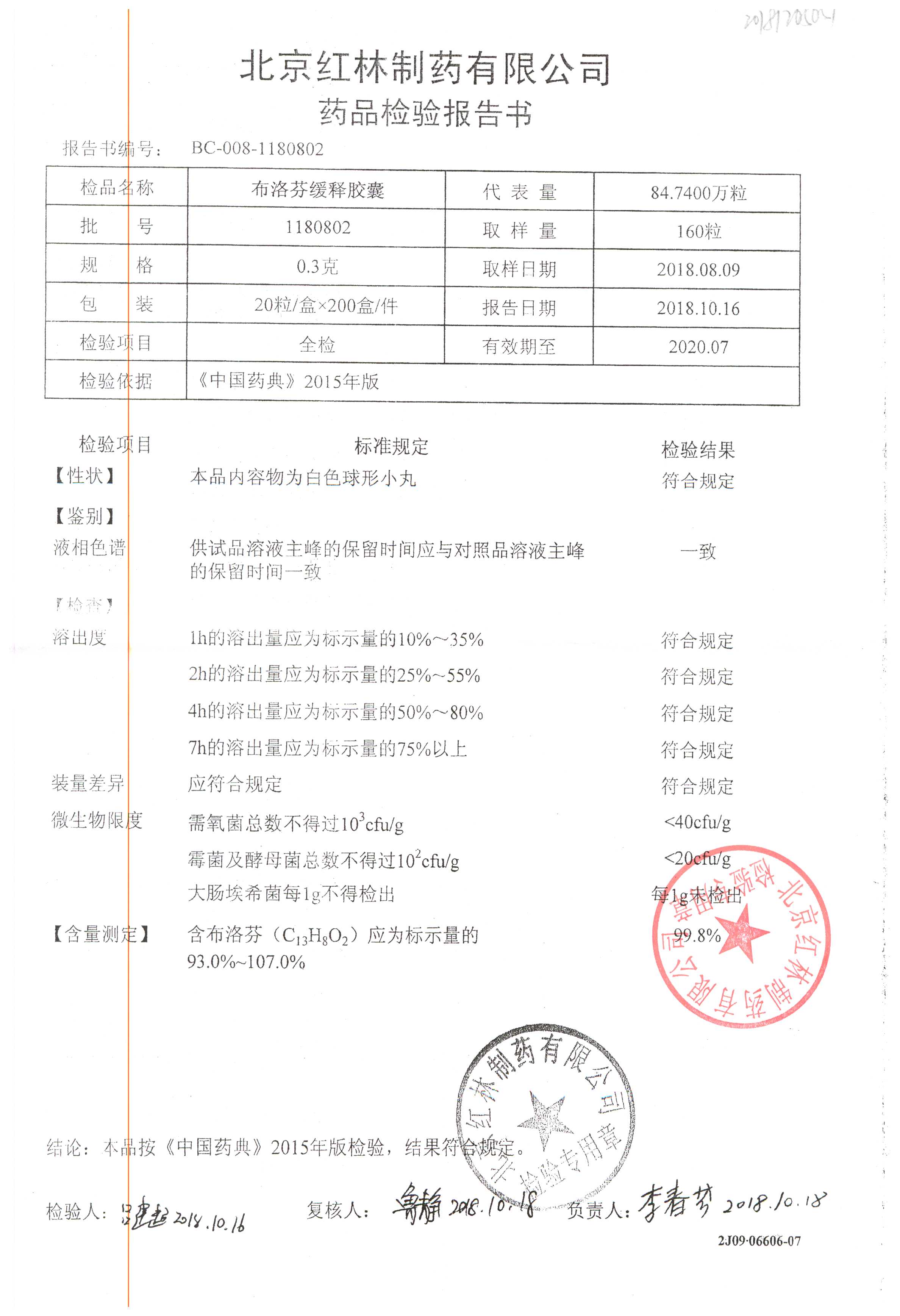 | 布洛芬緩釋膠囊 | 0.3g*20粒 | 1180603(2/2) | 查看詳情 |