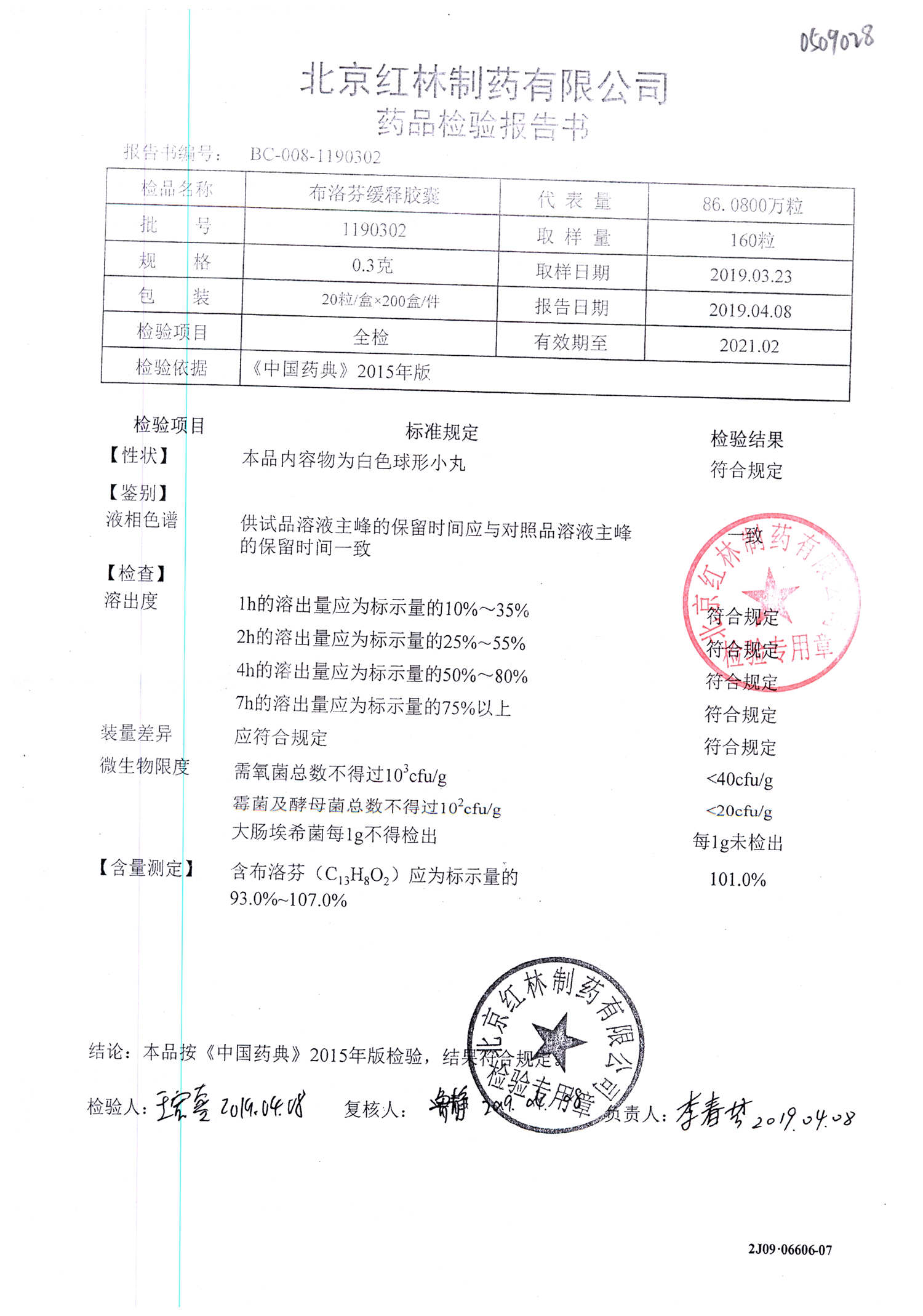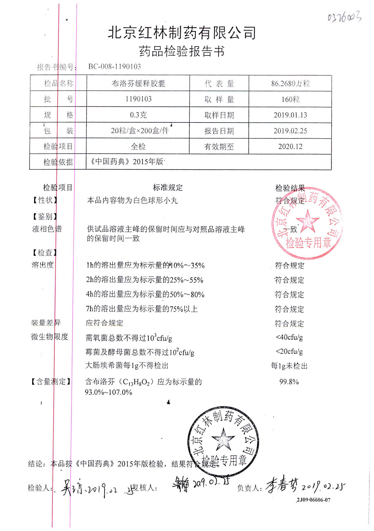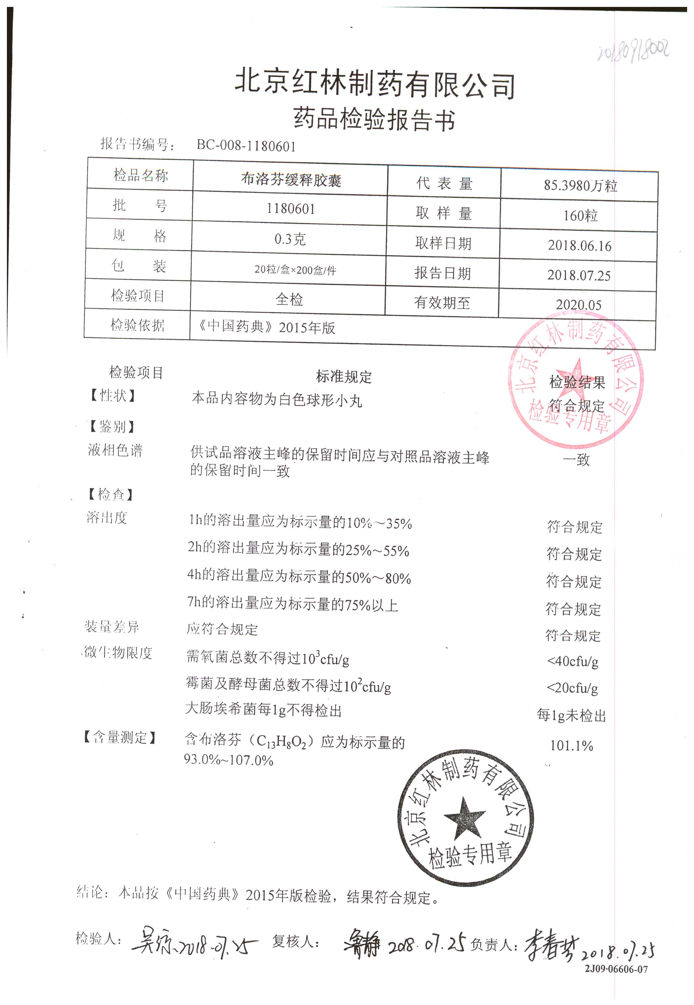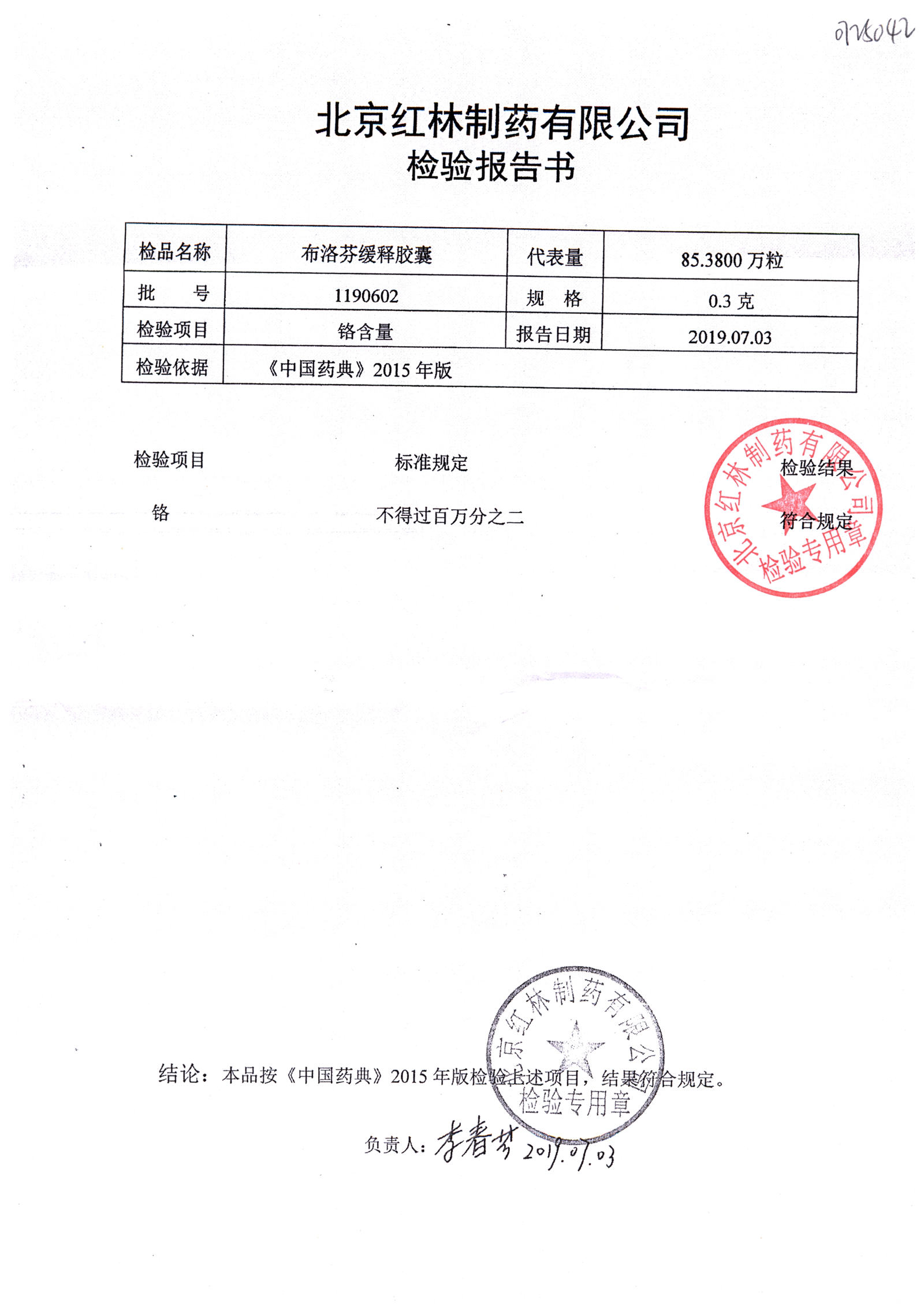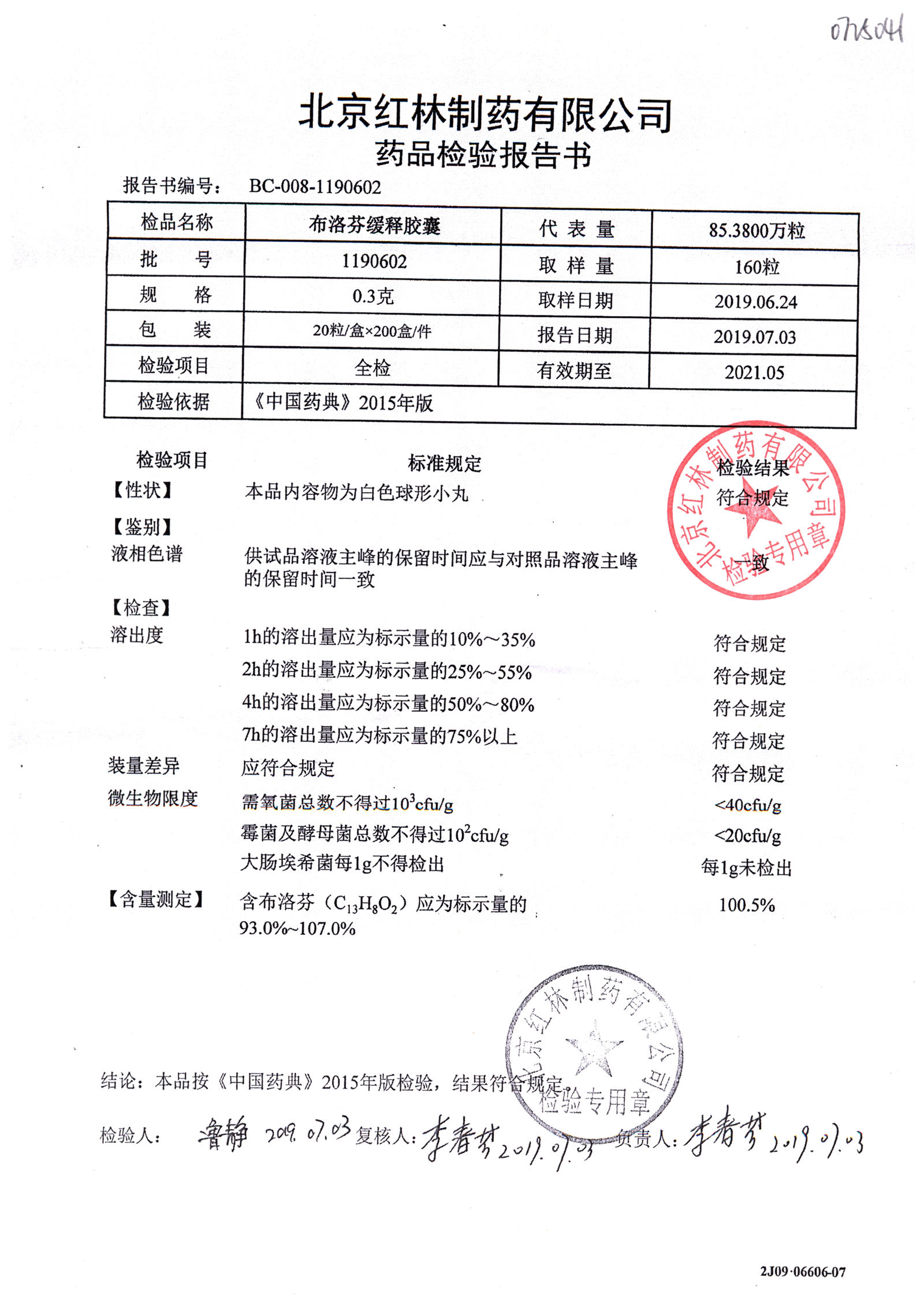 | 布洛芬緩釋膠囊 | 0.3g*20粒 | 1180603(2/2) | 查看詳情 |