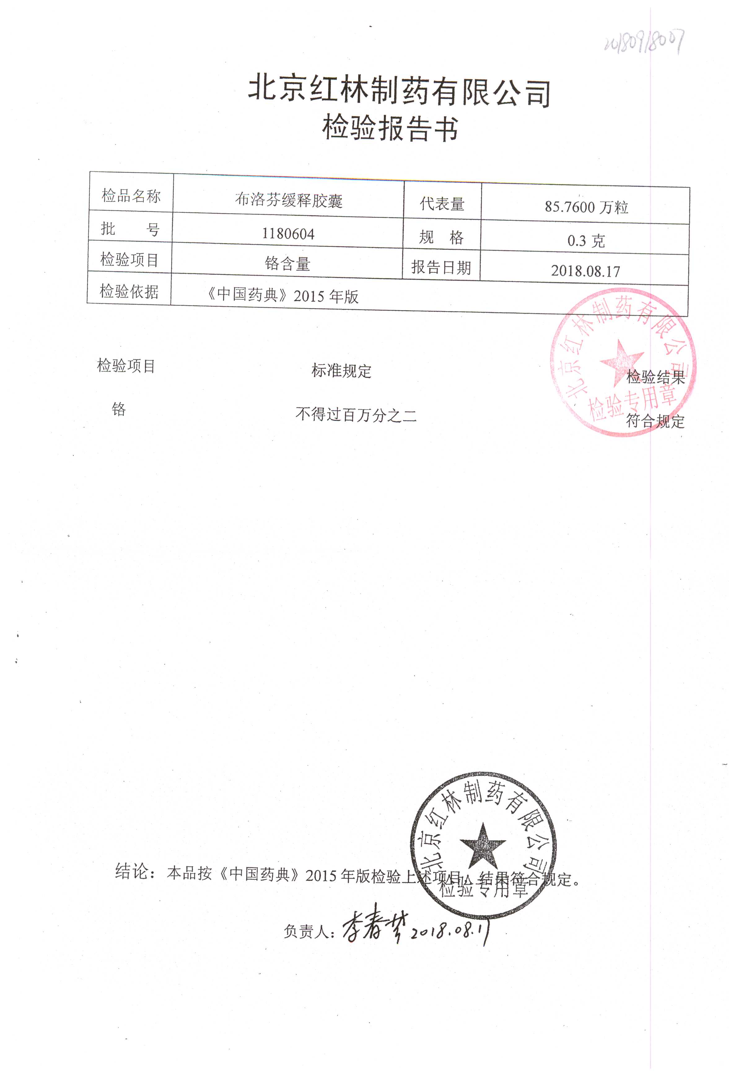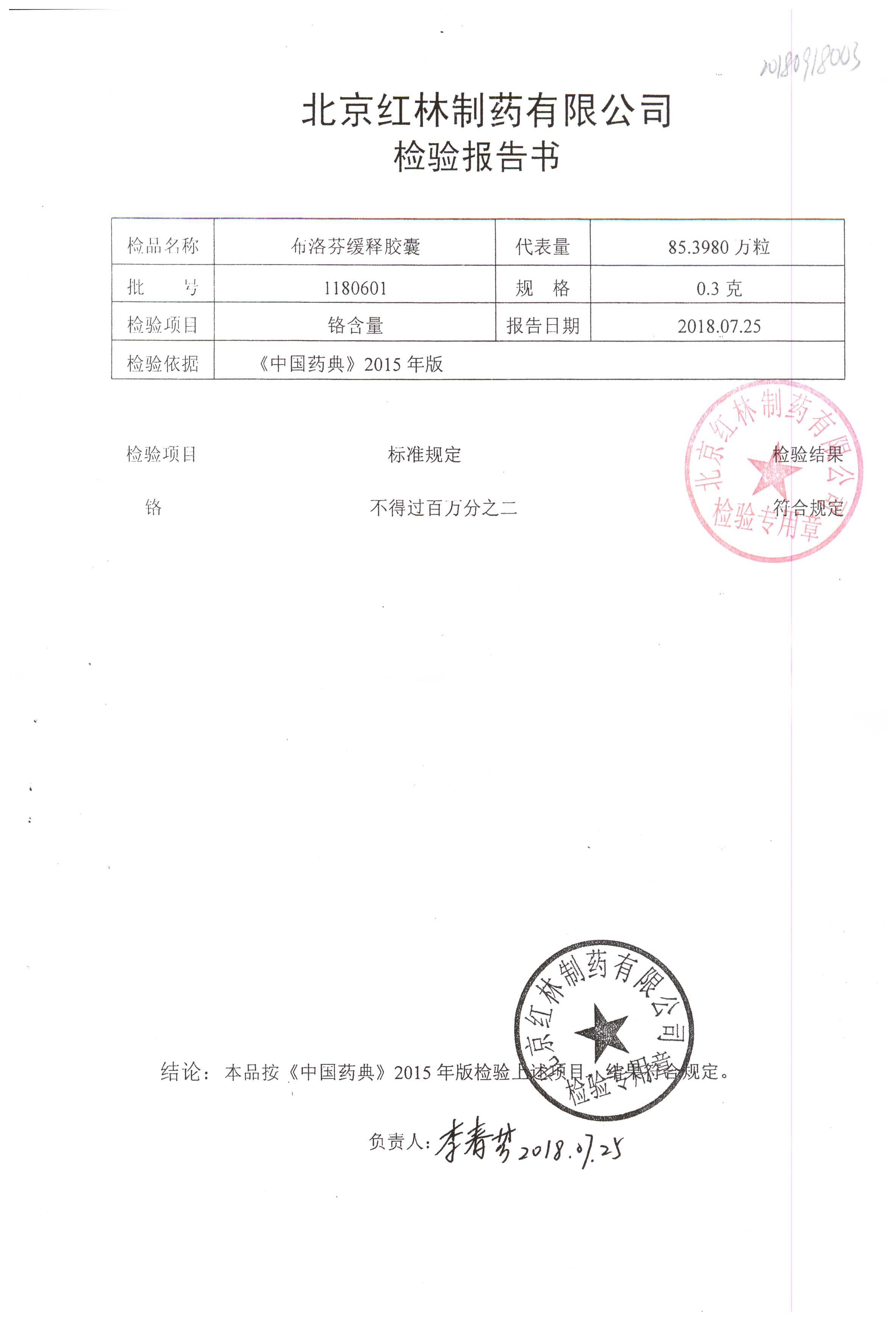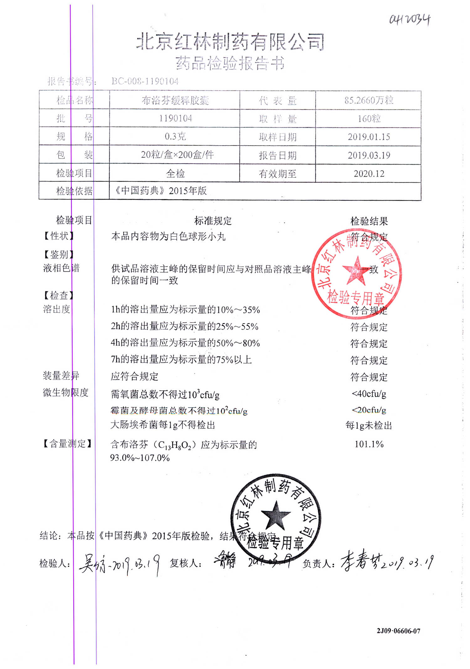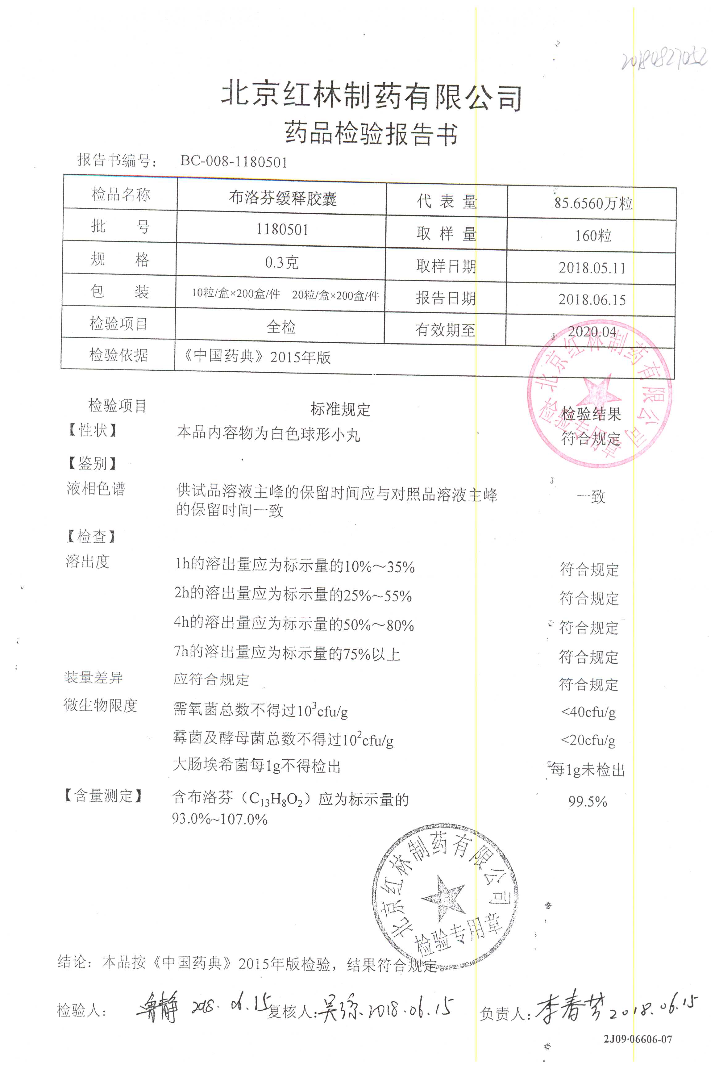 | 布洛芬緩釋膠囊 | 0.3g*20粒 | 1180603(2/2) | 查看詳情 |