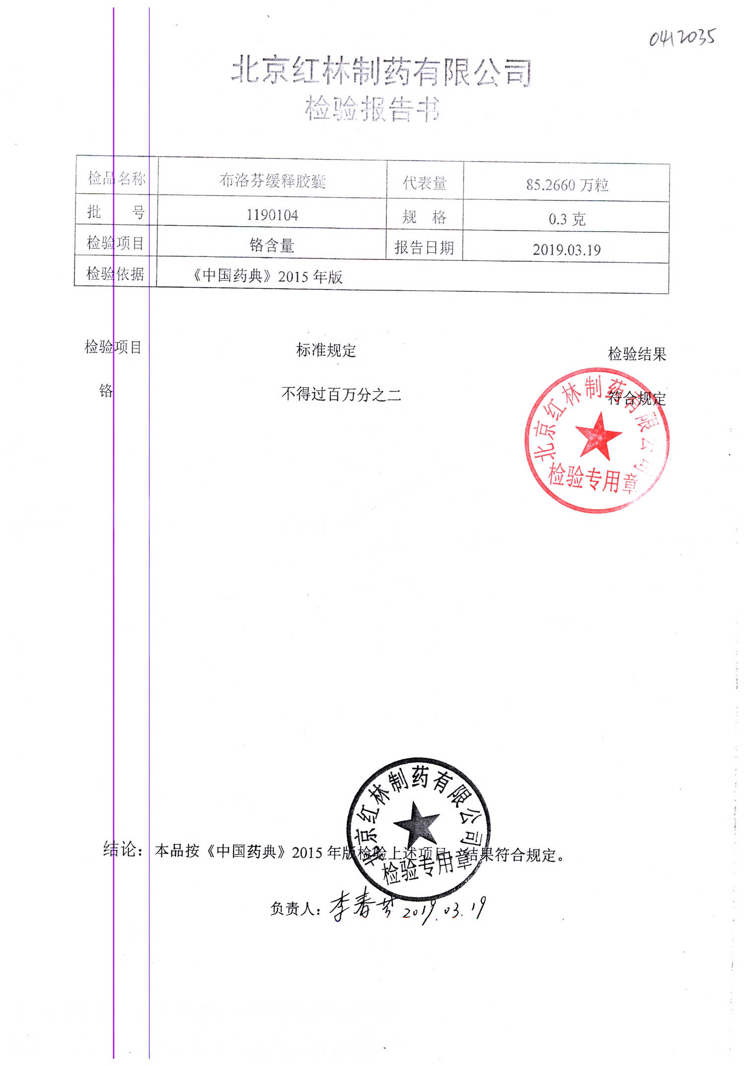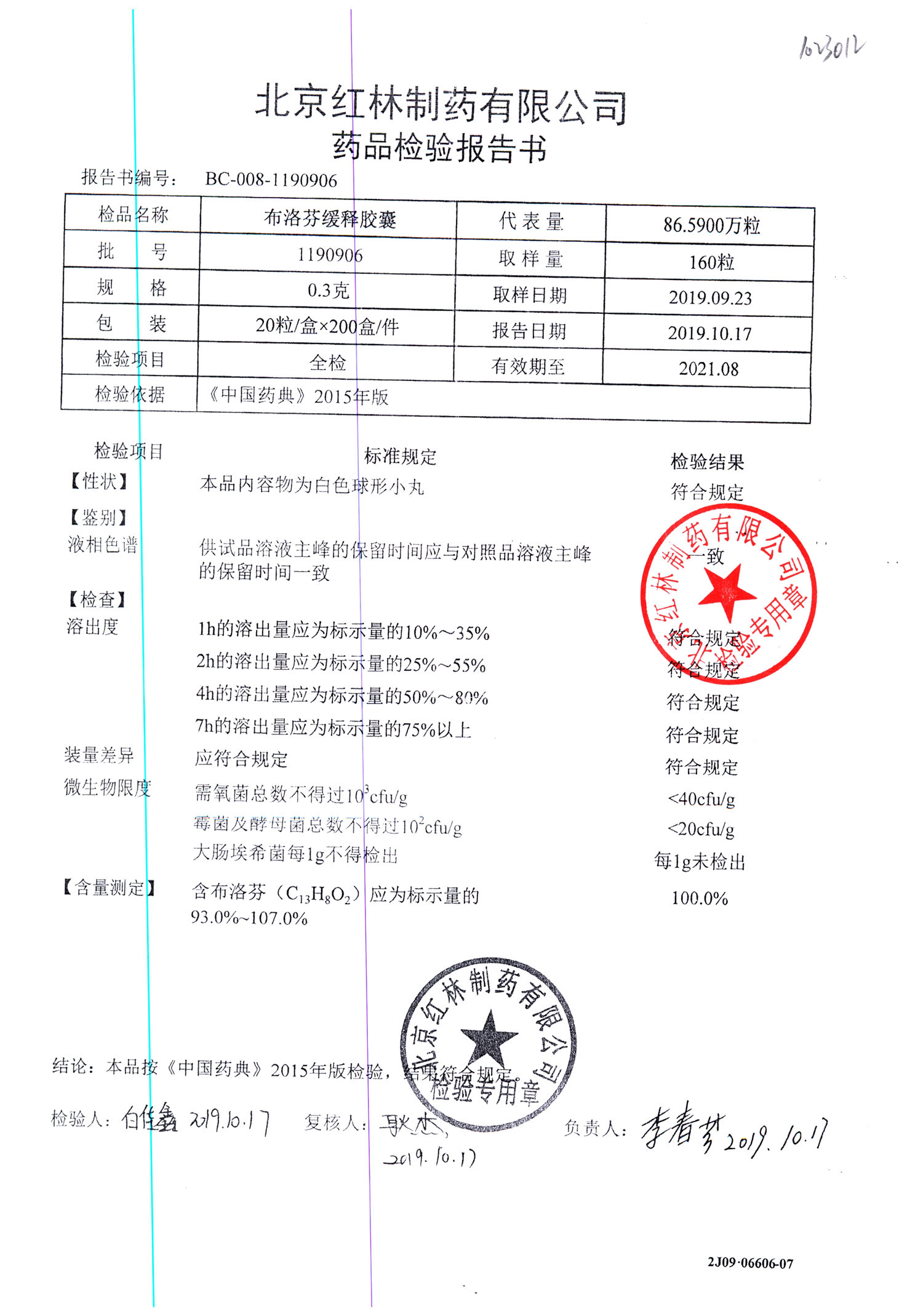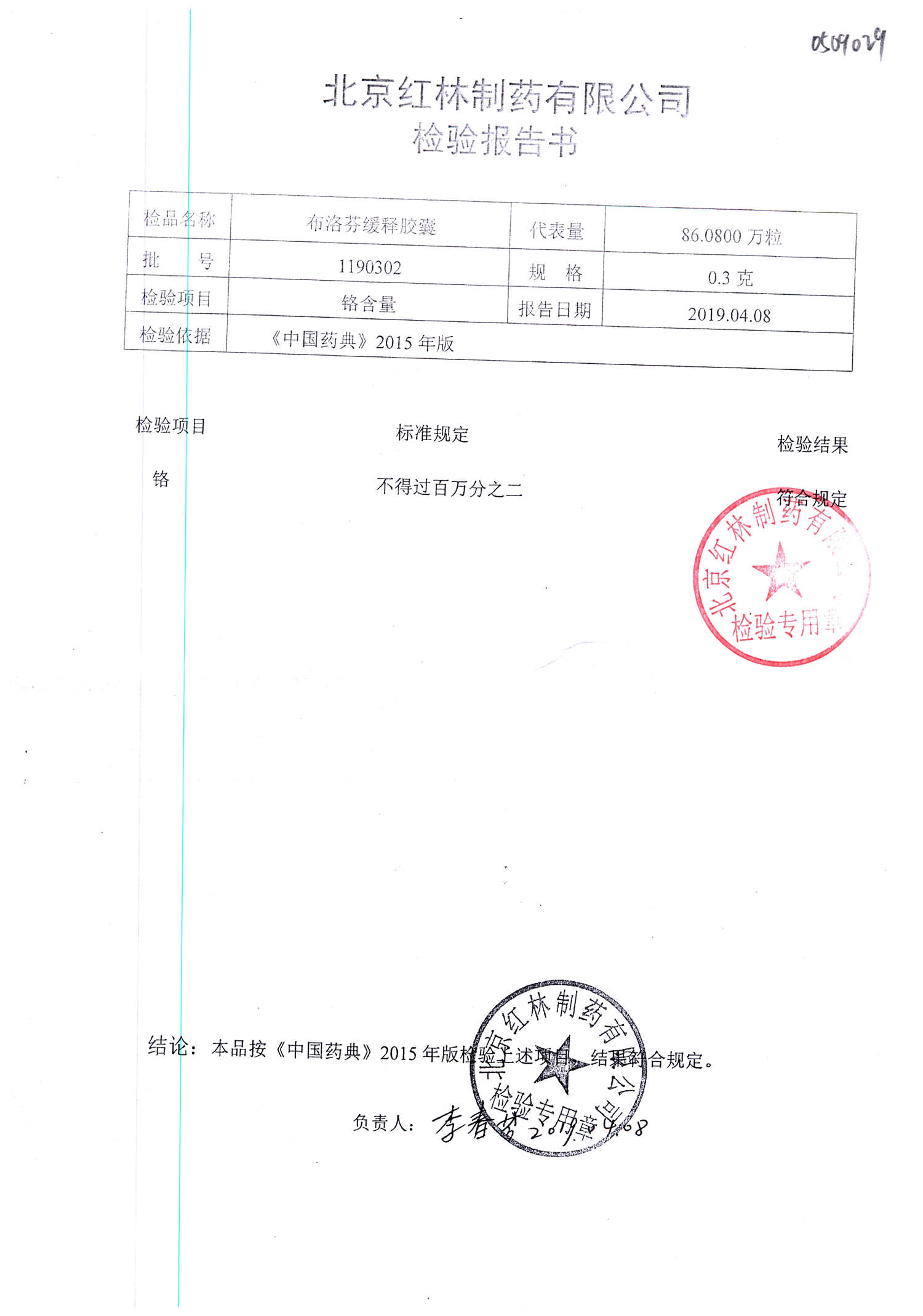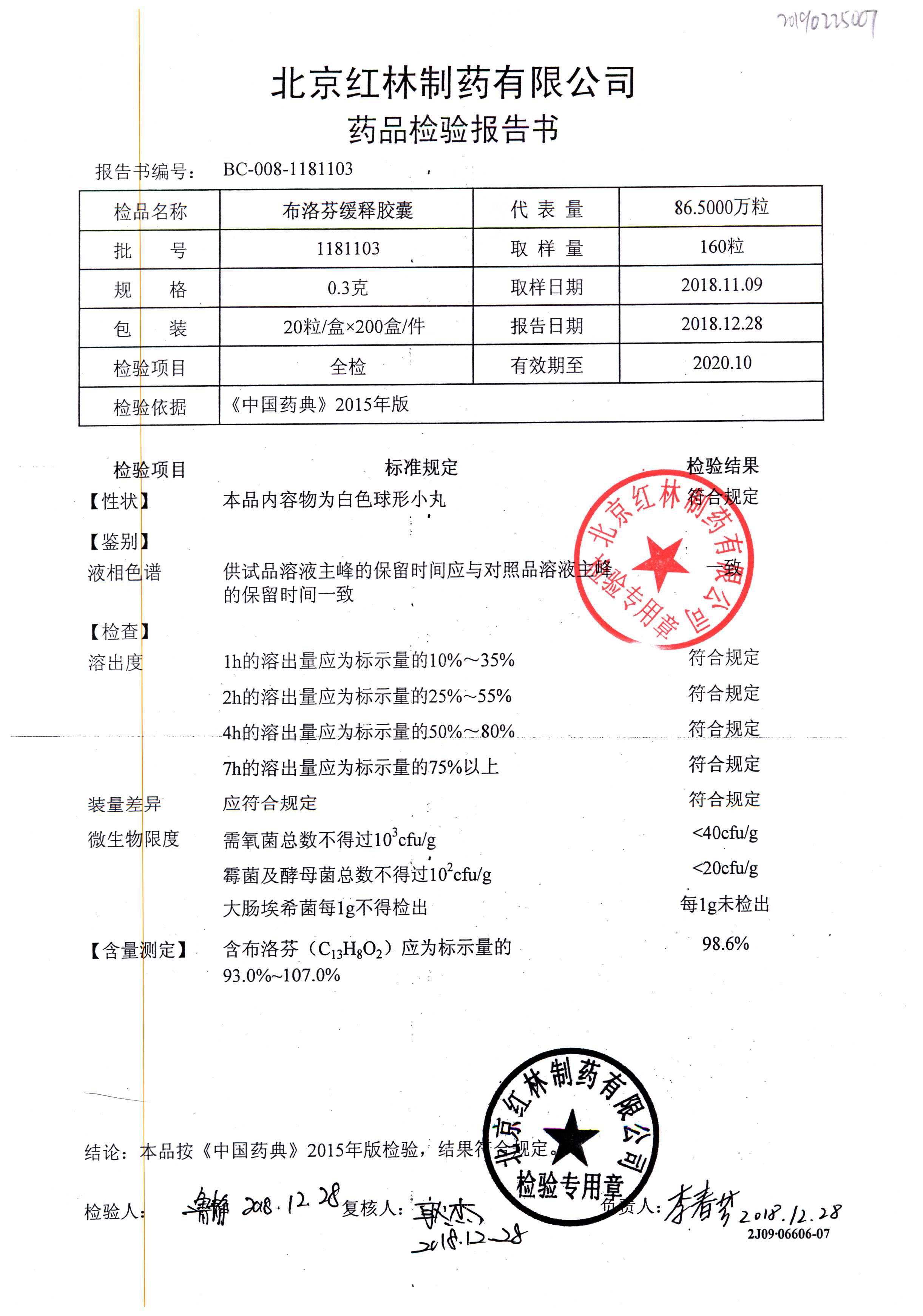| 布洛芬緩釋膠囊 | 0.3g*20粒 | 1180603(2/2) | 查看詳情 |
