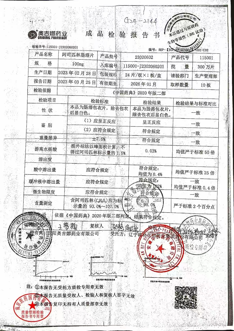 | 阿司匹林腸溶片 | 100mg*24s | 23010102 | 查看詳情 |