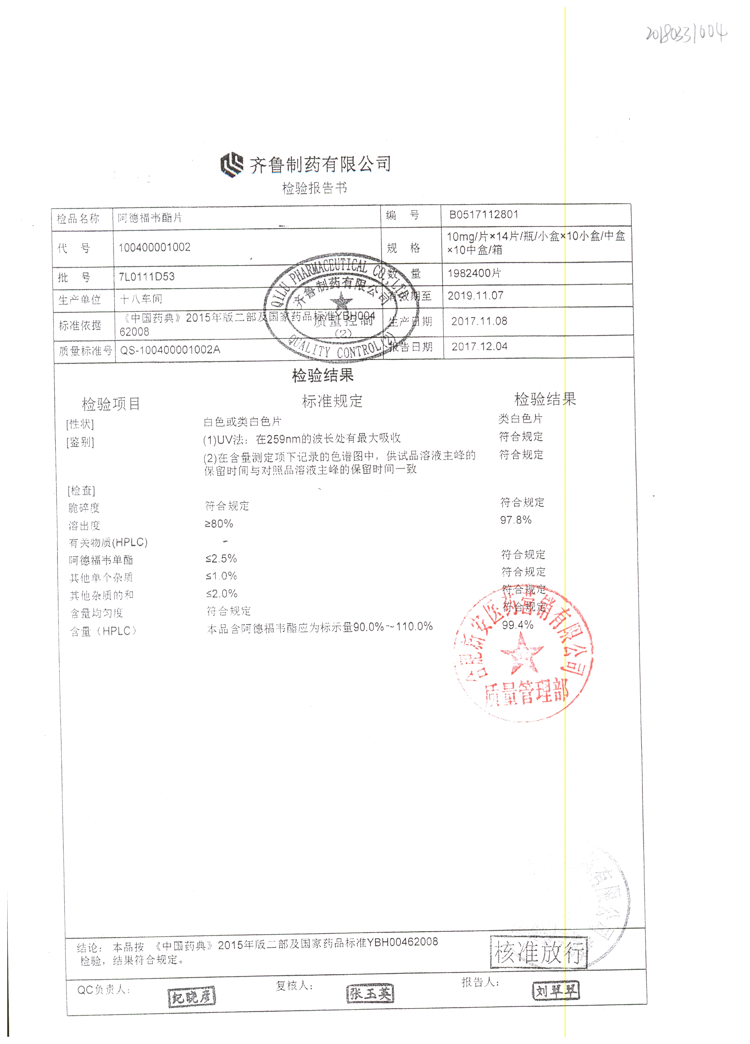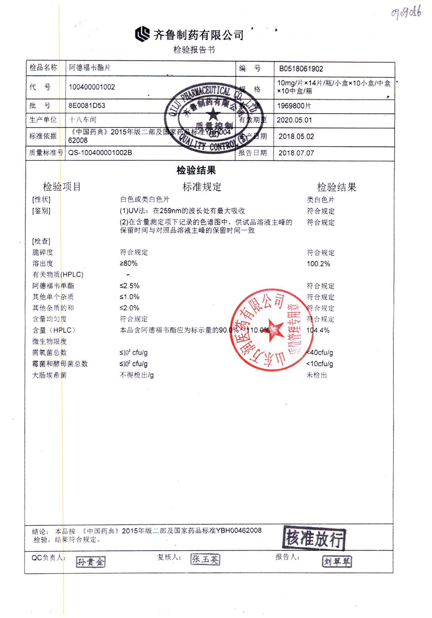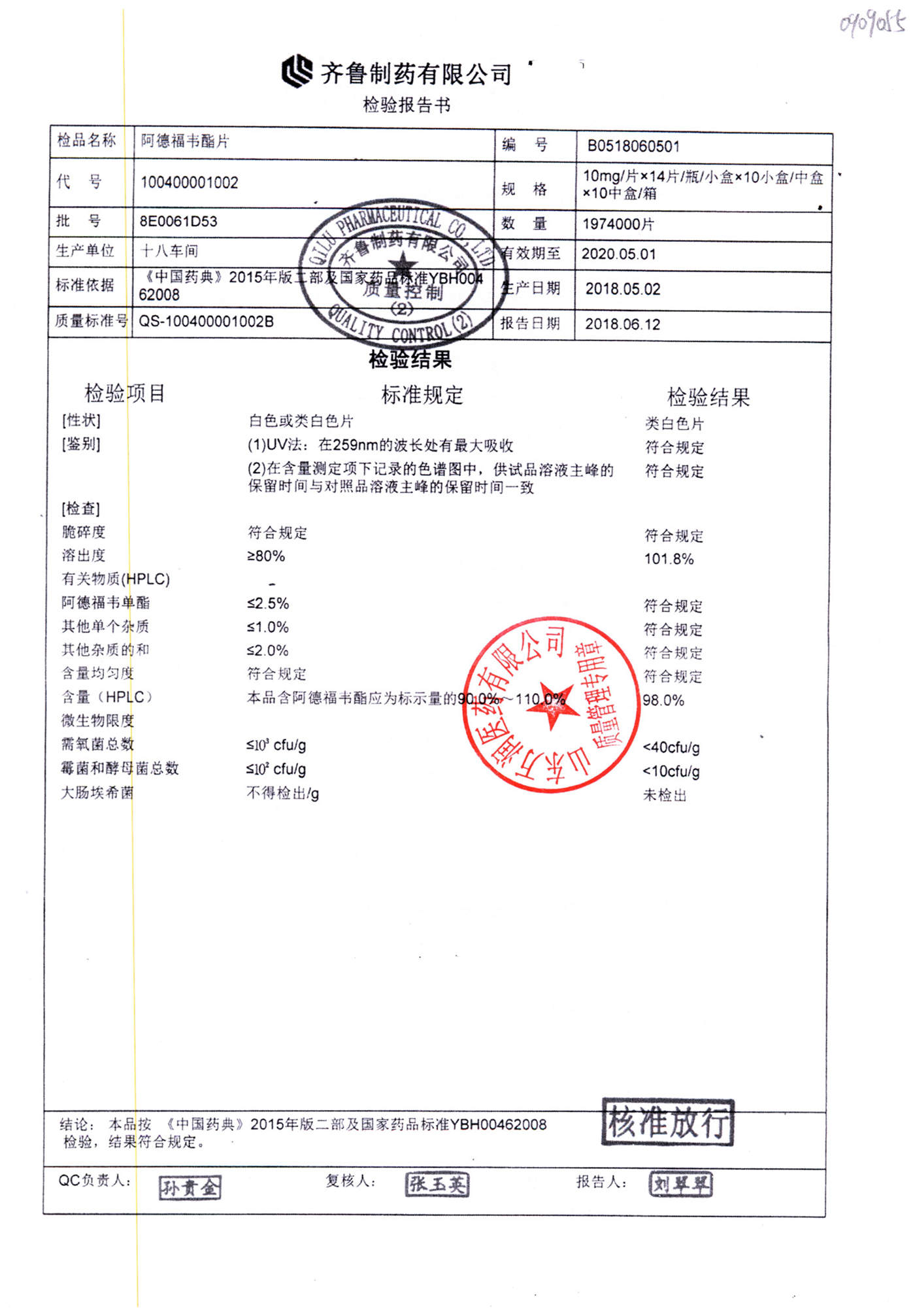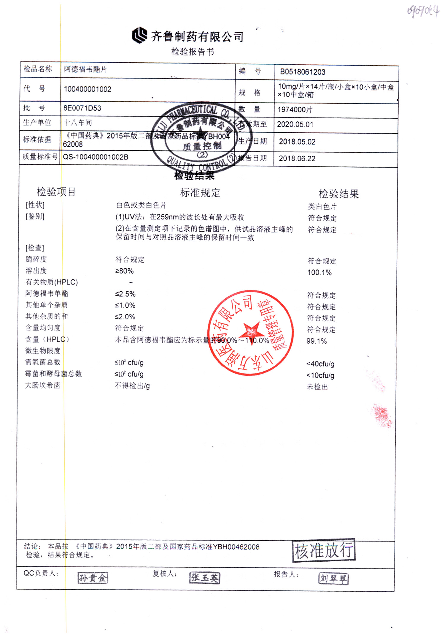 | 名稱 | 規(guī)格 | 批號 | 藥檢報告 |