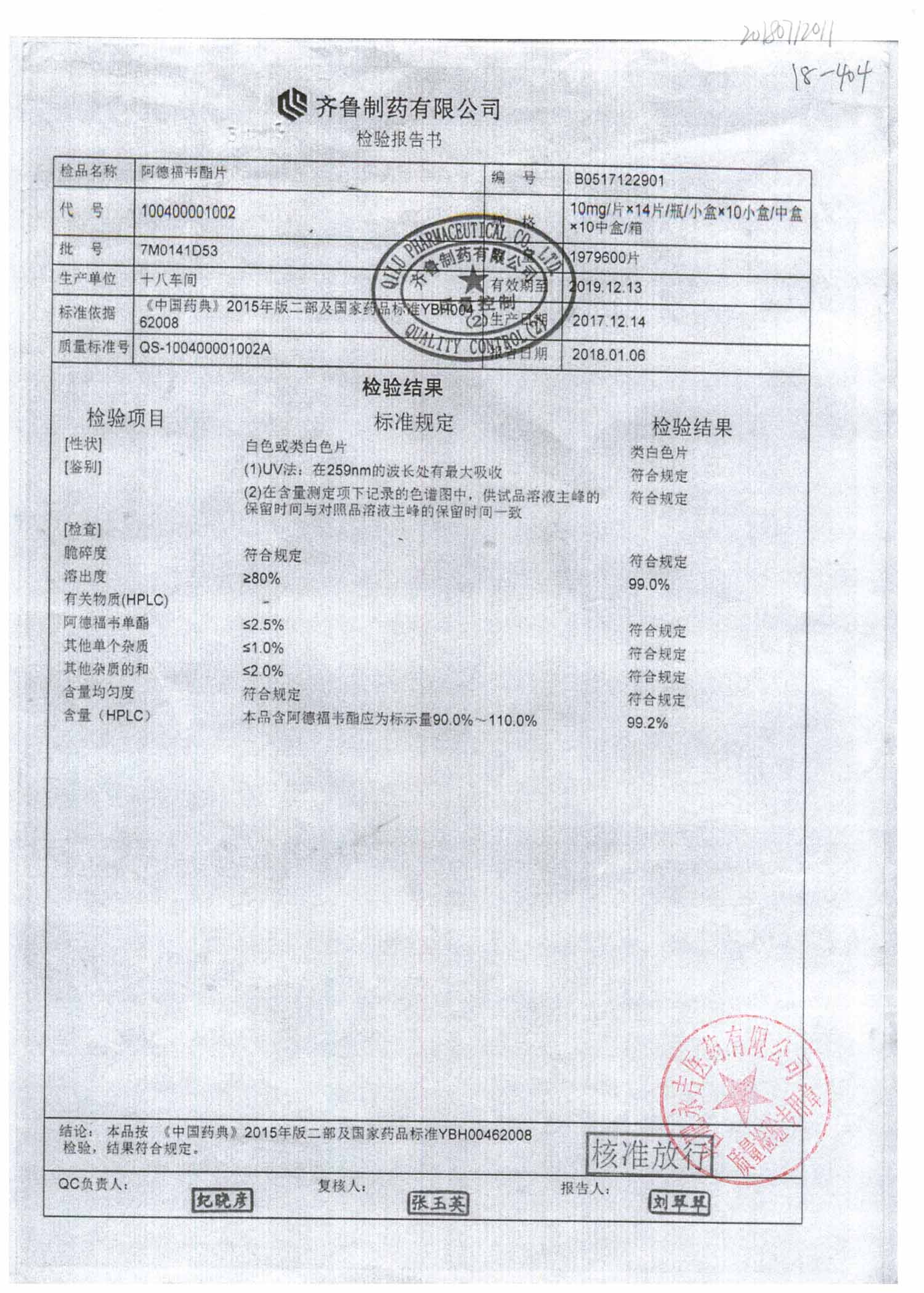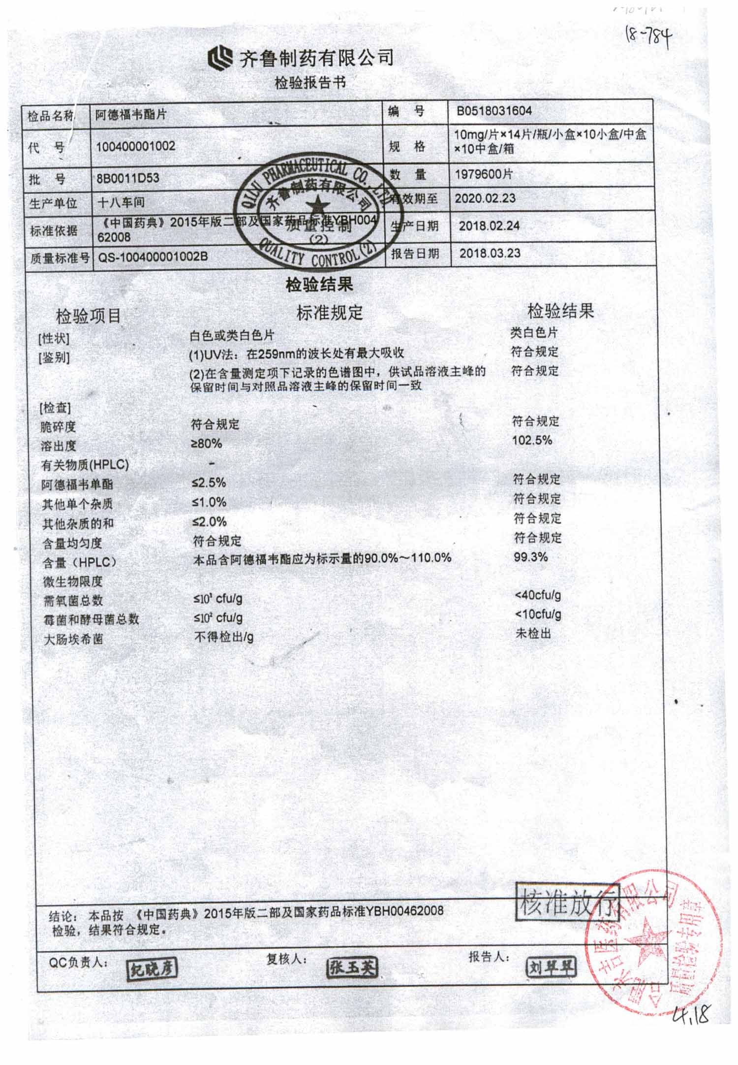 | 阿德福韋酯片 | 10mg*14s | 7L0111D53 | 查看詳情 |