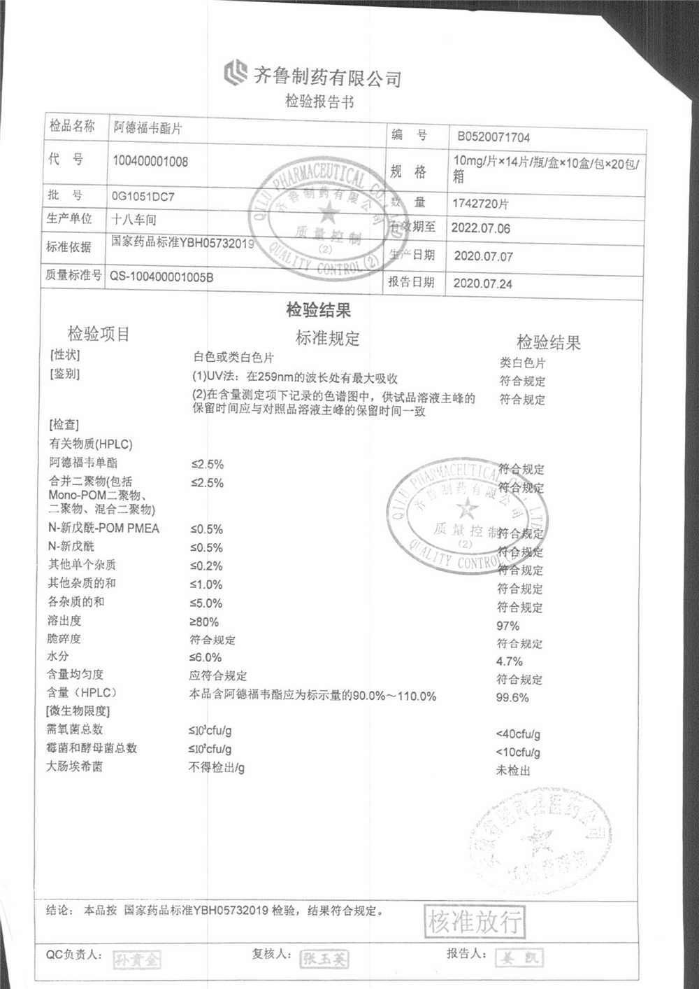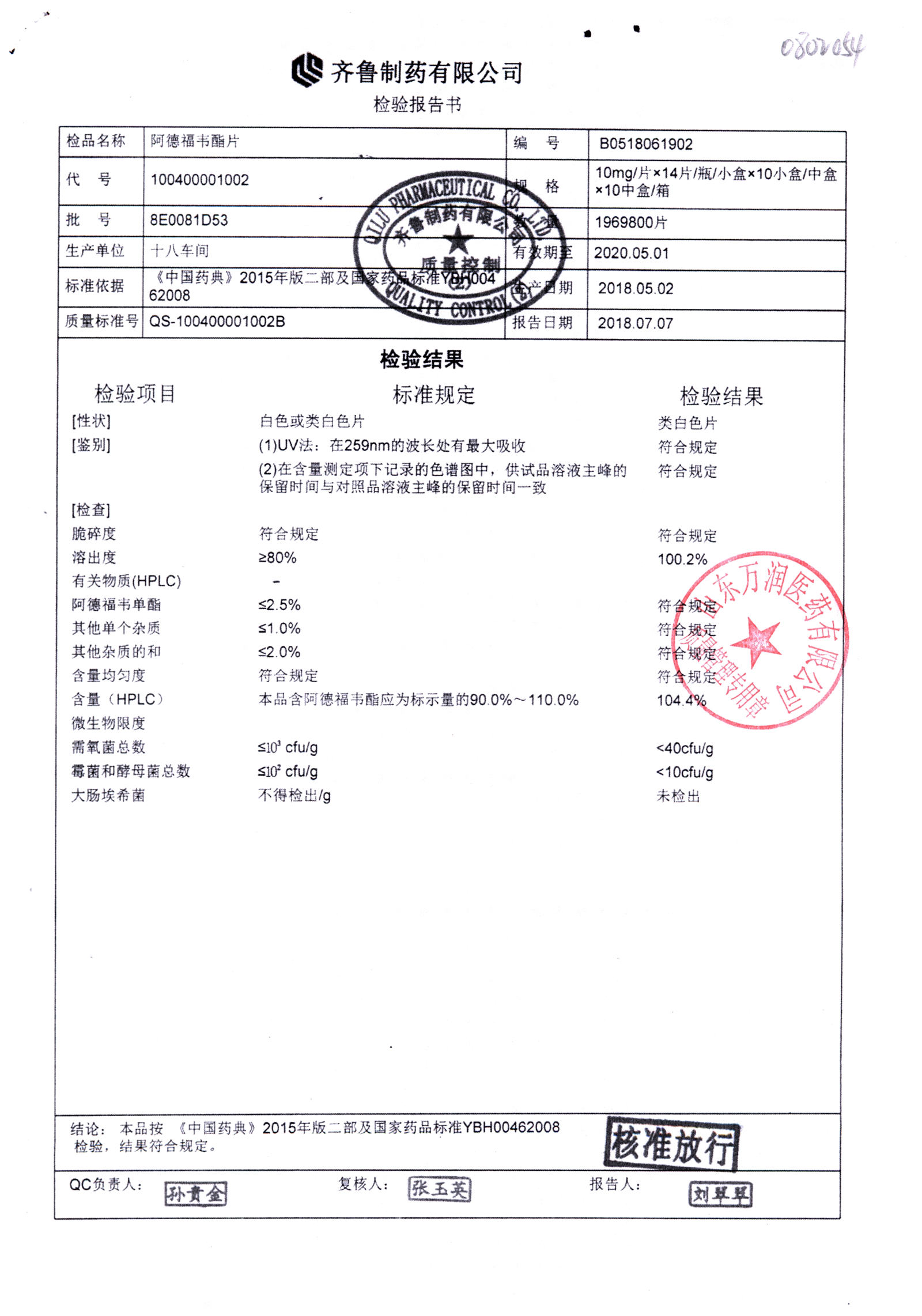| 阿德福韋酯片 | 10mg*14s | 0G1051DC7 | 查看詳情 |