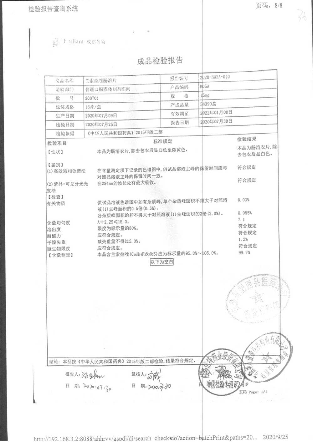 | 名稱 | 規(guī)格 | 批號 | 藥檢報告 |