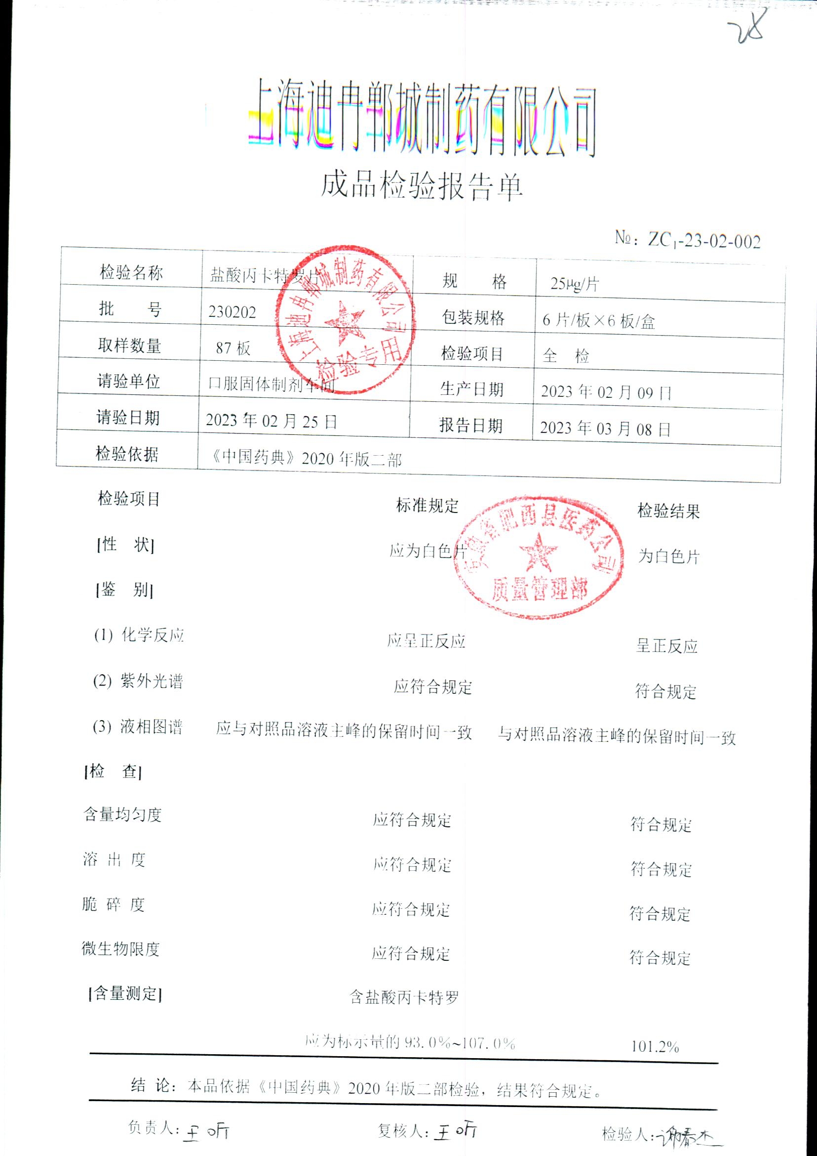 | 鹽酸丙卡特羅片 | 25mg*6s | 210902 | 查看詳情 |