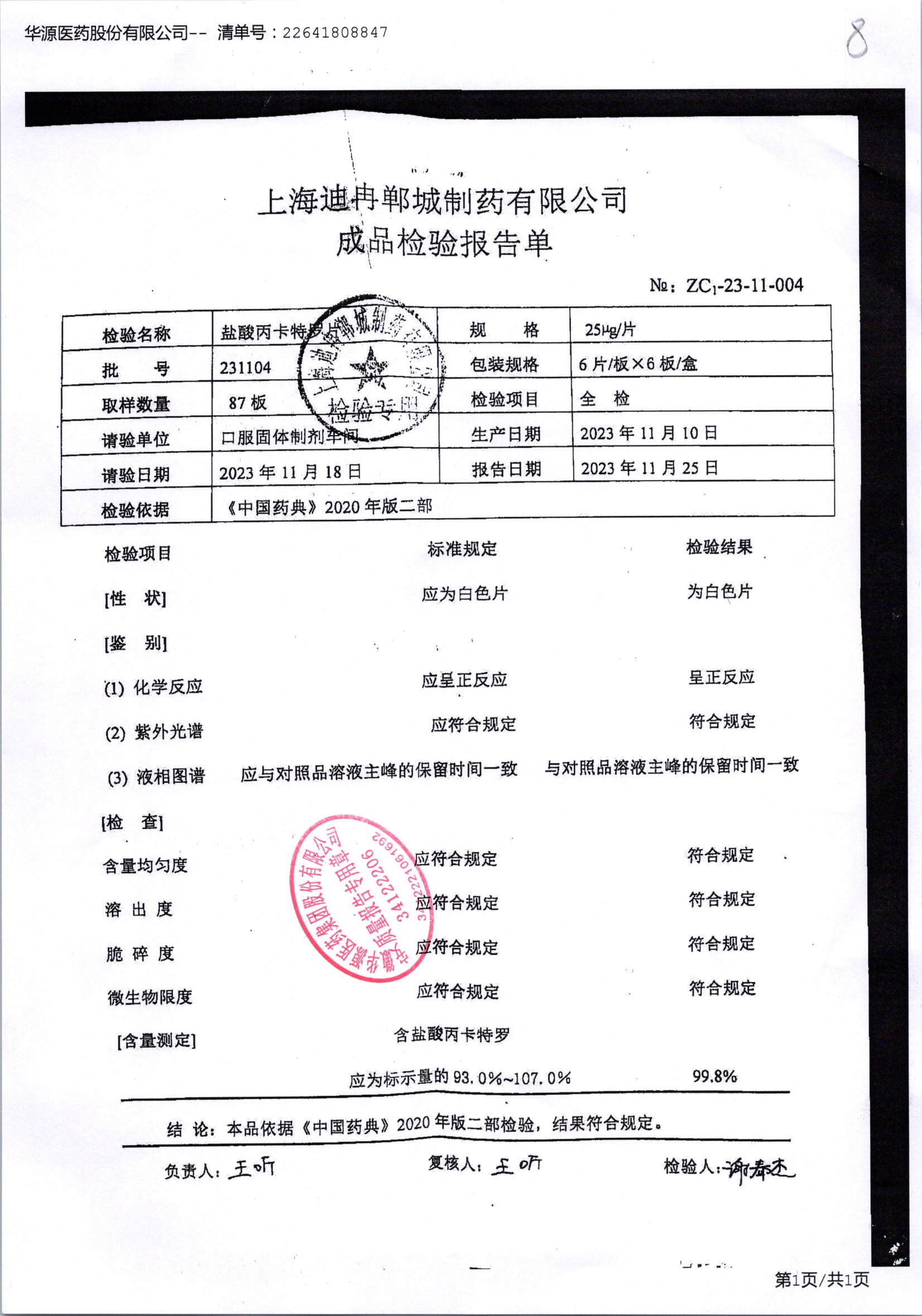 | 鹽酸丙卡特羅片 | 25mg*6s | 220901 | 查看詳情 |