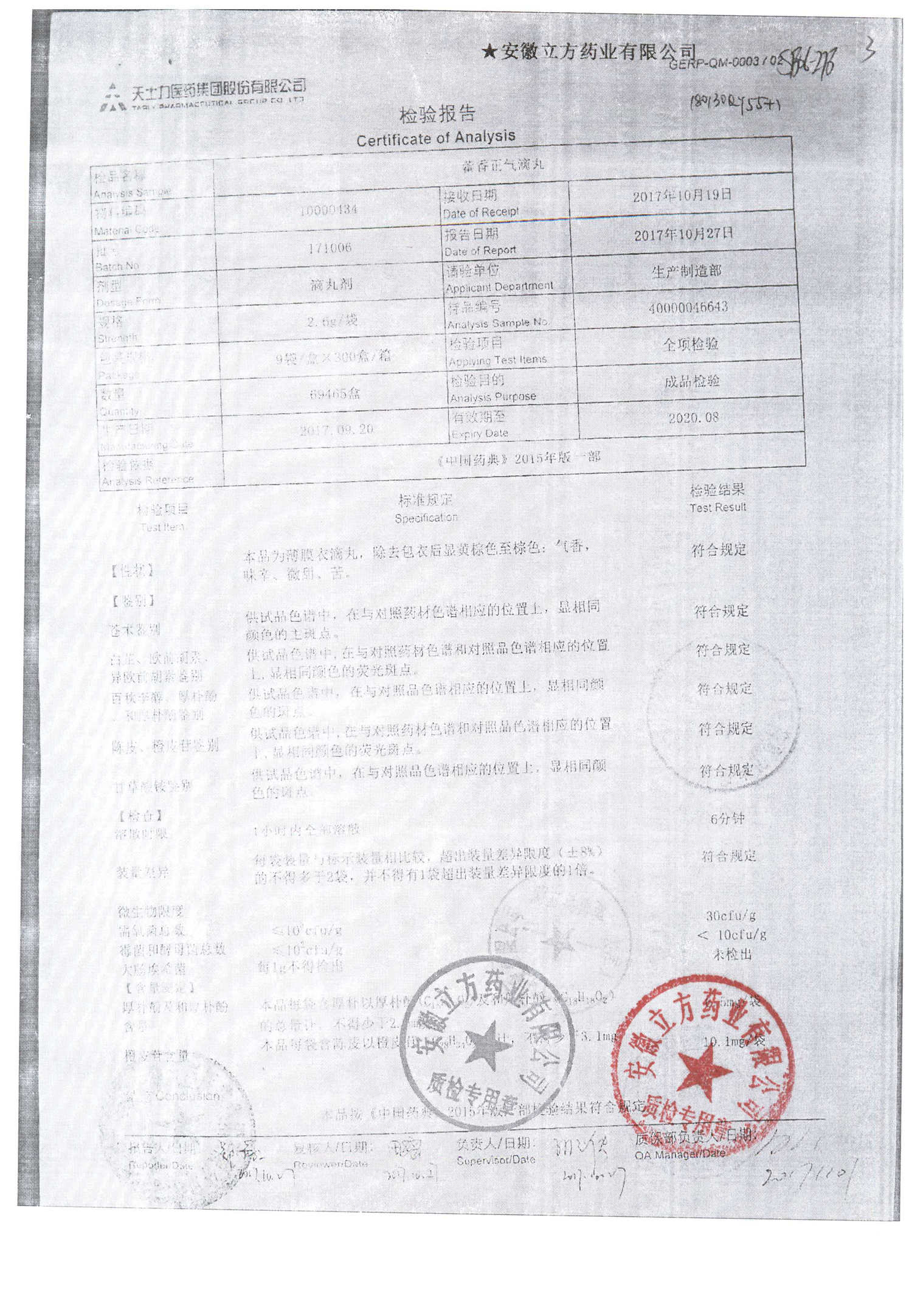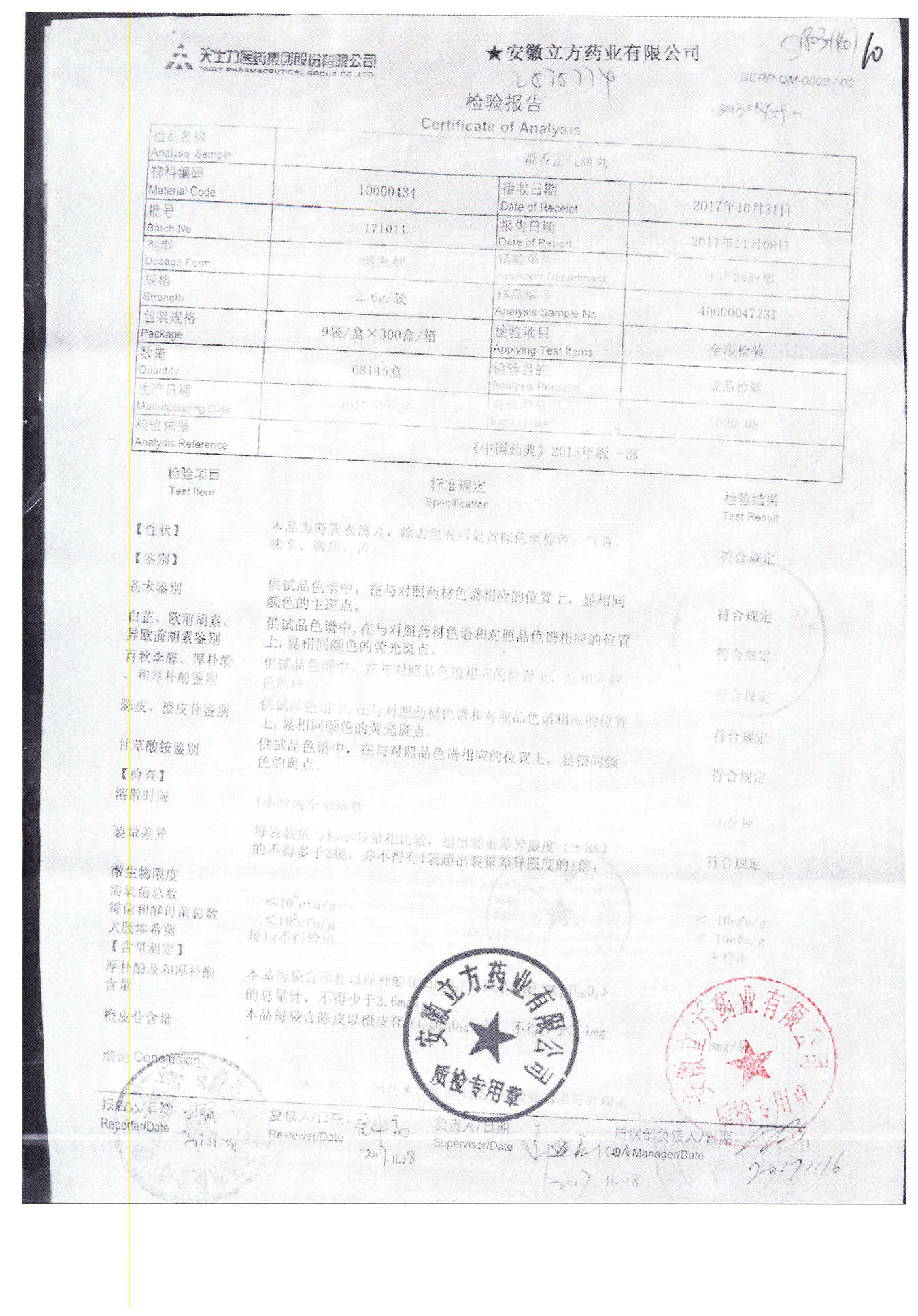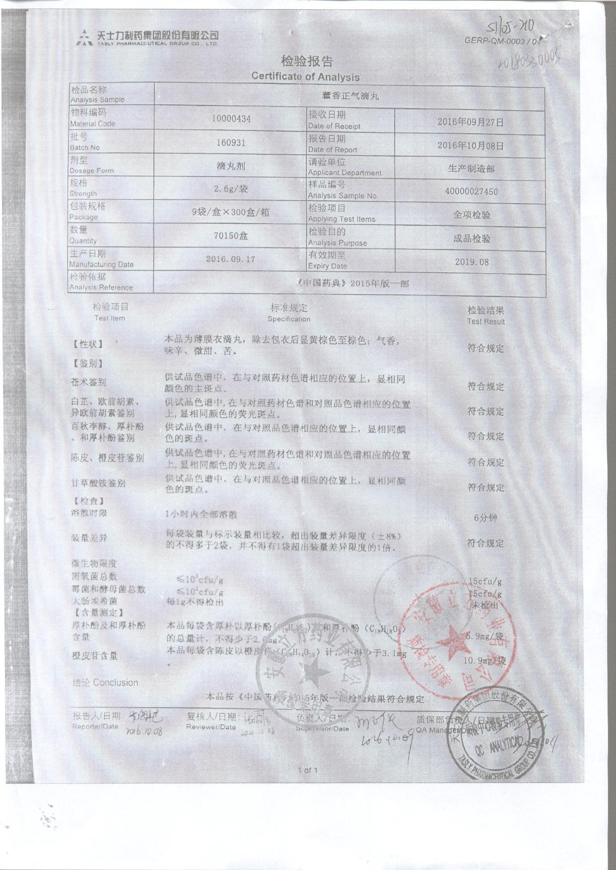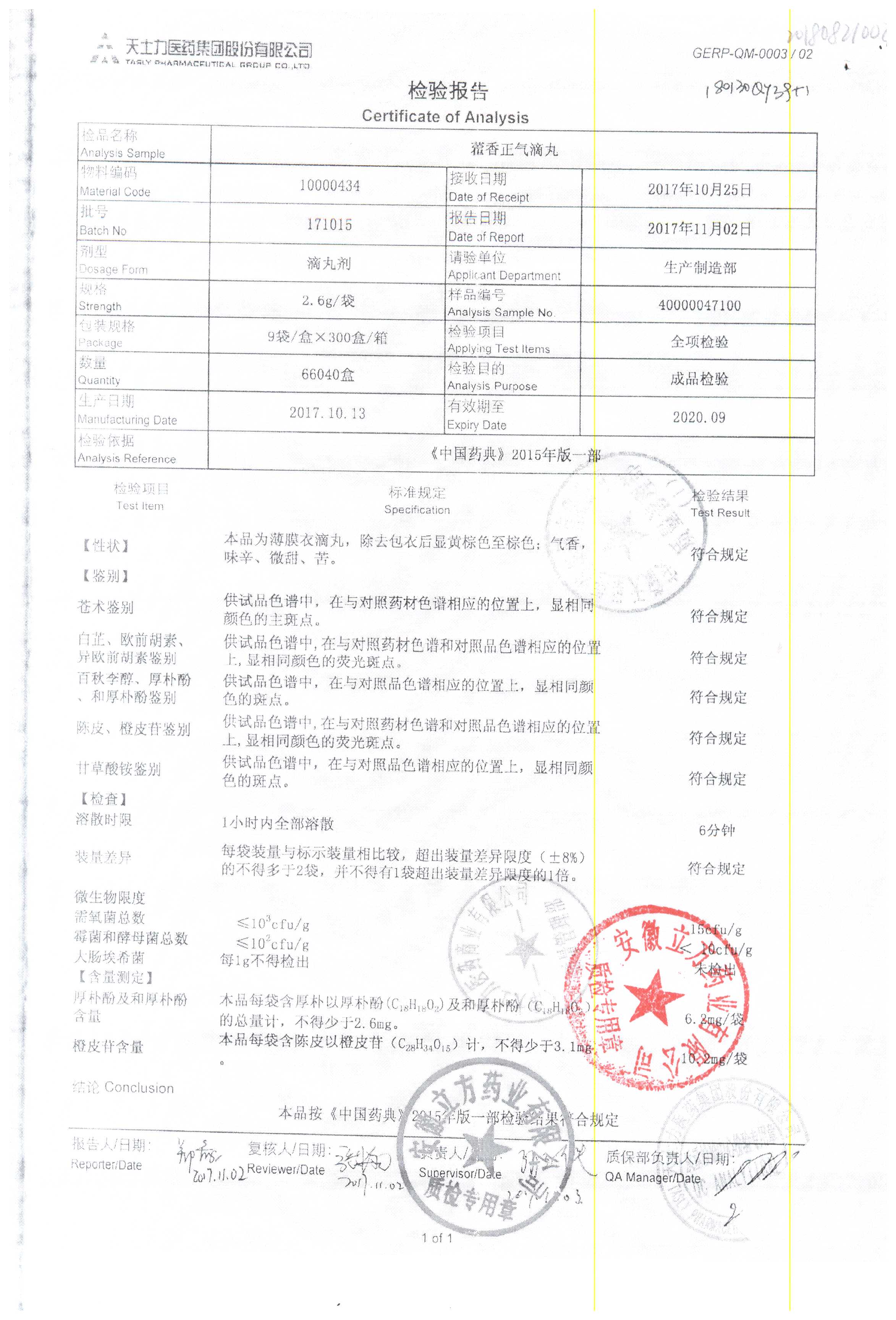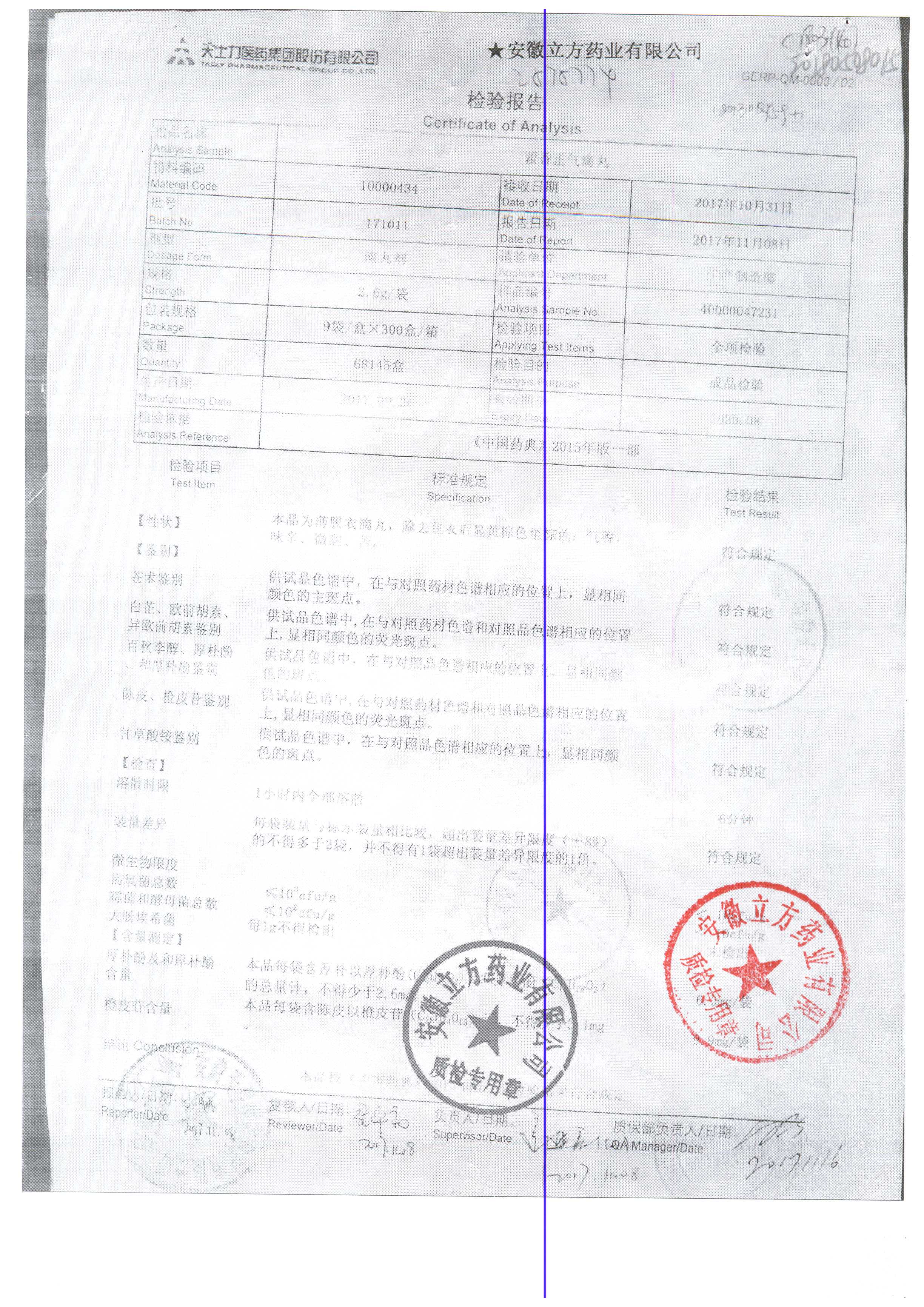 | 名稱 | 規(guī)格 | 批號 | 藥檢報告 |