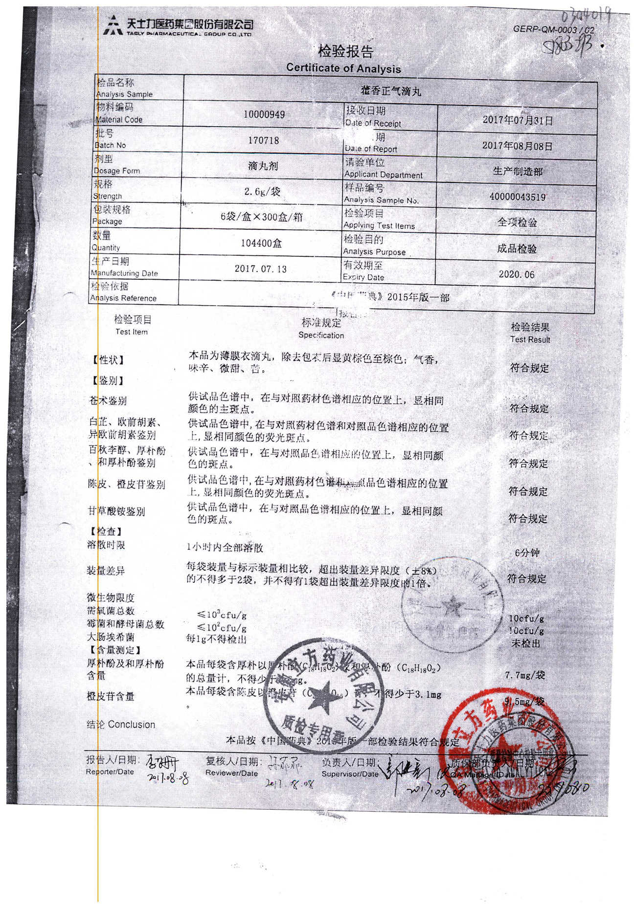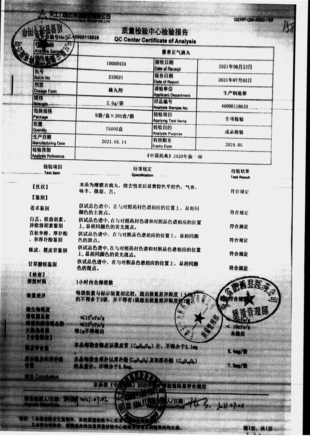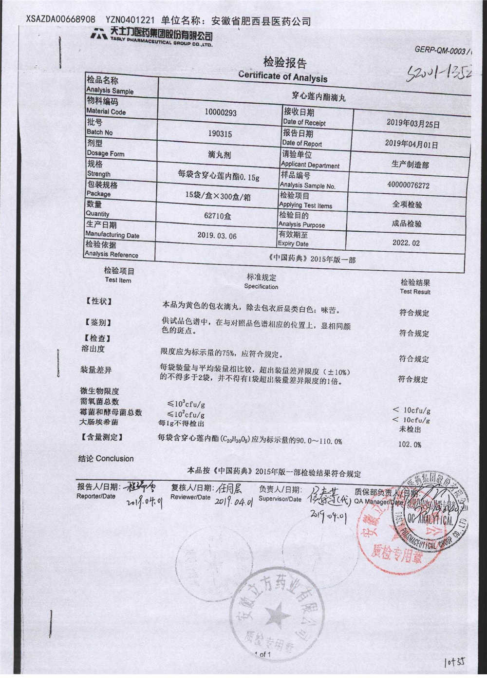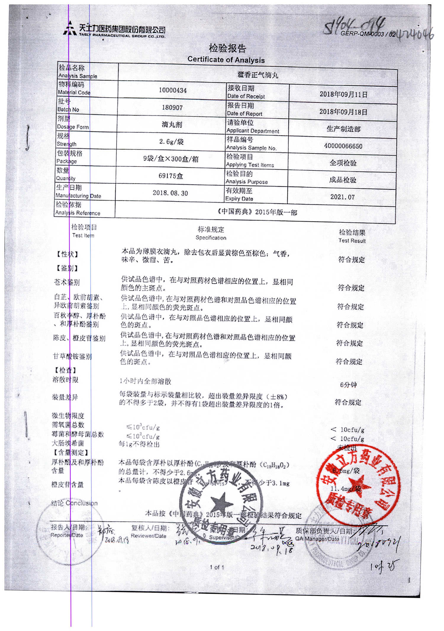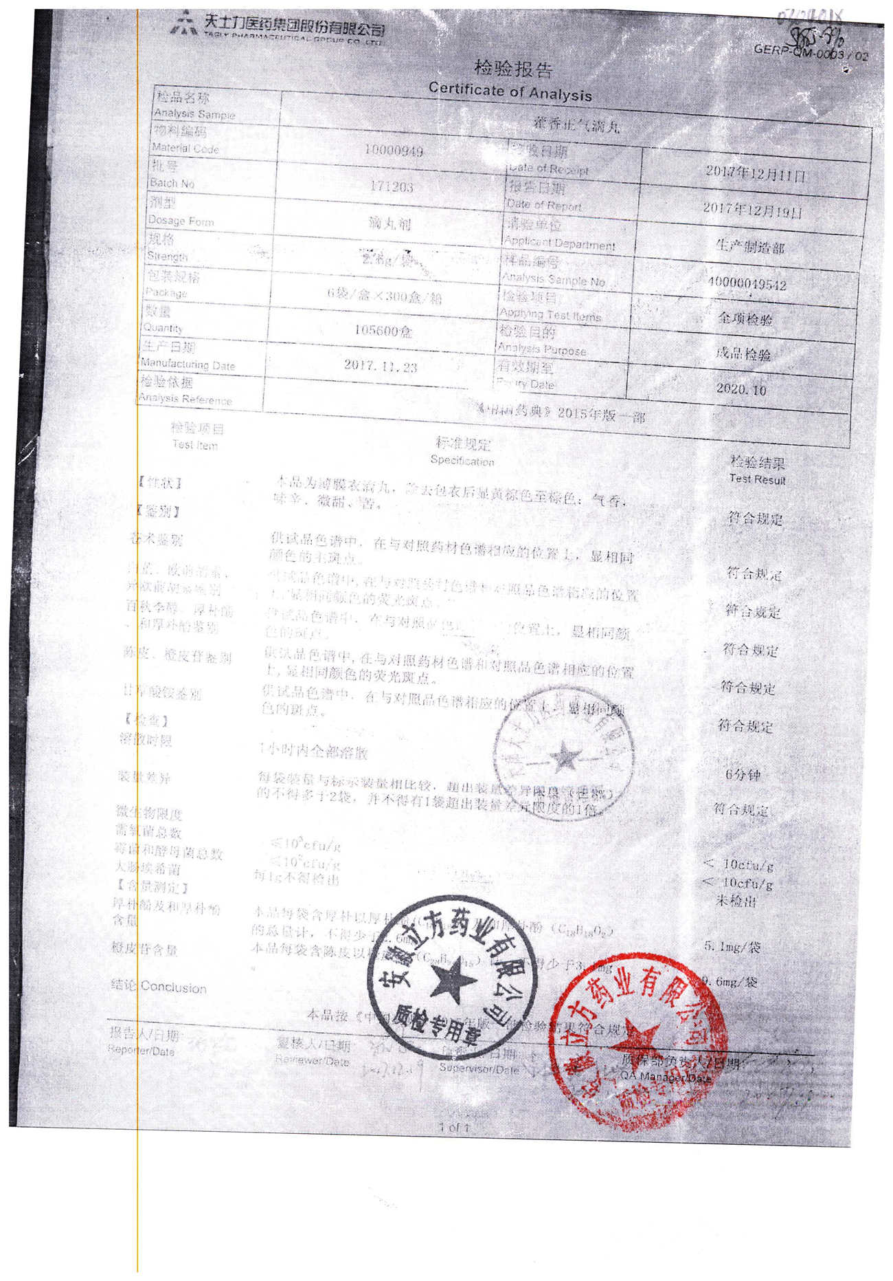 | 名稱 | 規(guī)格 | 批號 | 藥檢報告 |