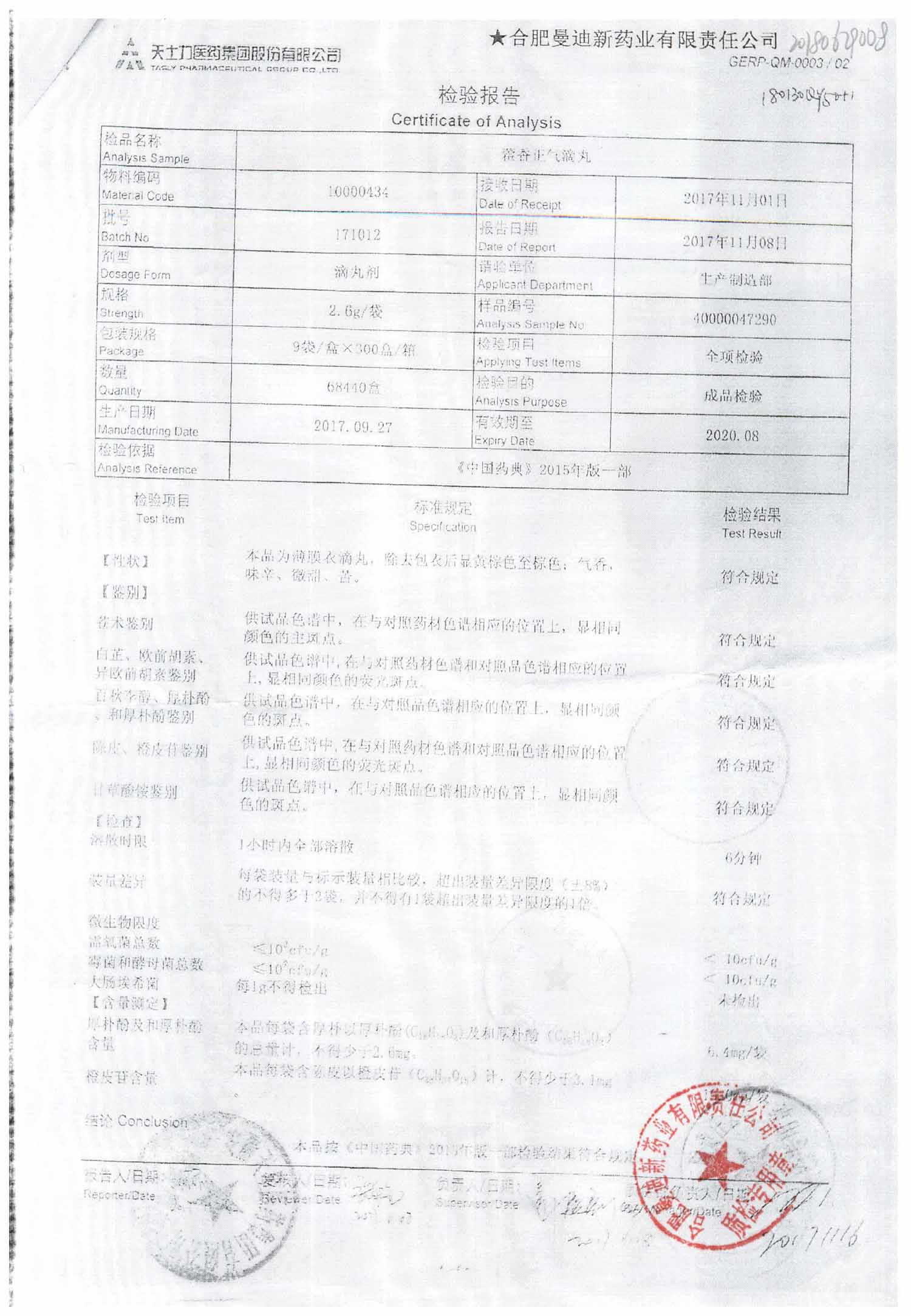 | 藿香正氣滴丸 | 2.6g*9袋 | 180907 | 查看詳情 |