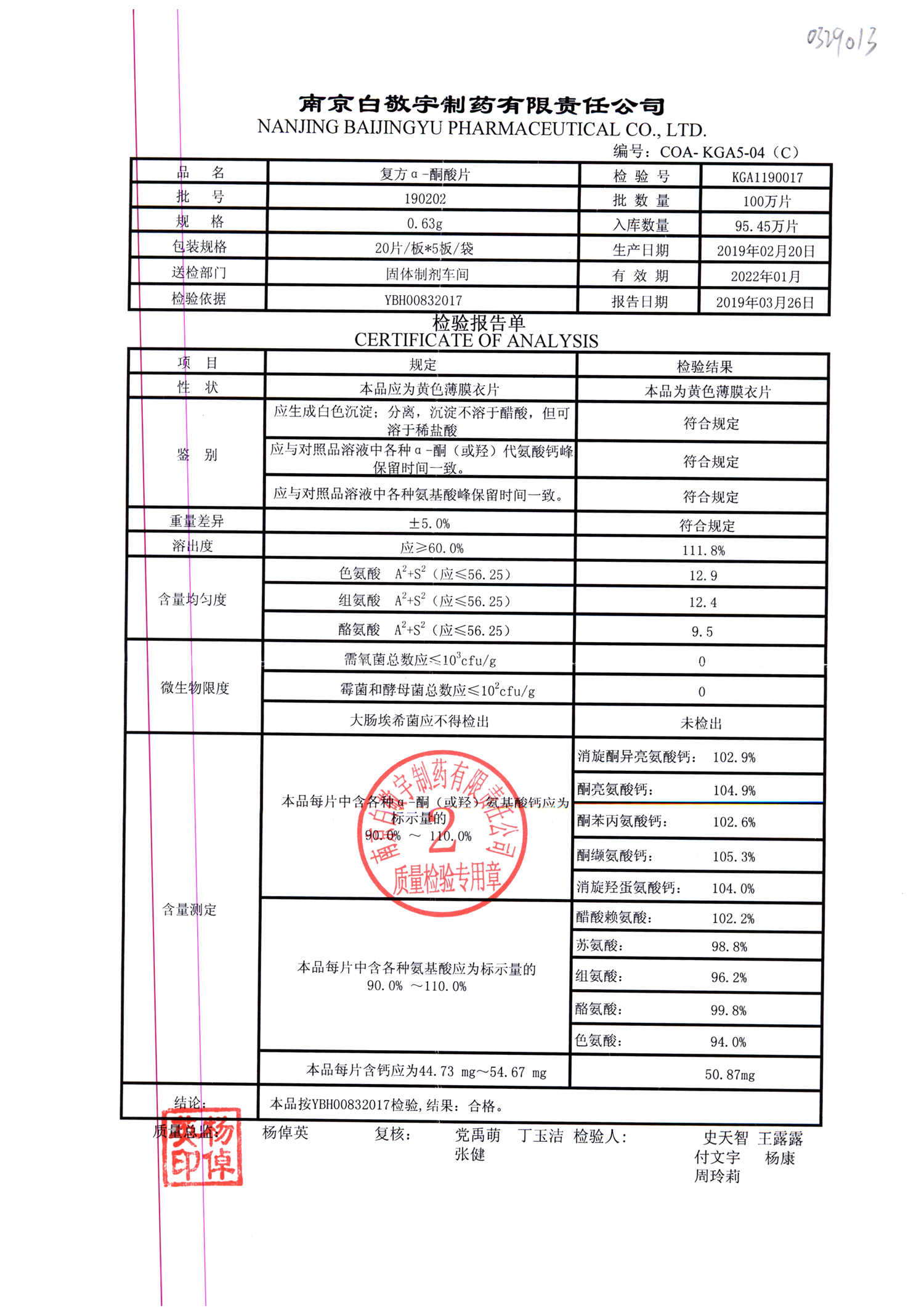 | 復(fù)方a-酮酸片 | 0.63g*20s*5板 | 190202 | 查看詳情 |