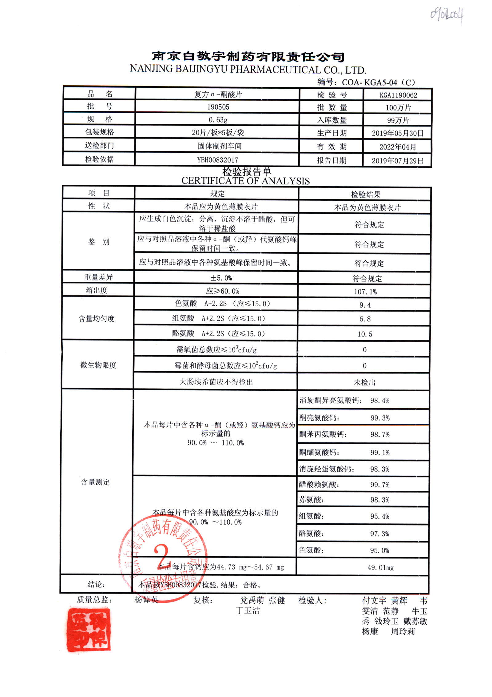 | 復(fù)方a-酮酸片 | 0.63g*20s*5板 | 190505 | 查看詳情 |