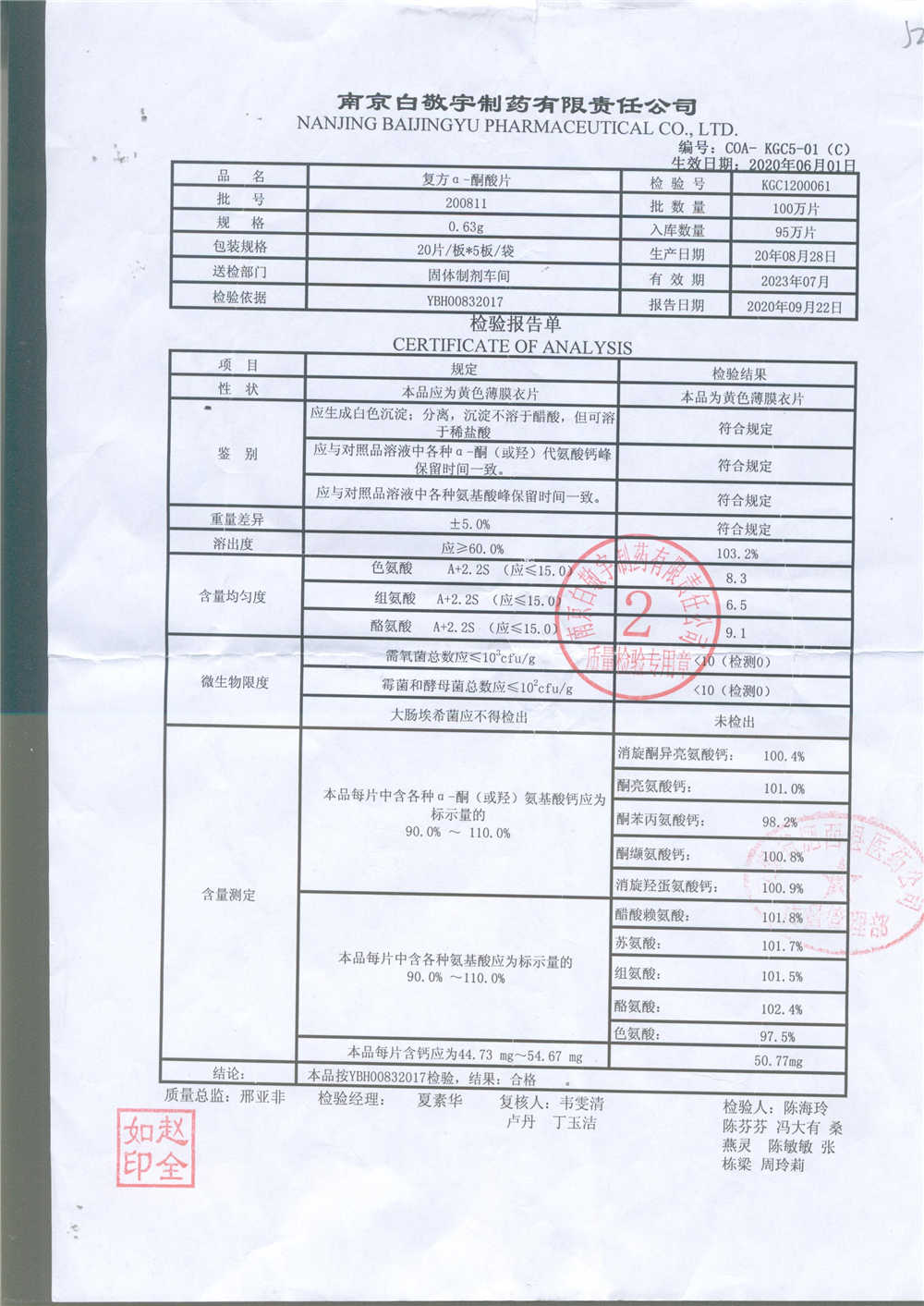 | 復(fù)方a-酮酸片 | 0.63g*20s*5板 | 200811 | 查看詳情 |