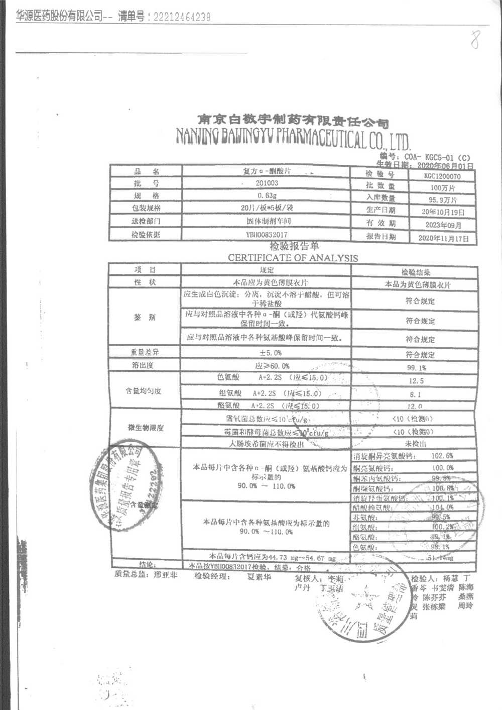 | 復(fù)方a-酮酸片 | 0.63g*20s*5板 | 210314 | 查看詳情 |