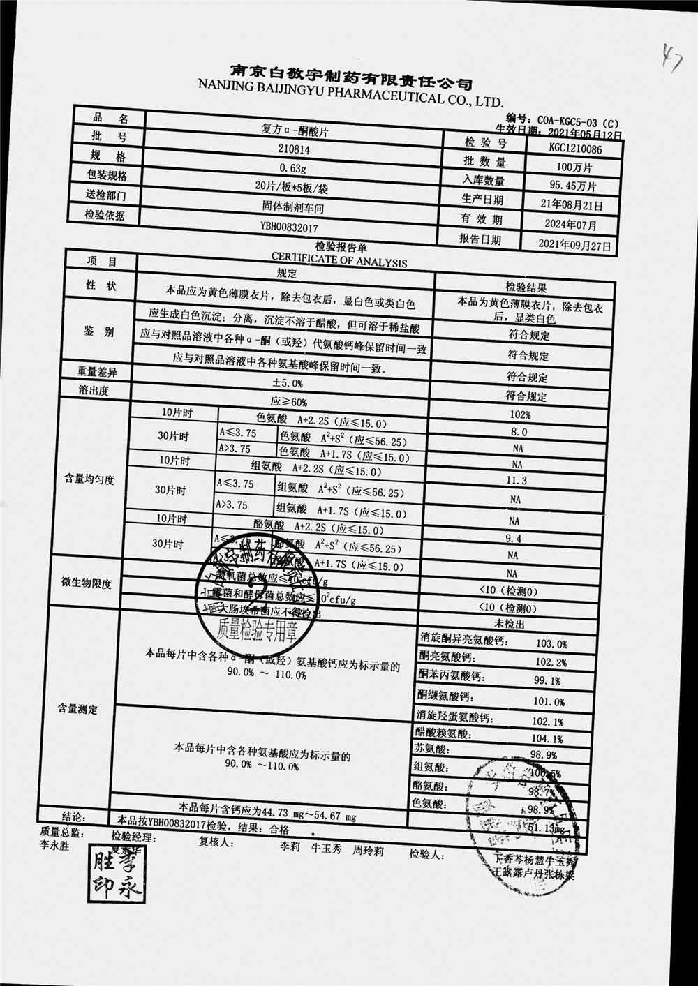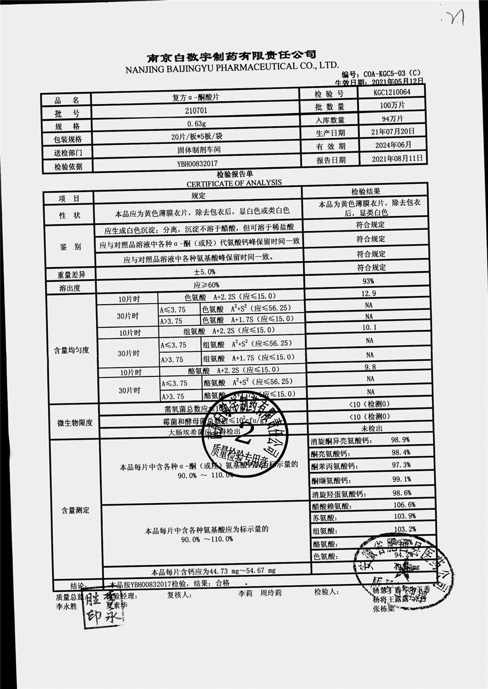 | 復(fù)方a-酮酸片 | 0.63g*20s*5板 | 210801 | 查看詳情 |