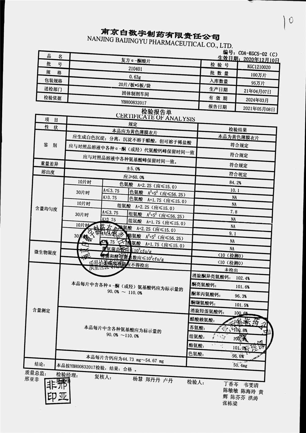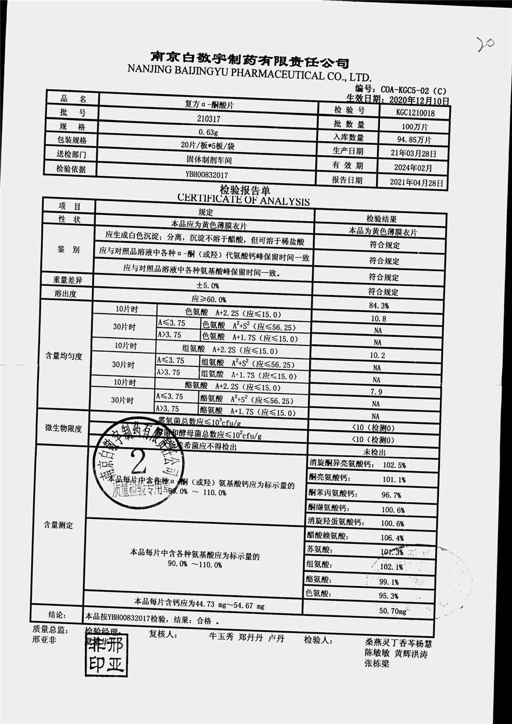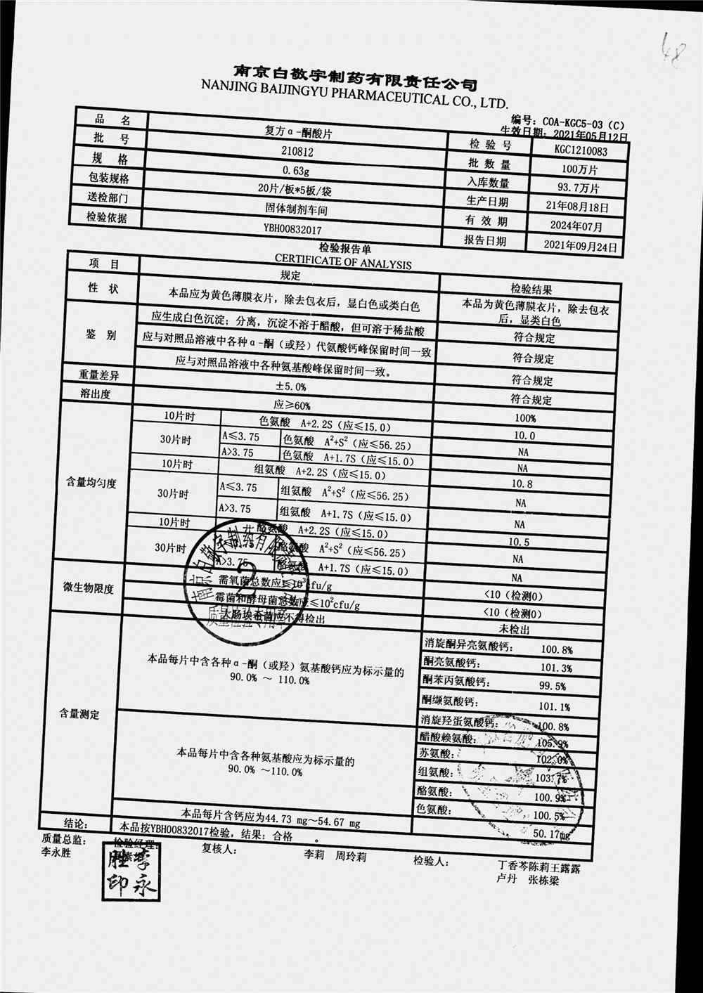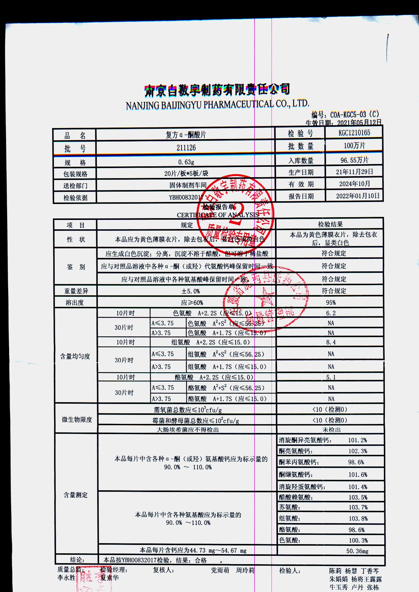 | 復(fù)方a-酮酸片 | 0.63g*20s*5板 | 210408 | 查看詳情 |