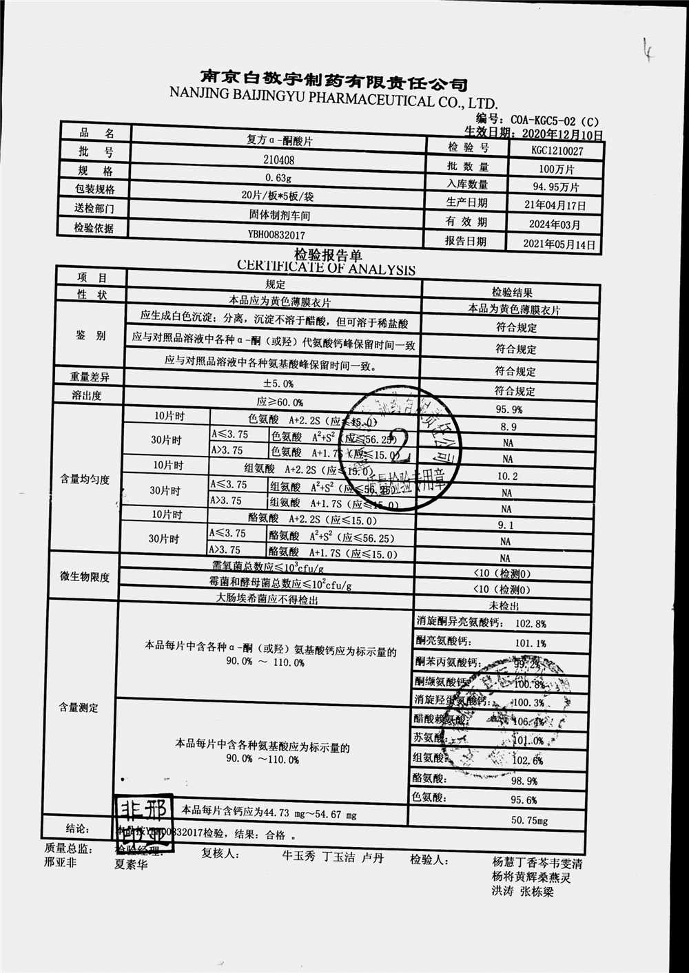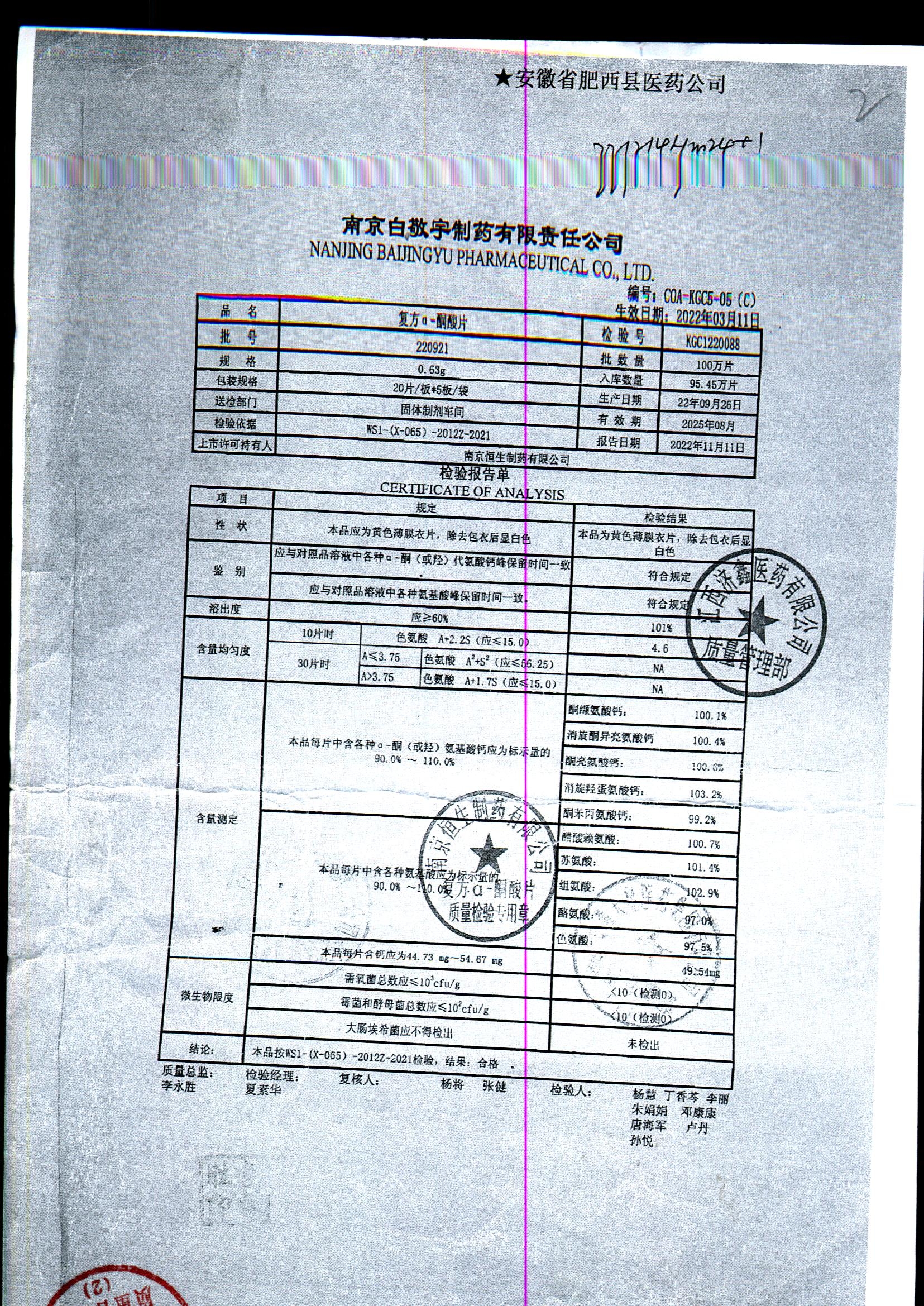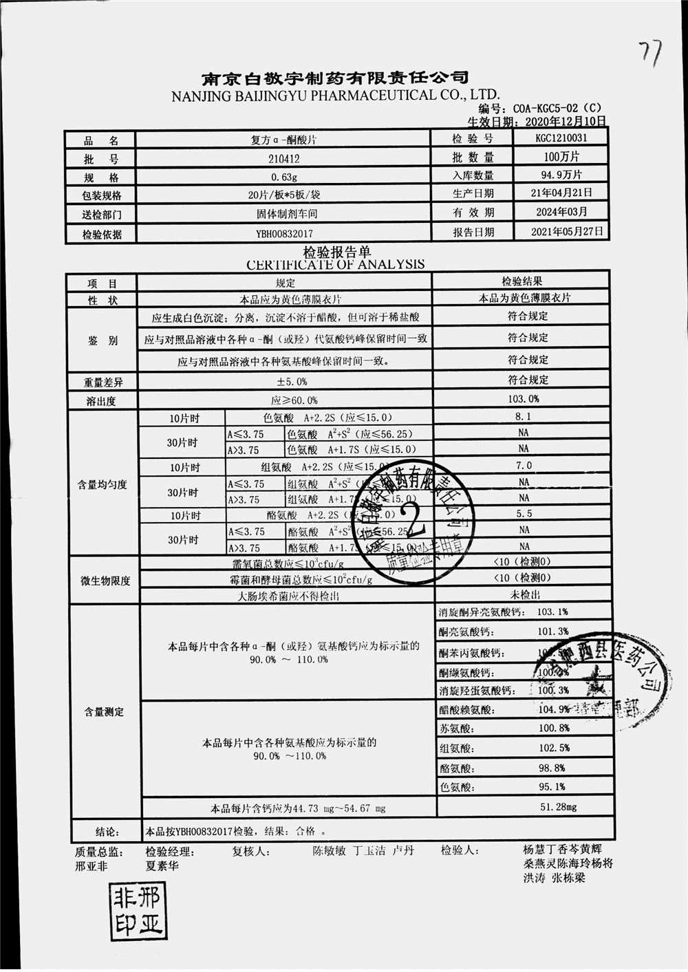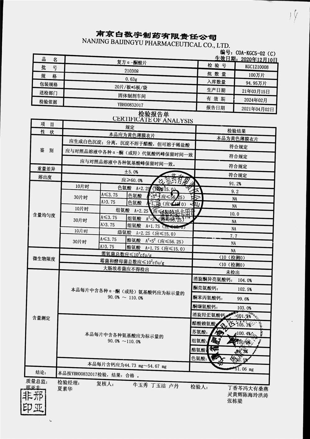 | 復(fù)方a-酮酸片 | 0.63g*20s*5板 | 210408 | 查看詳情 |