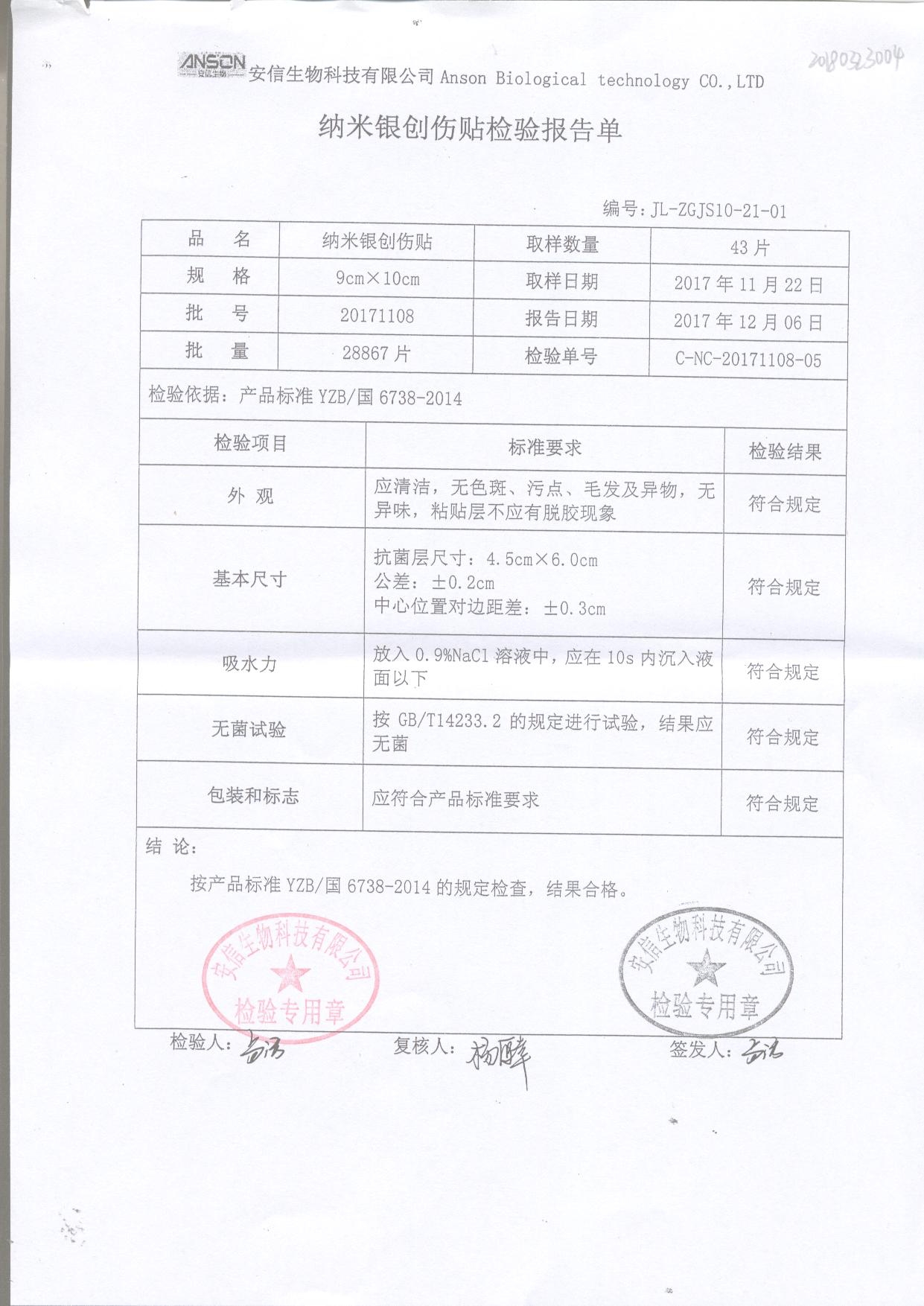 | 納米銀創(chuàng)傷貼 | 9cm*10cm | 20171108 | 查看詳情 |