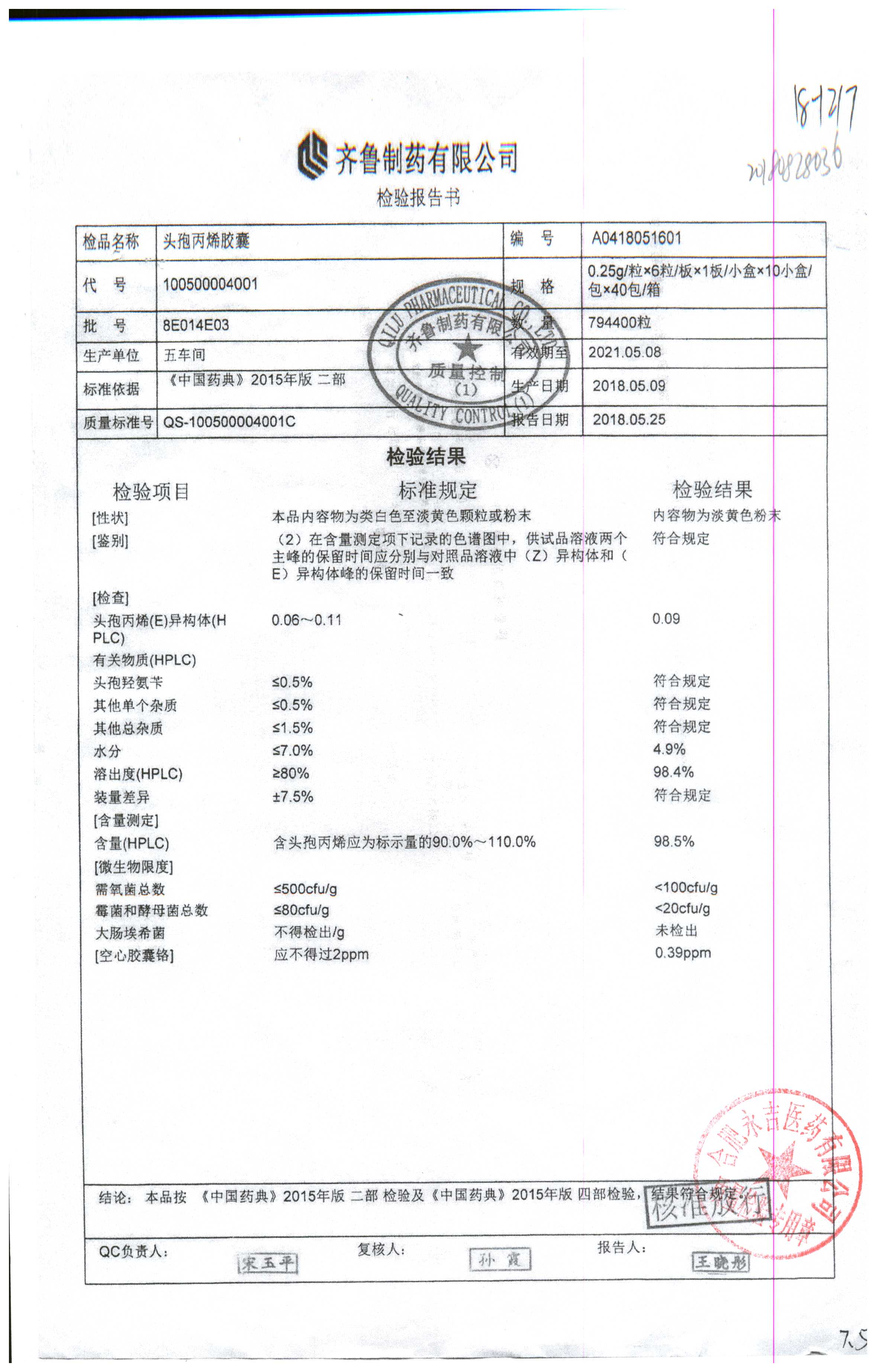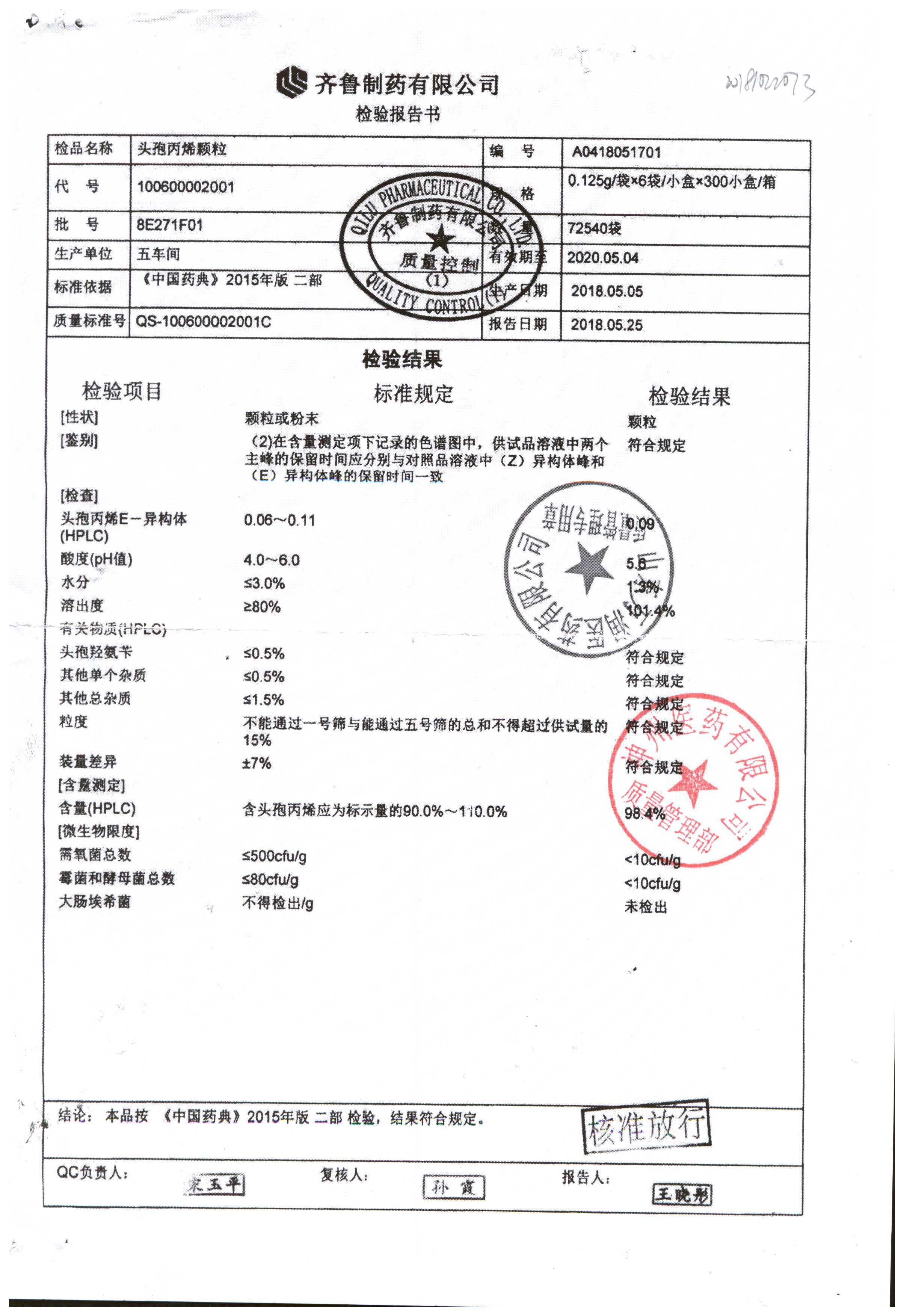 | 頭孢丙烯顆粒 | 0.125g*6袋 | 8E014E03 | 查看詳情 |