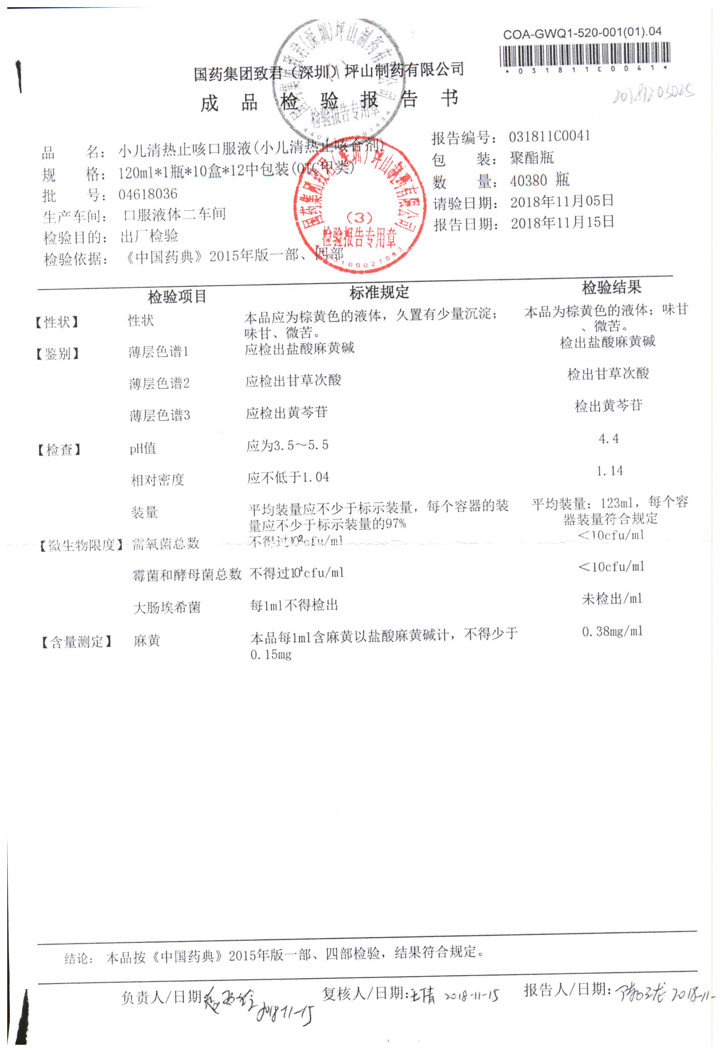 | 小兒清熱止咳口服液 | 120ml | 04618033 | 查看詳情 |