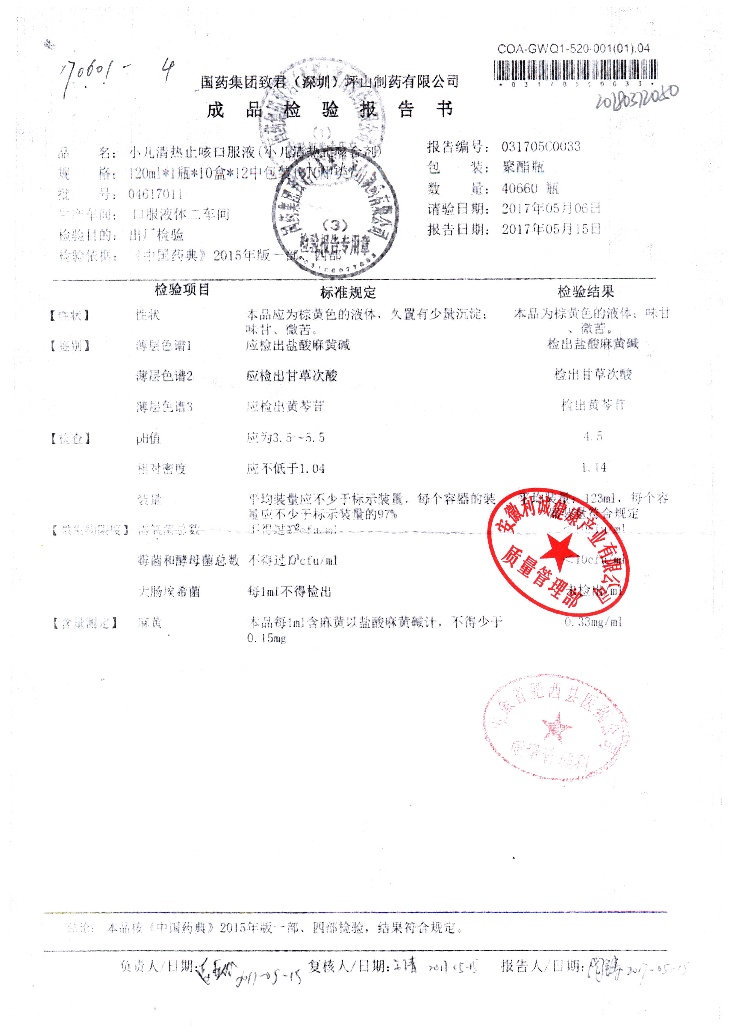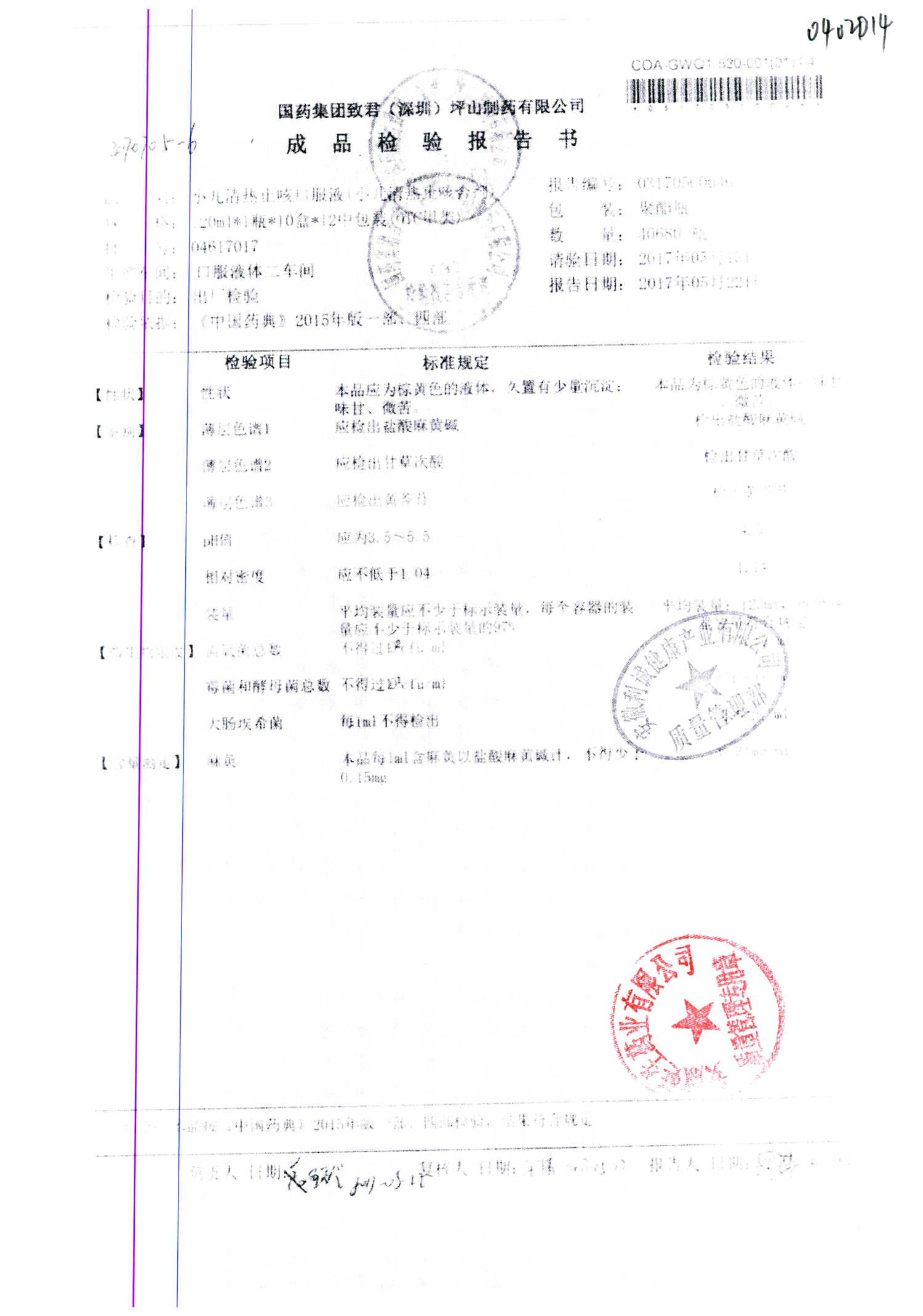 | 名稱 | 規(guī)格 | 批號 | 藥檢報告 |