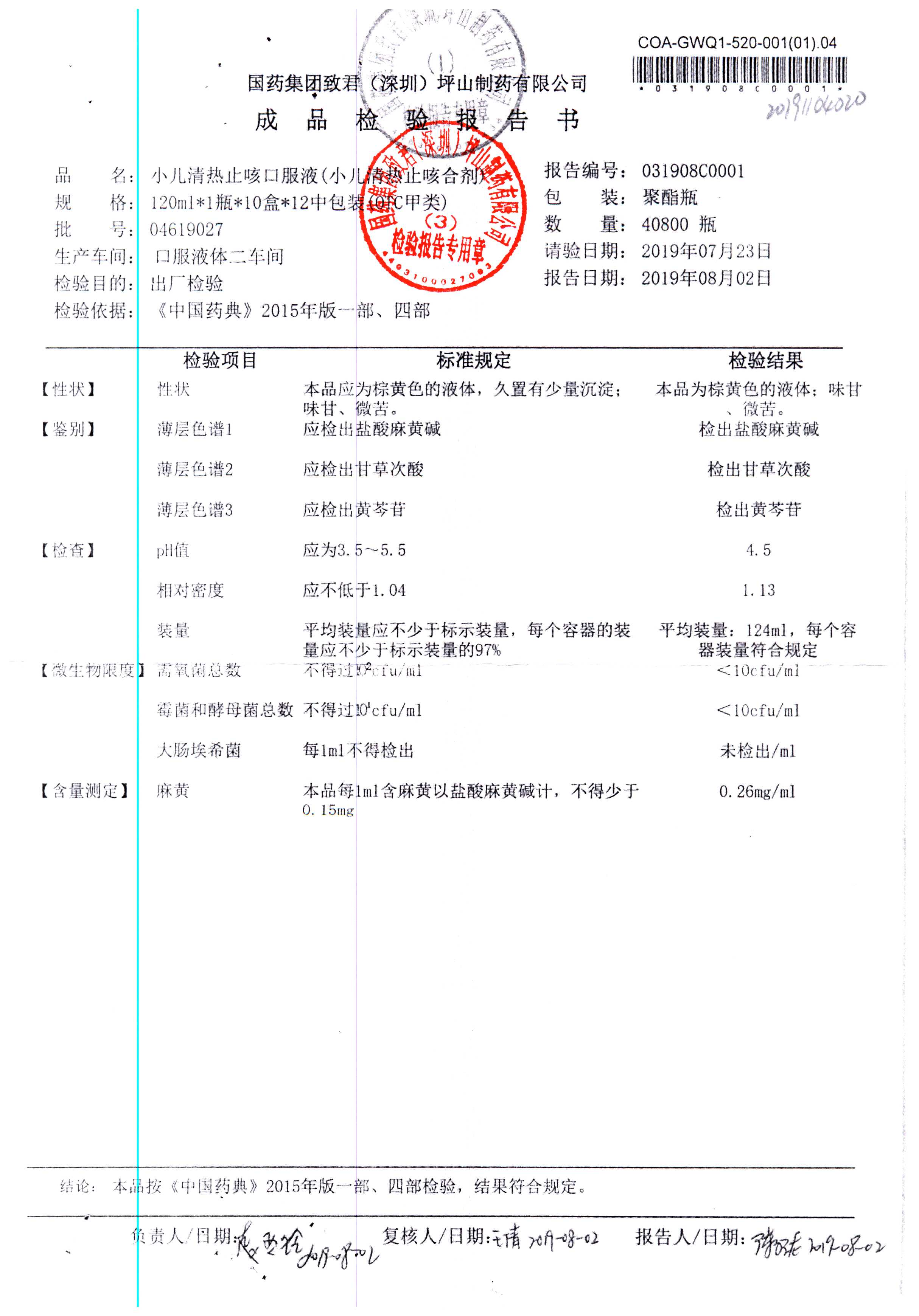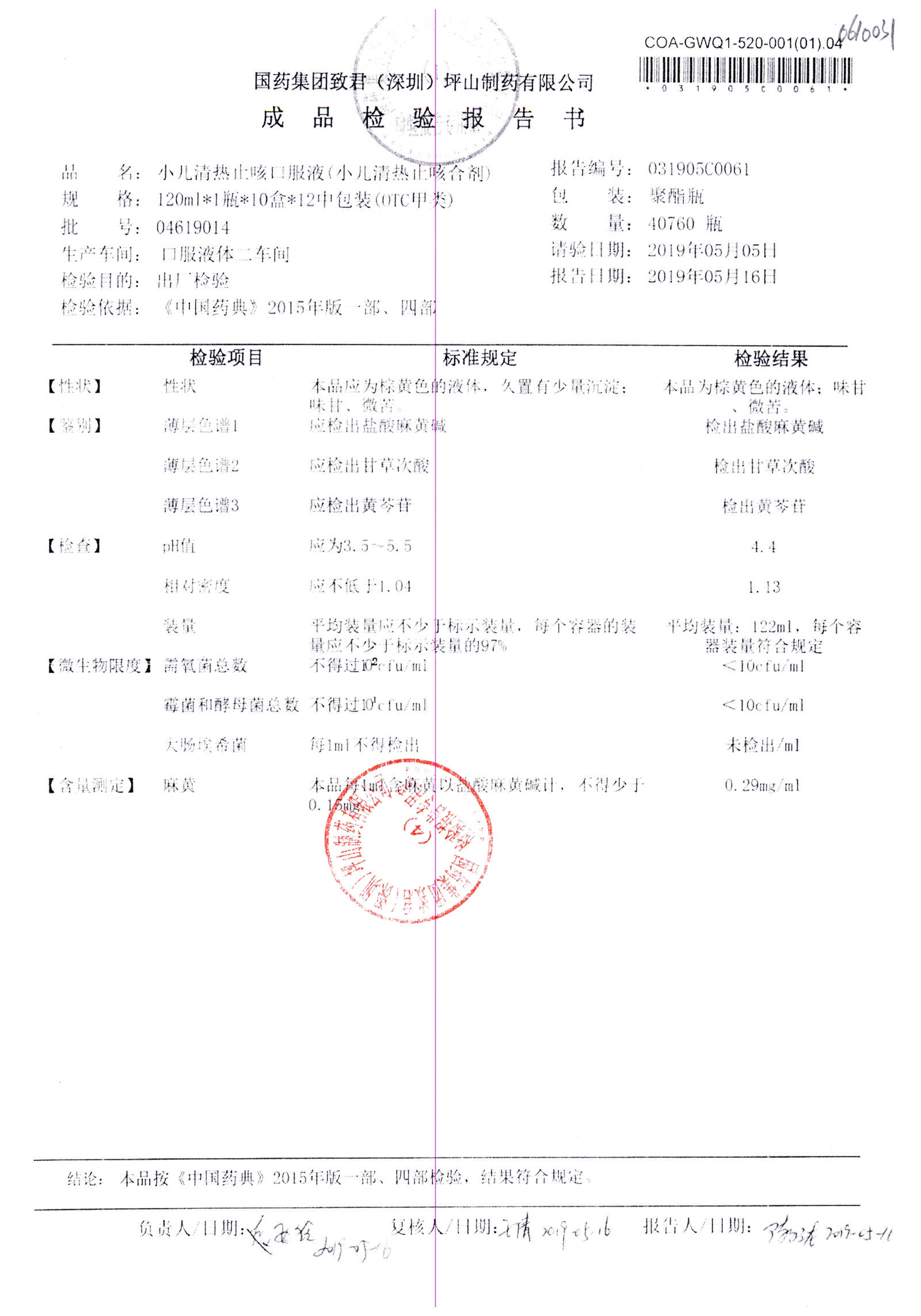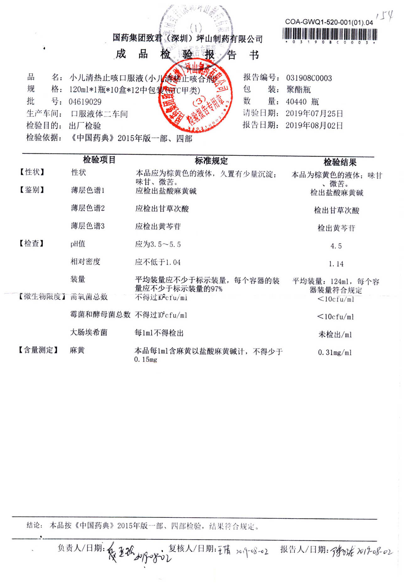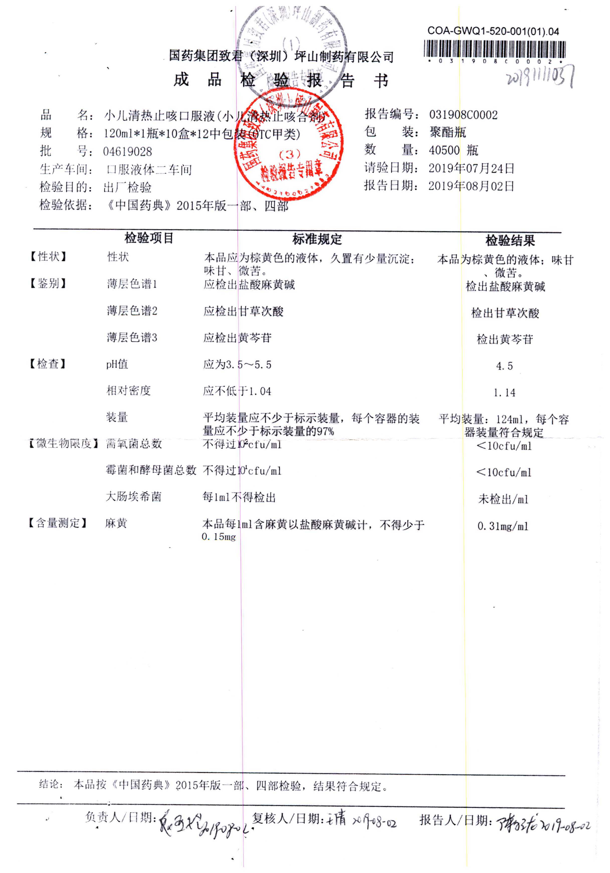 | 小兒清熱止咳口服液 | 120ml | 04619029 | 查看詳情 |